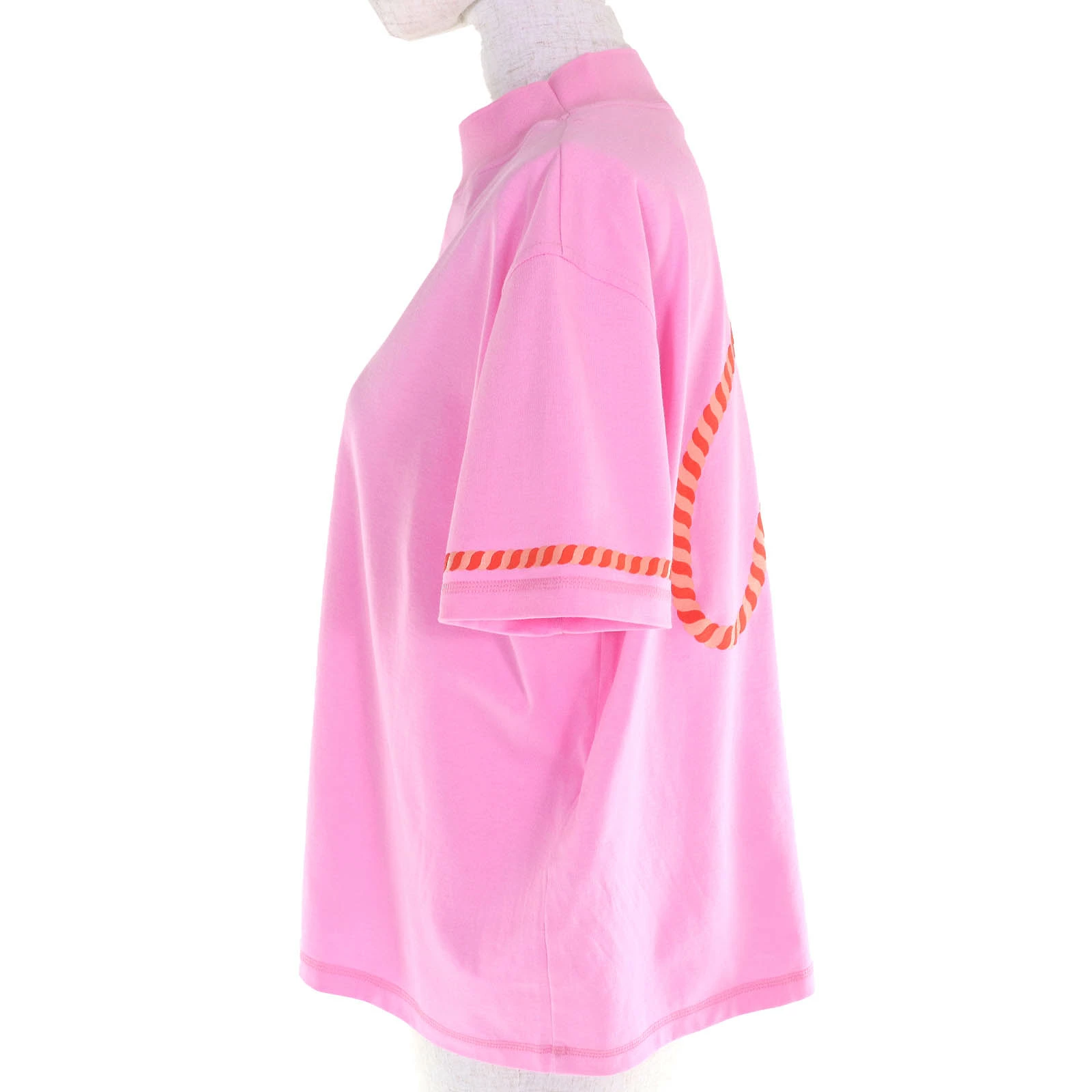 Excellent condition HERMES 23SS 3E4621DL Cartouche 100% Cotton Mock Neck Short Sleeve T-Shirt, Pink, Size 36, Made in France, Authentic, Women's [Pre-owned]