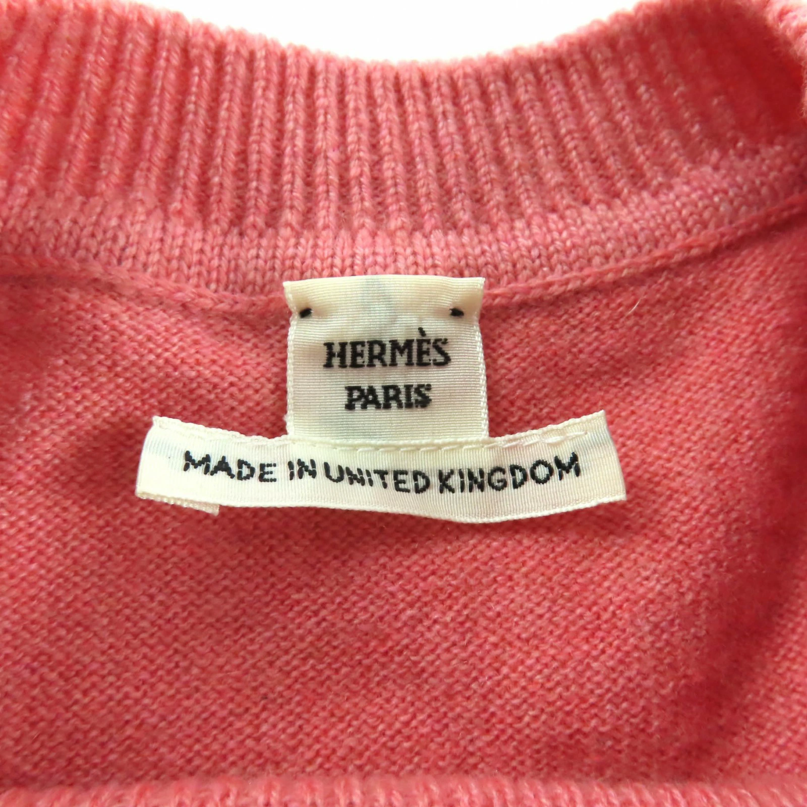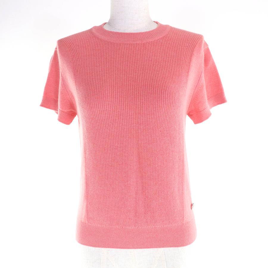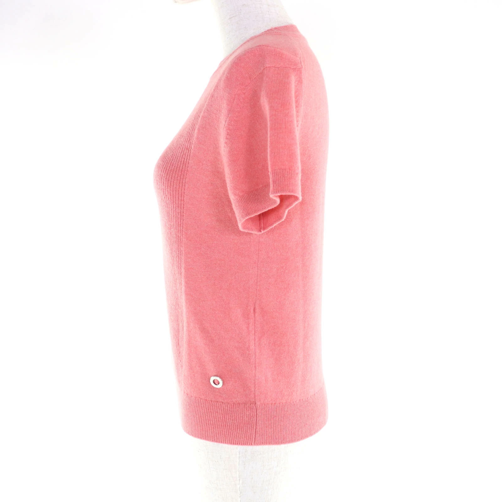 Excellent condition HERMES 24AW 4H2600D1 100% cashmere short-sleeved knit top with Serie circle detailing, pink, size 38, made in England, women's [pre-owned]