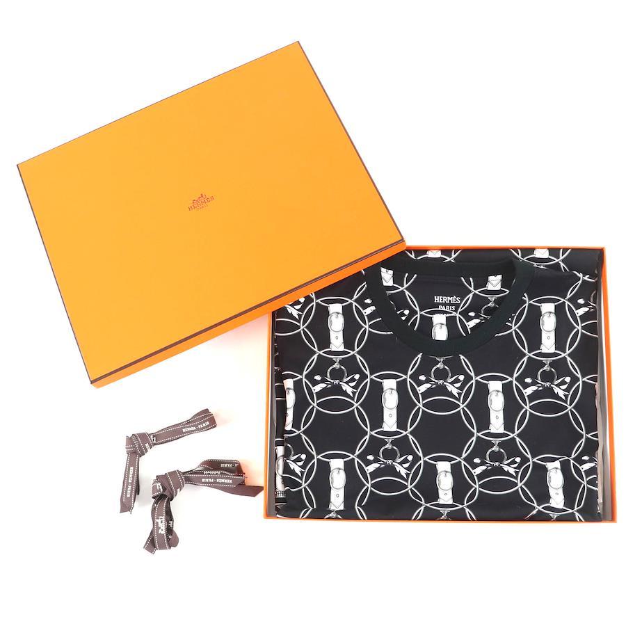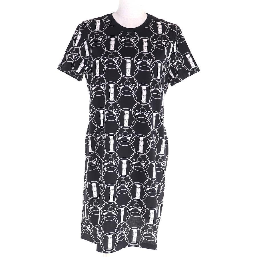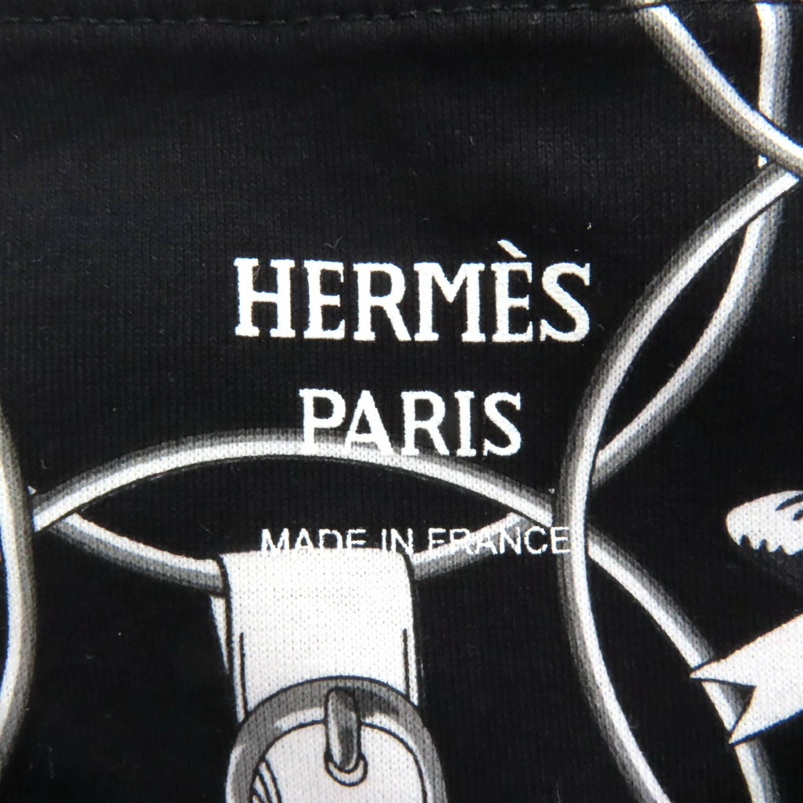 Excellent condition: HERMES 2H4508DB "La Promenade du Matin" (Morning Stroll) 100% cotton short-sleeved dress, black, size 36, with box, made in France, women's. Pre-owned.