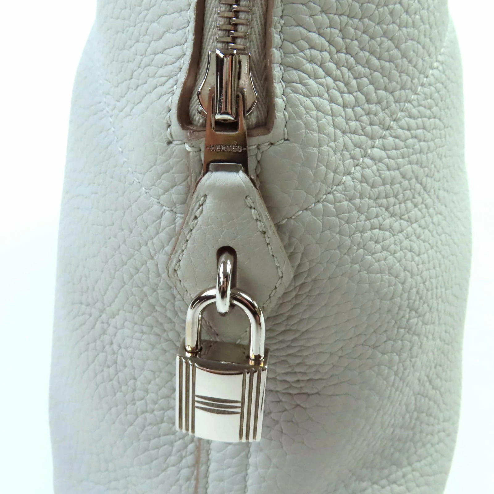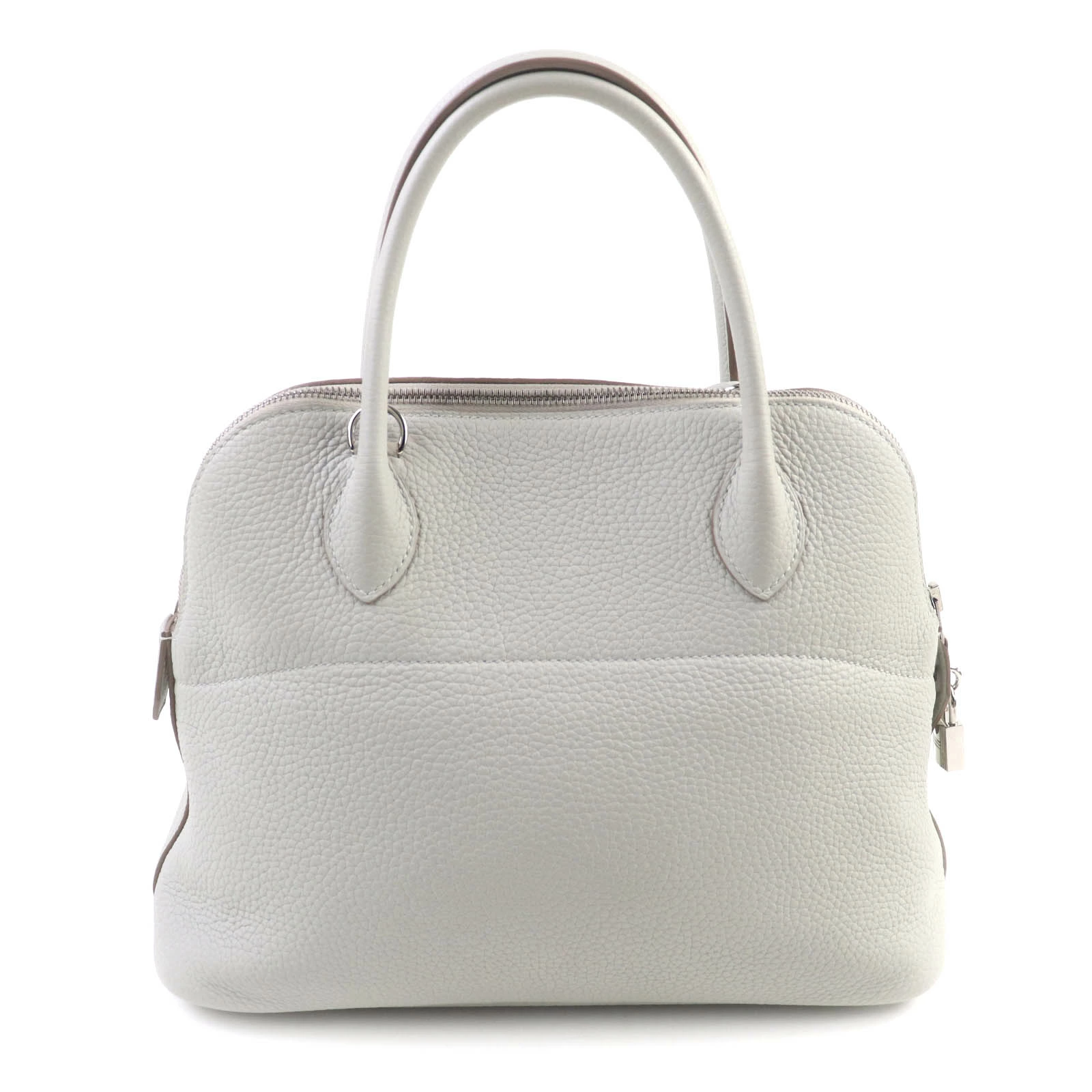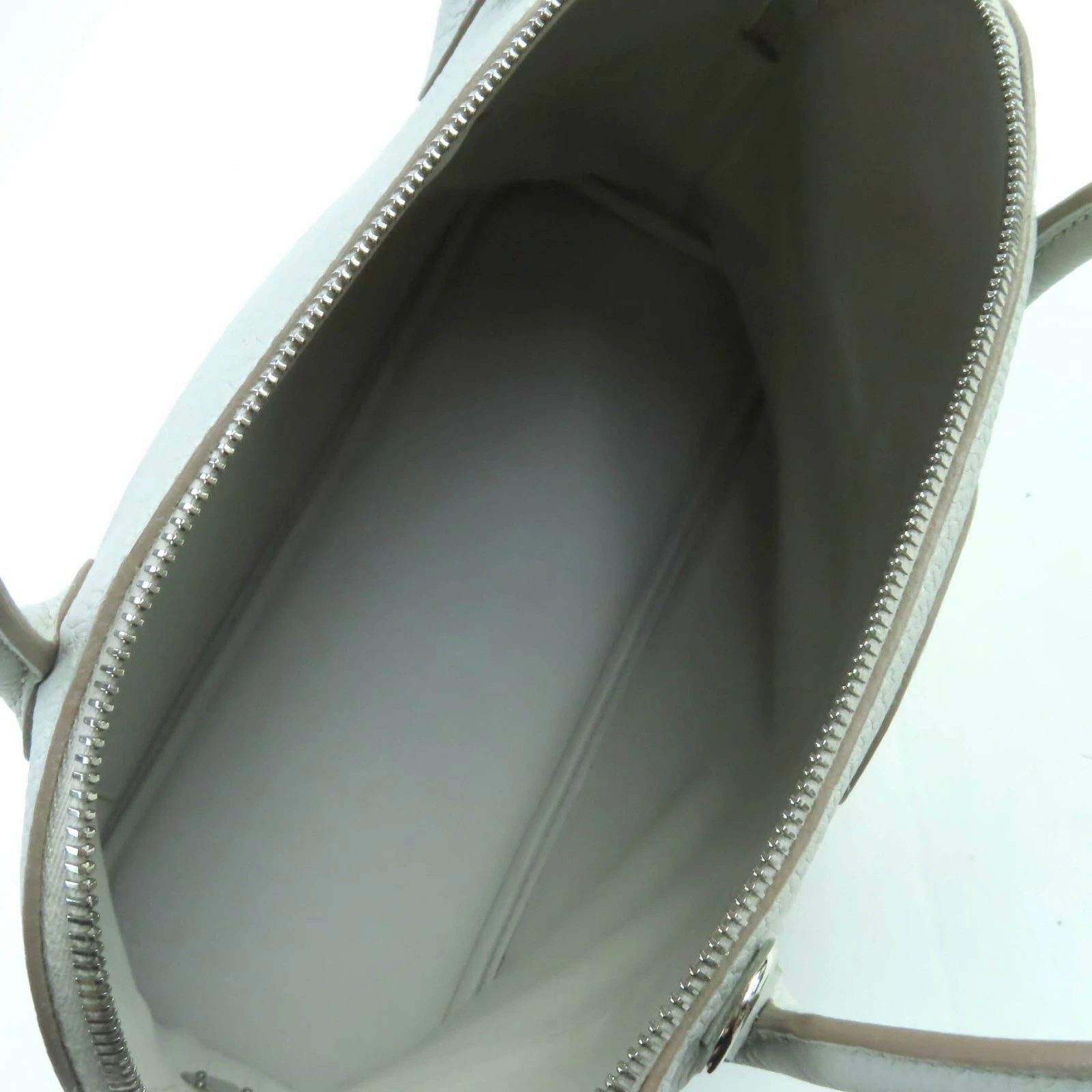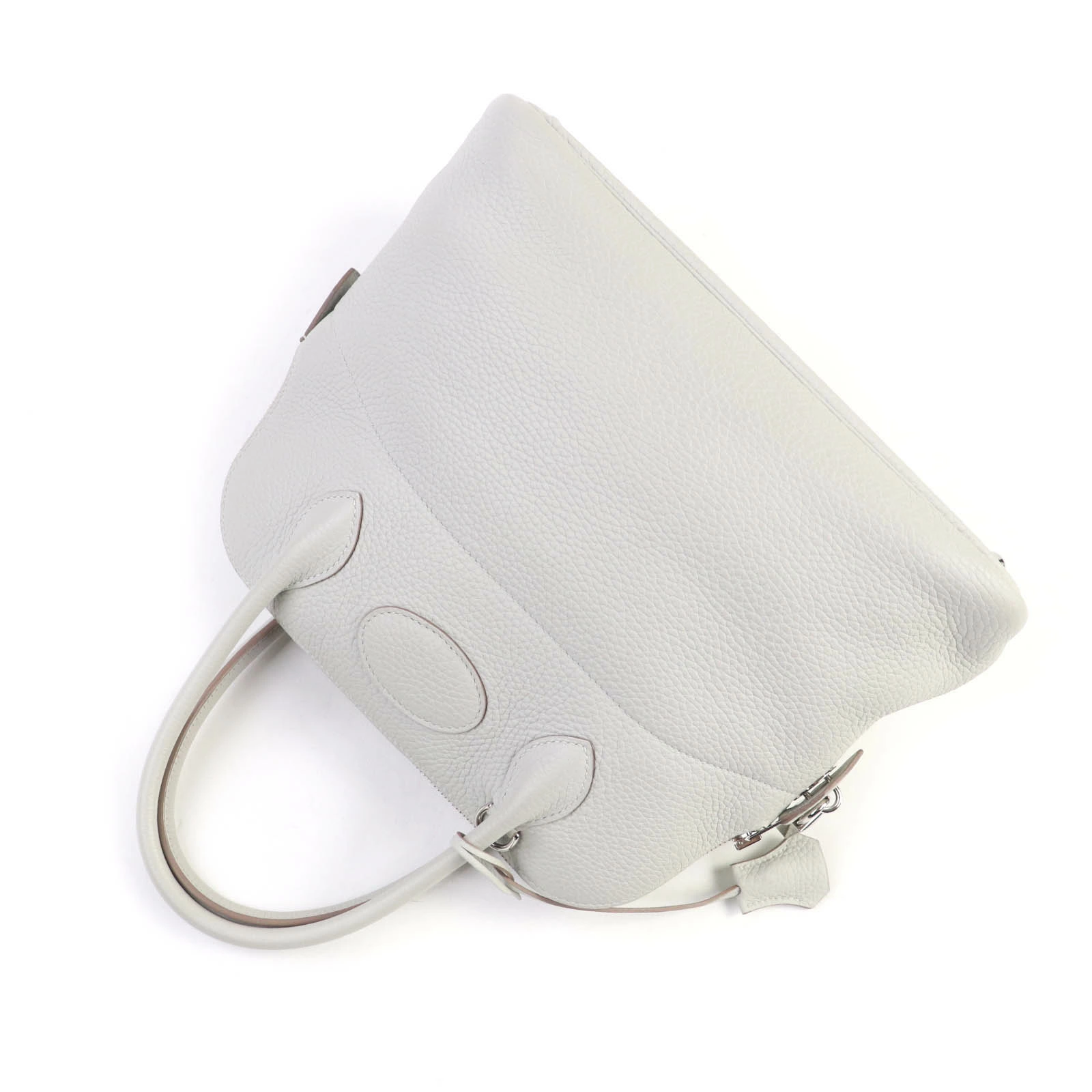 Excellent condition HERMES Bolide 31 handbag in pearl gray, Taurillon Clemence leather, silver hardware, shoulder strap, D stamp, made in France, women's [pre-owned]