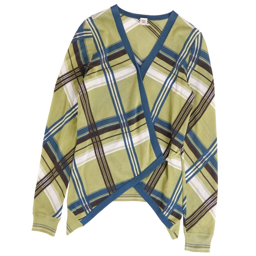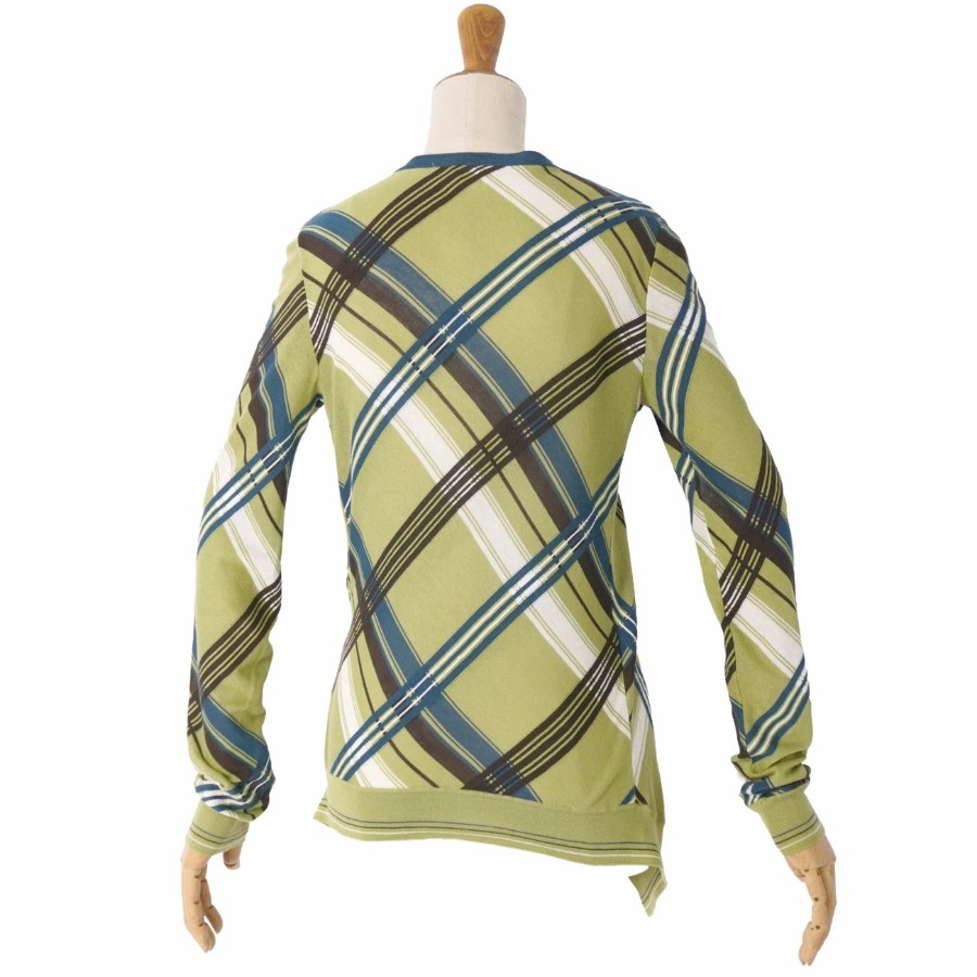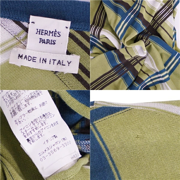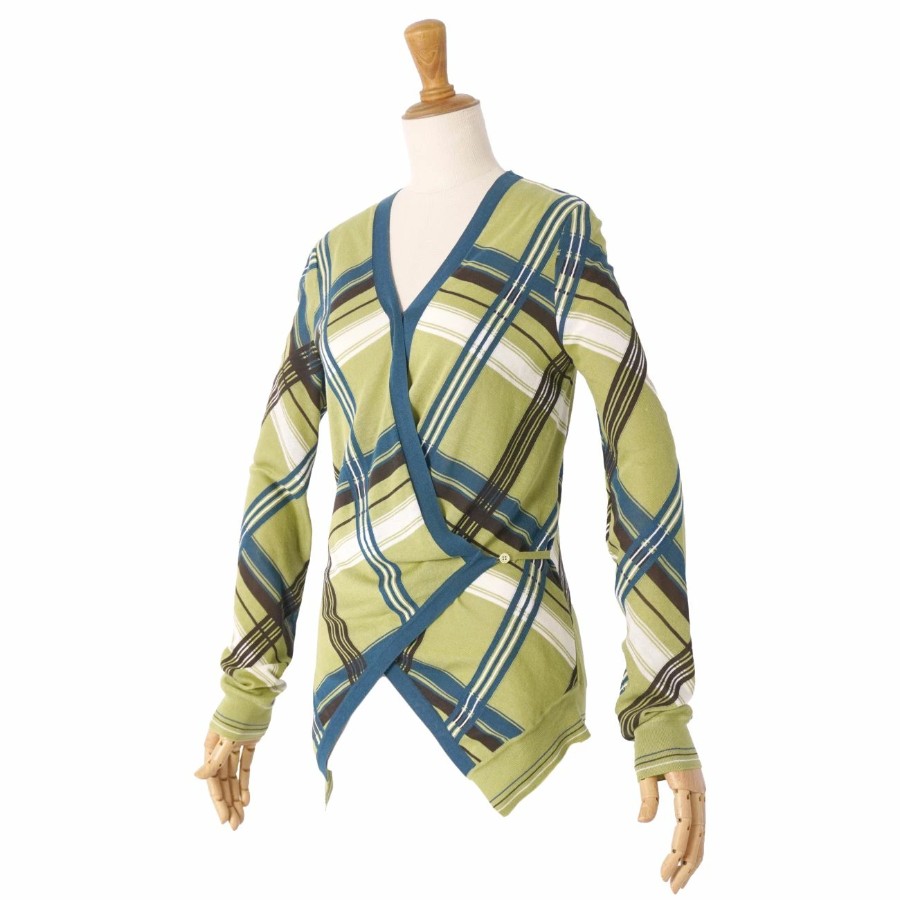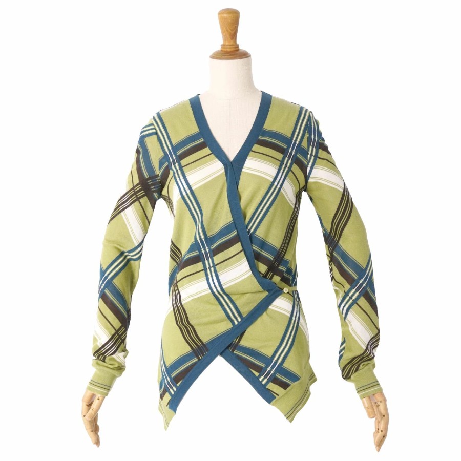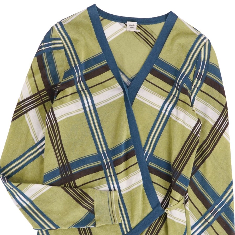 エルメス HERMES カーディガン ゴルチエ期 ニット チェック コットン トップス レディース イタリア製 グリーン サイズ34(XS相当)