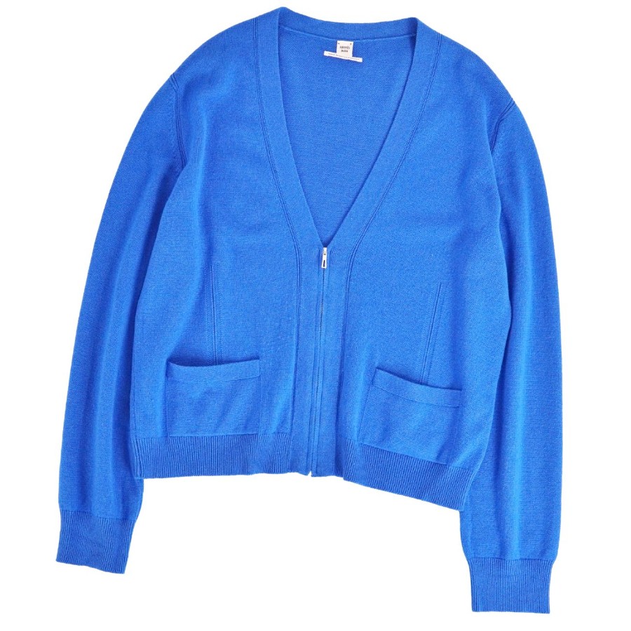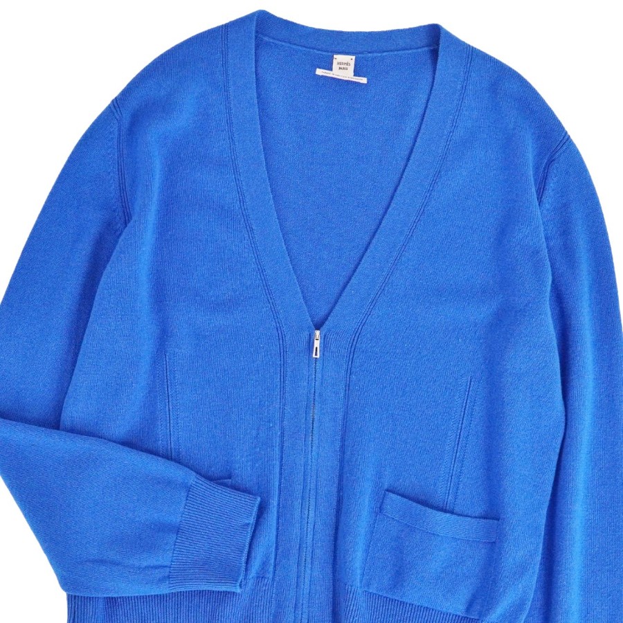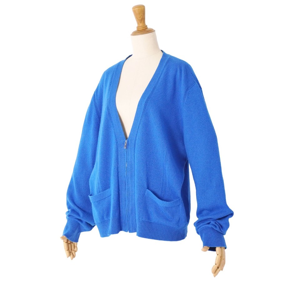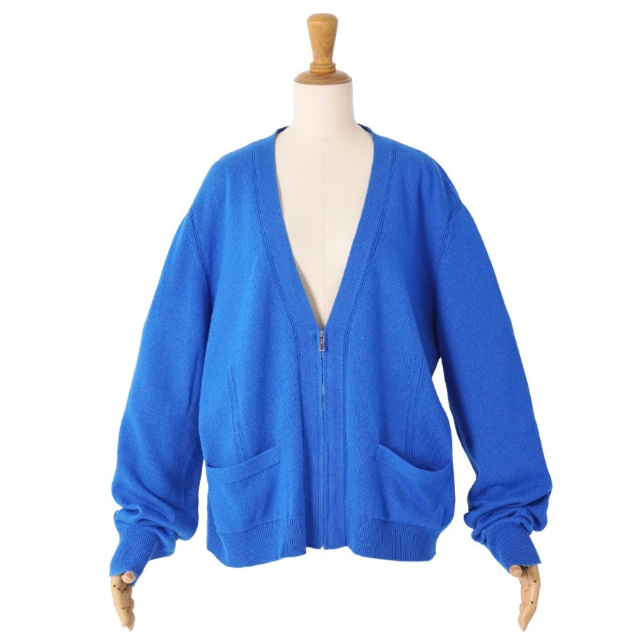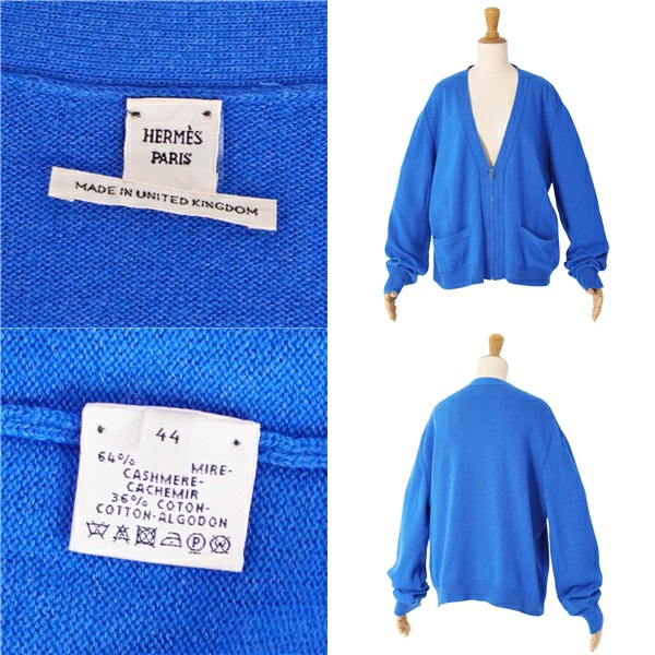 エルメス HERMES カーディガン ニット カシミヤ コットン トップス レディース イギリス製 ブルー サイズ44(XXL相当)