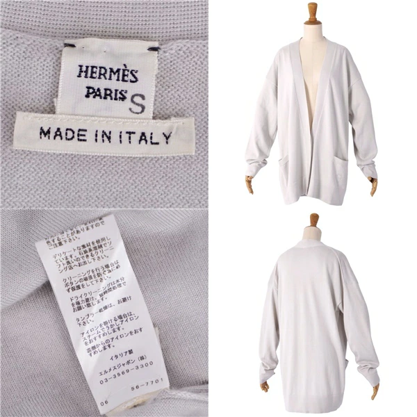 エルメス HERMES カーディガン ニット カシミヤ トップス レディース イタリア製 グレー サイズ40(L相当)