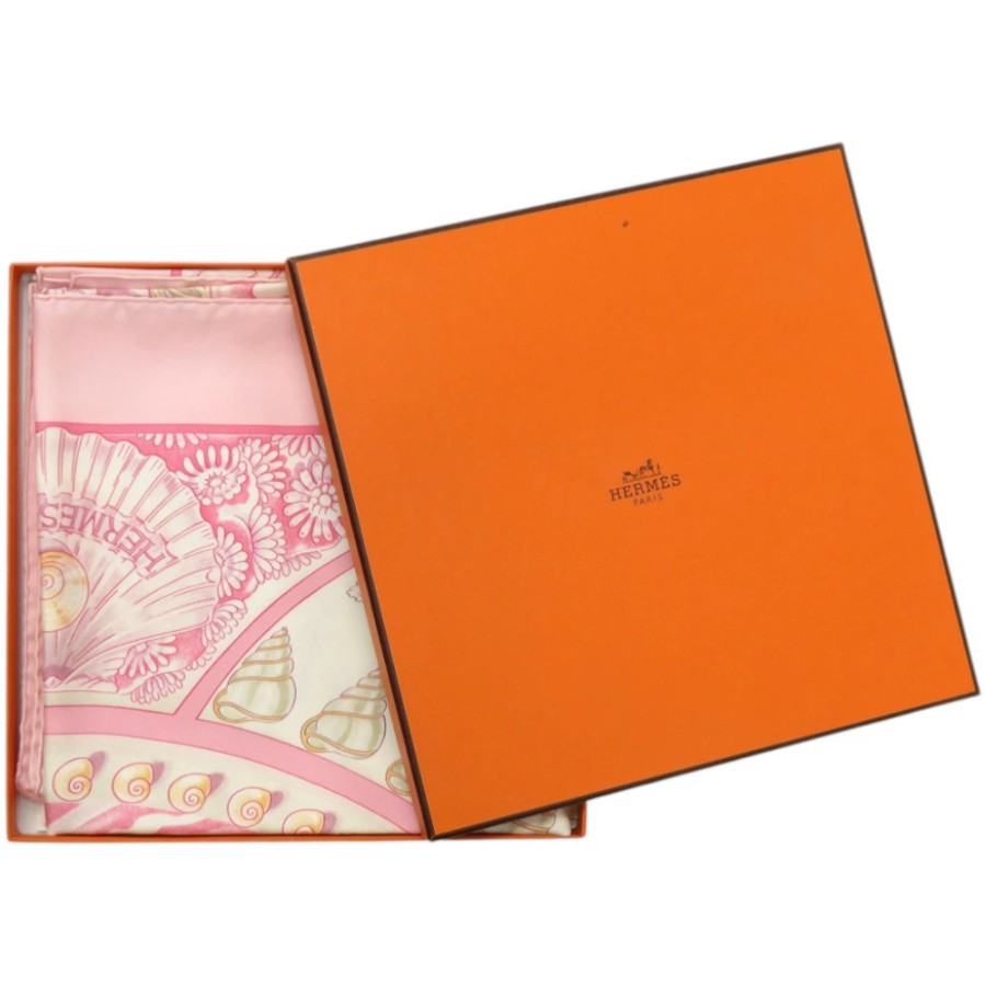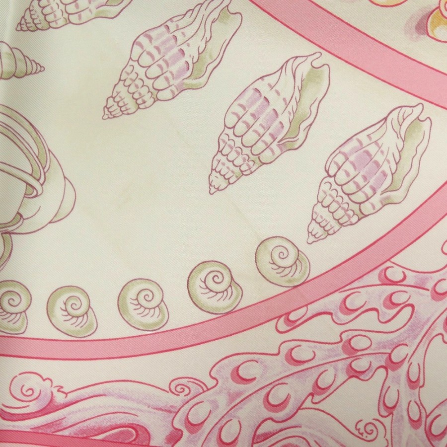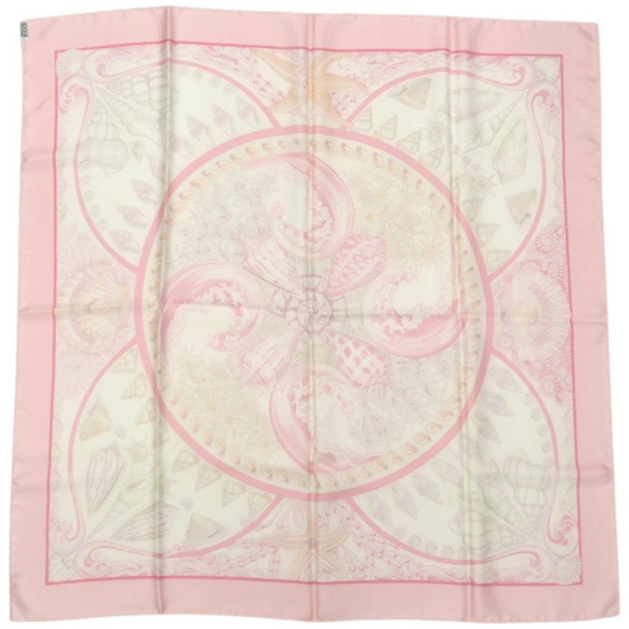 Excellent condition Hermes Carre 90 Parures Oceanes Ocean-themed silk pink scarf 0476 [Pre-owned] HERMES