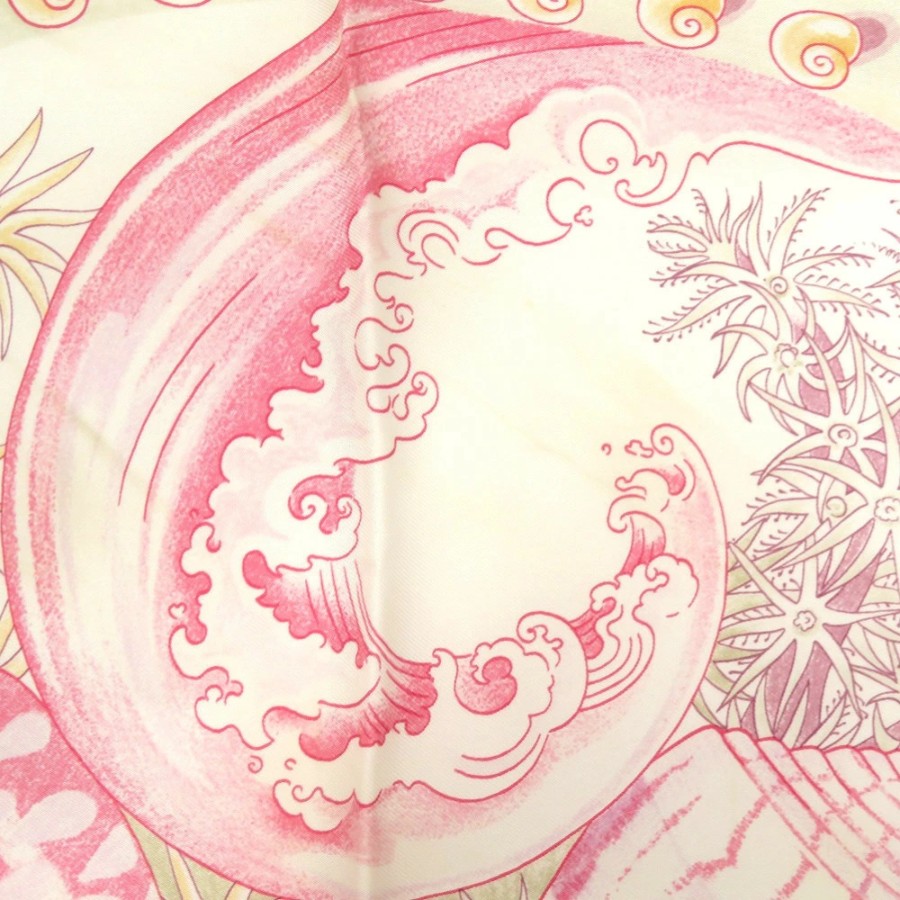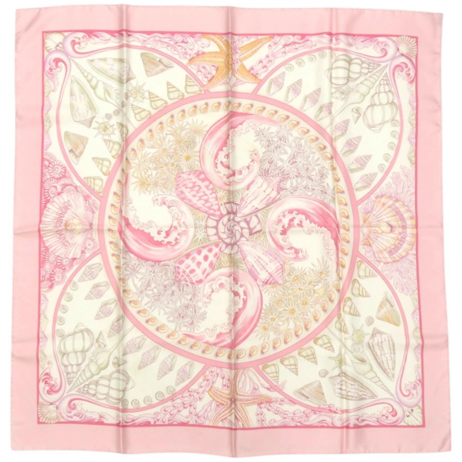 美品 エルメス カレ90 Parures Oceanes 海のアクセサリー シルク ピンク スカーフ 0476【中古】HERMES