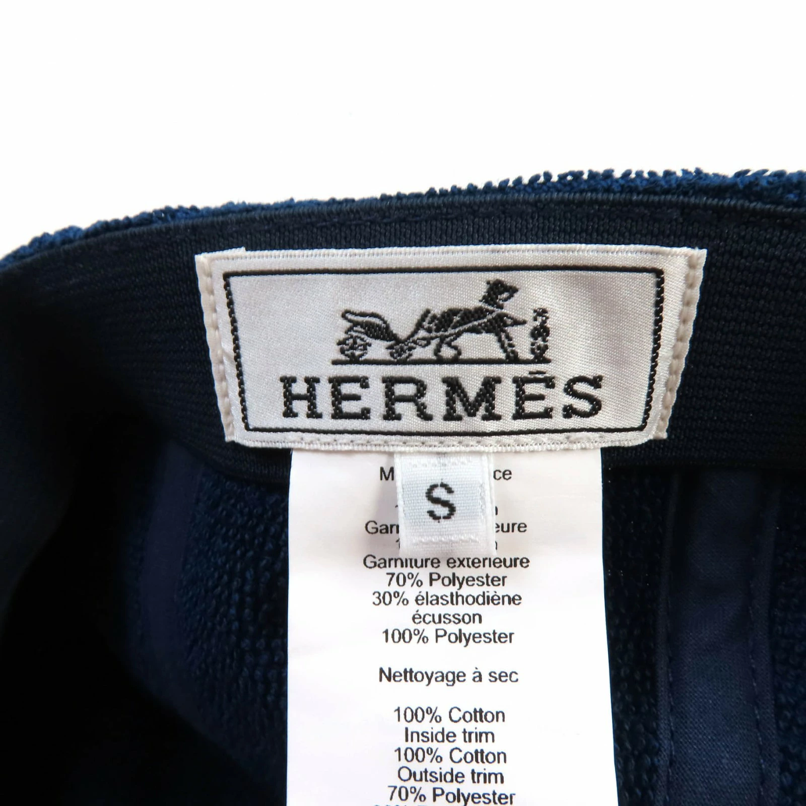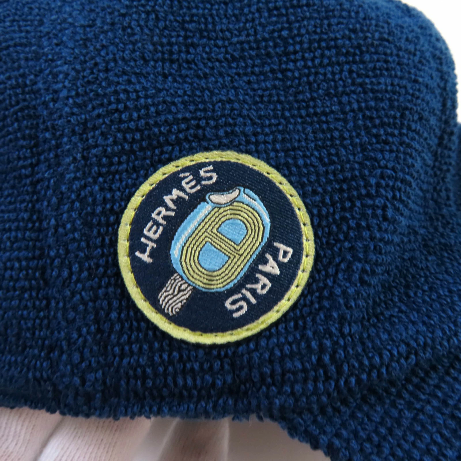 Excellent condition HERMES Davis 100% cotton terry cap with Funny Ice Cream logo patch, navy, size S, made in France, authentic, women's [pre-owned]