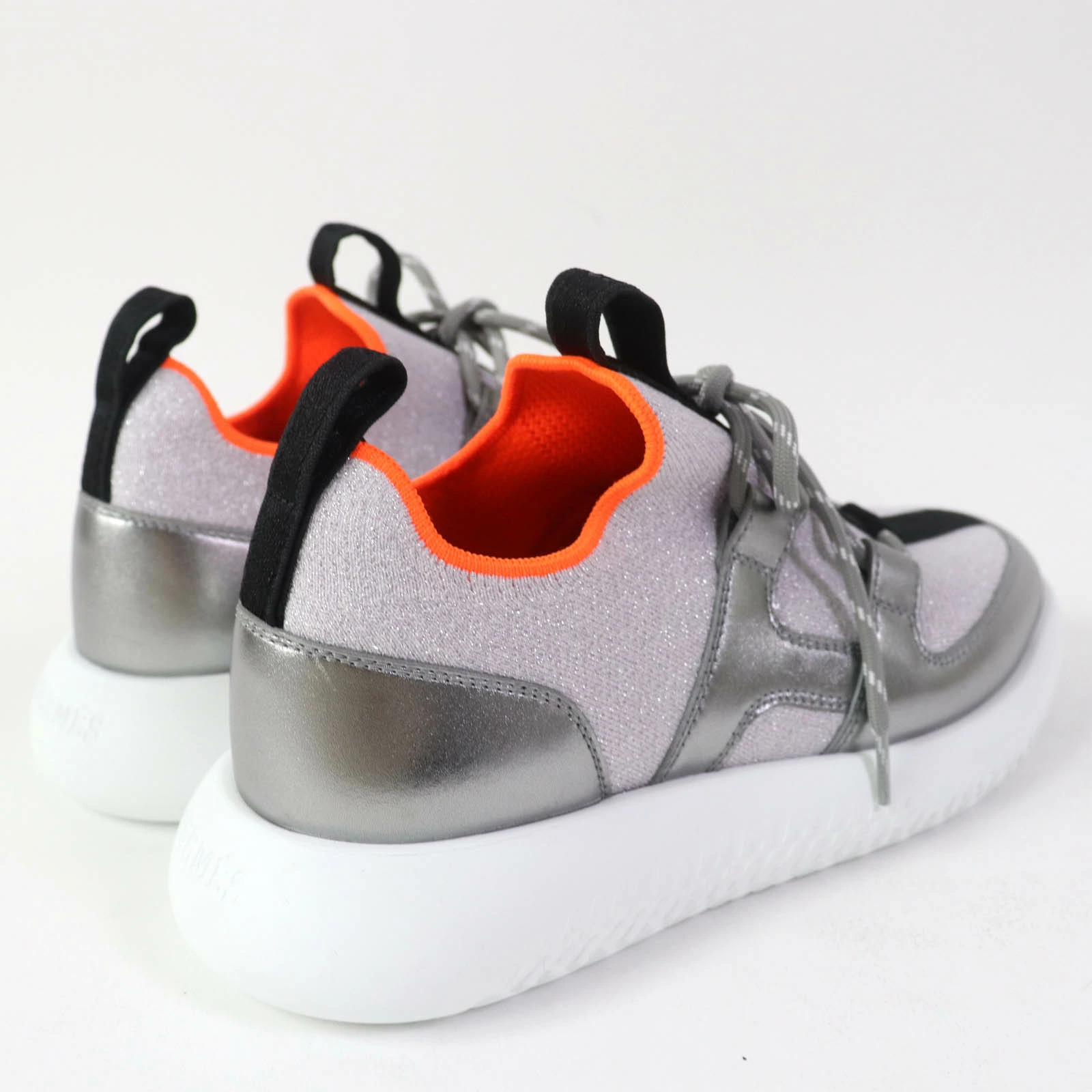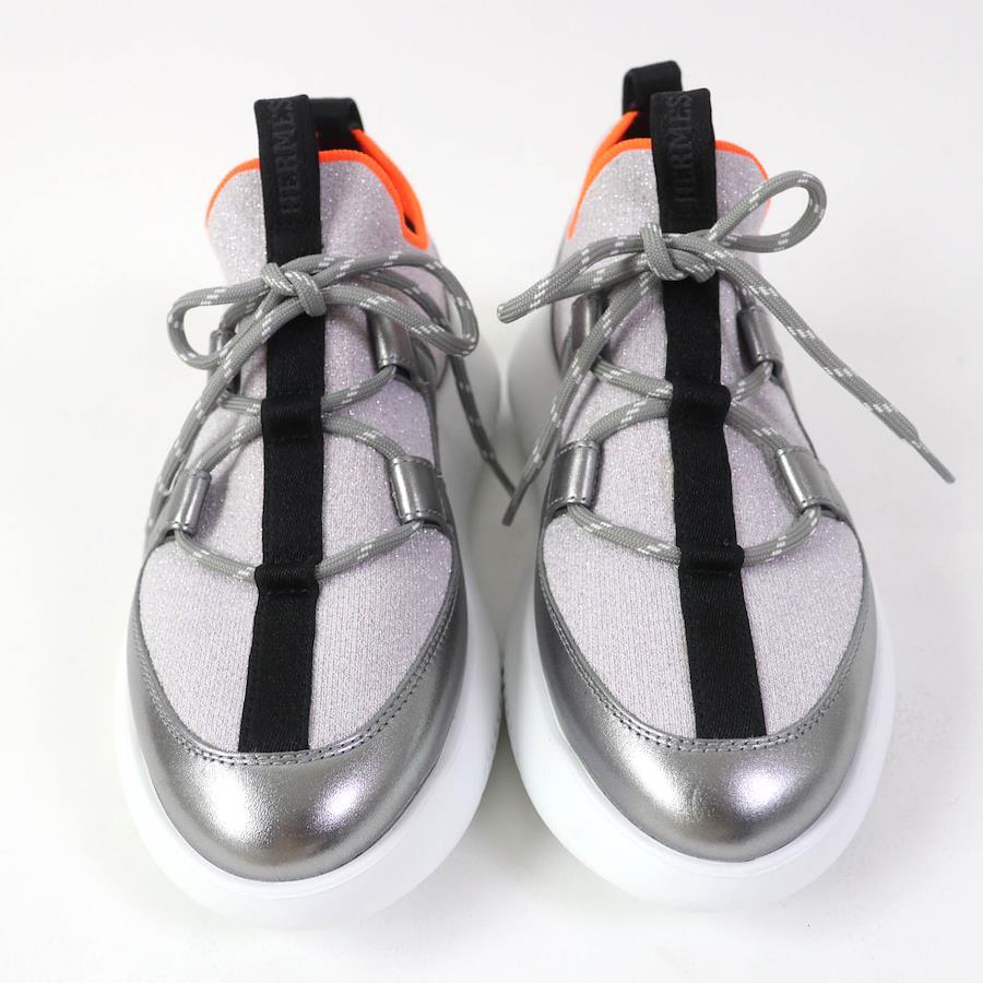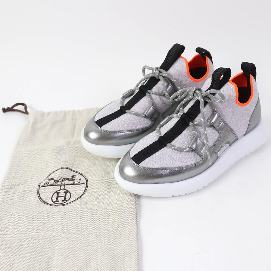 Excellent condition HERMES DUEL logo low-top sneakers, silver, size 35.5, with dust bag, made in Italy, women's [pre-owned]