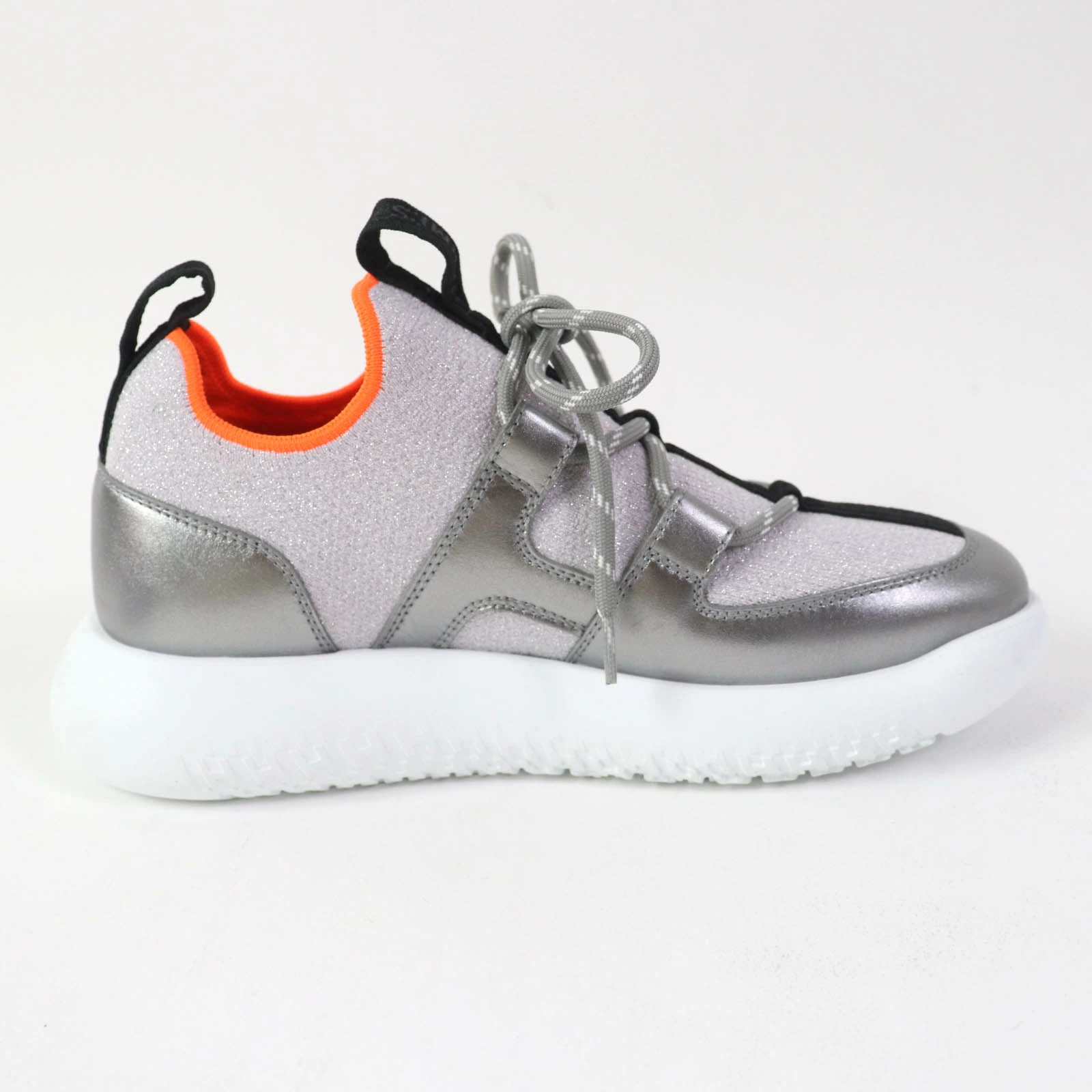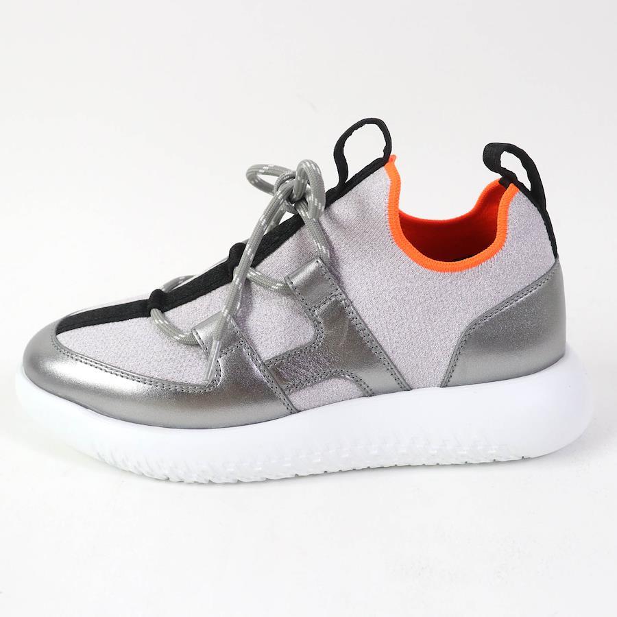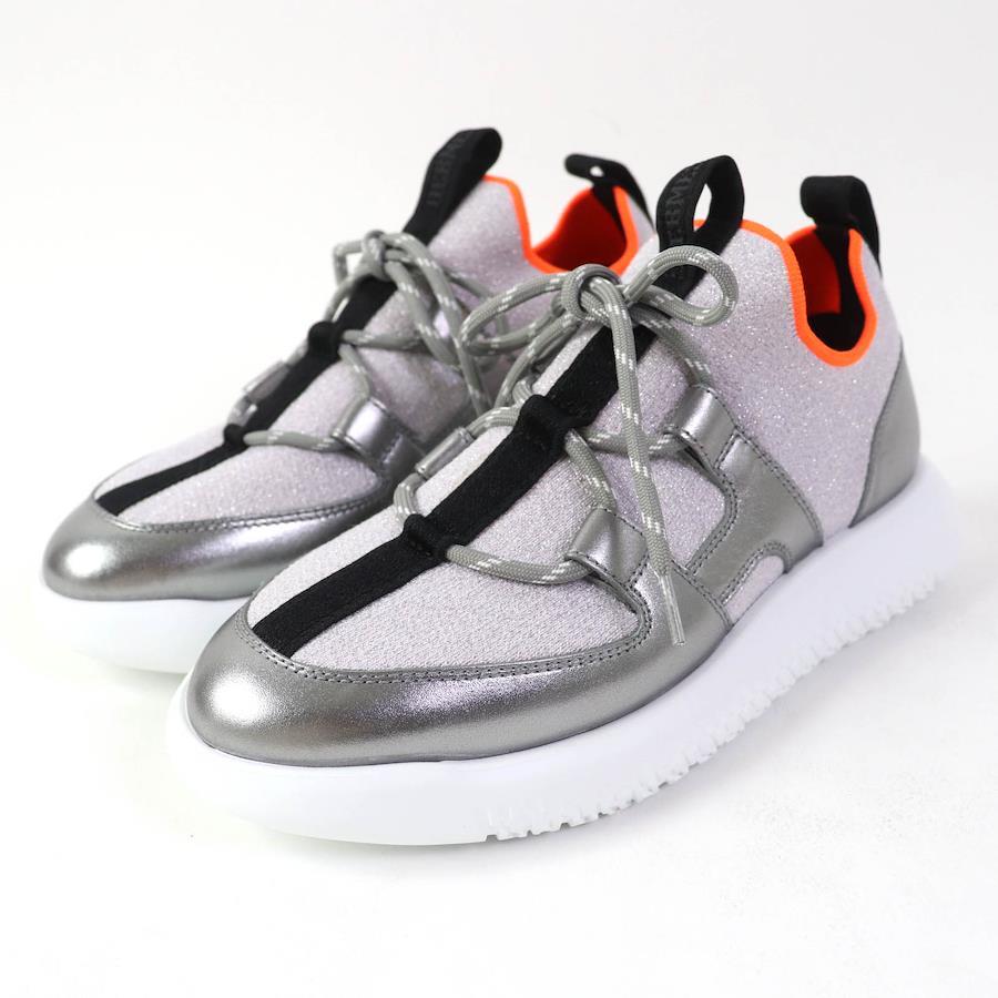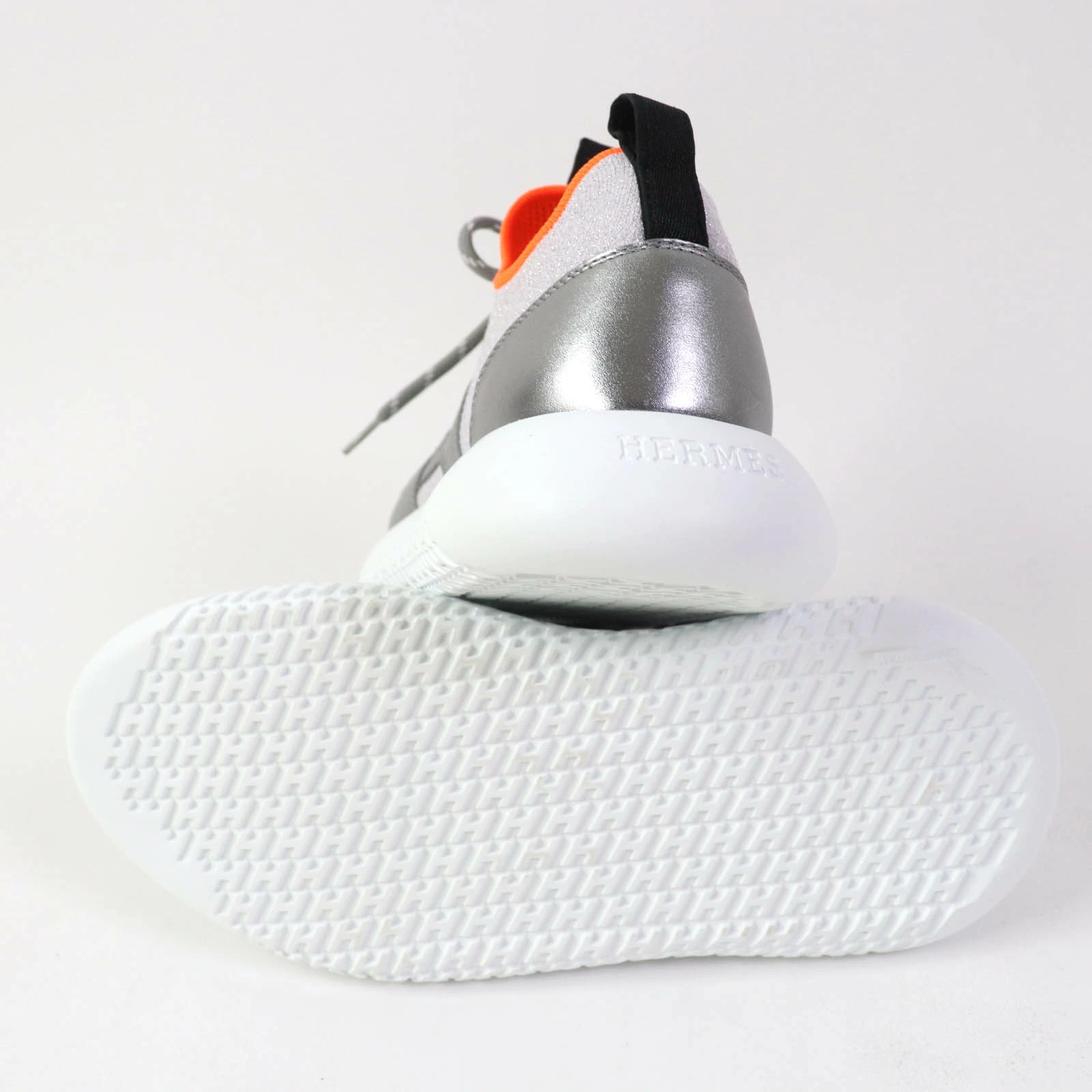 Excellent condition HERMES DUEL logo low-top sneakers, silver, size 35.5, with dust bag, made in Italy, women's [pre-owned]