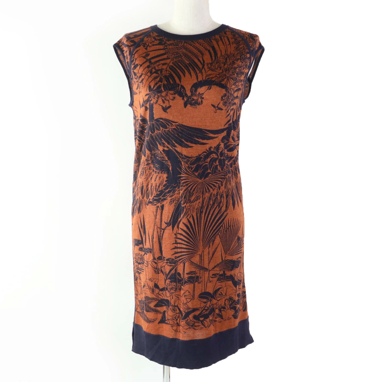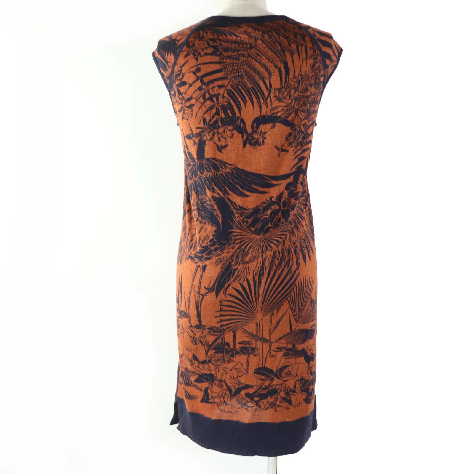 Excellent condition HERMES FLAMINGO PARTY cashmere and silk sleeveless dress in brown and navy, size 34, made in Italy, authentic, women's [pre-owned]