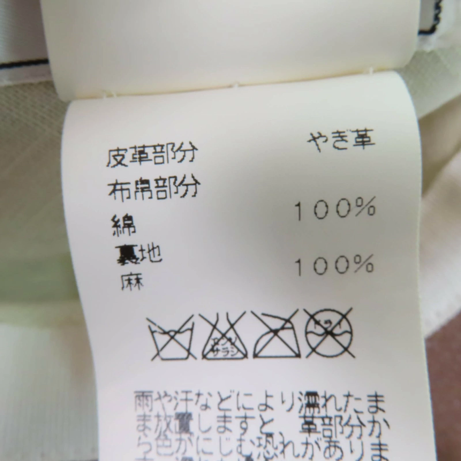 | 素材 (material) | 本体:ヤギ革 一部:コットン100% 裏地:リネン100% | ||||||||||||||||