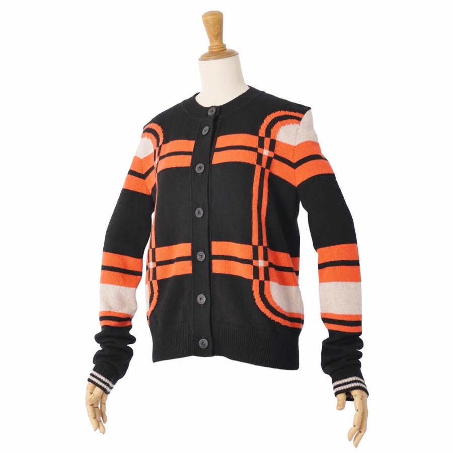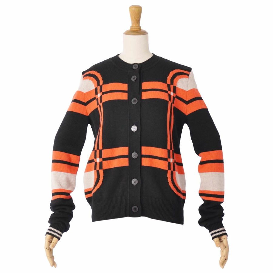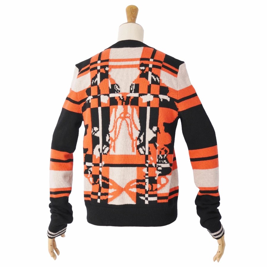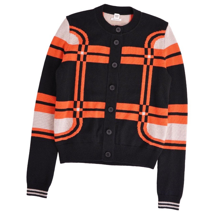 エルメス HERMES 23AW ニット カーディガン ロングスリーブ 長袖 BRIDES de GALA Tartan 総柄 カシミヤ100% トップス レディース マルチカラー サイズ36(S相当)