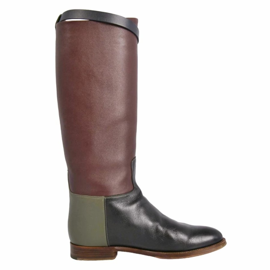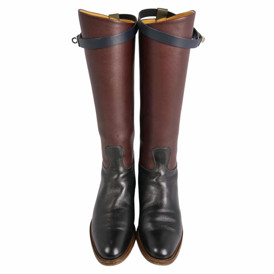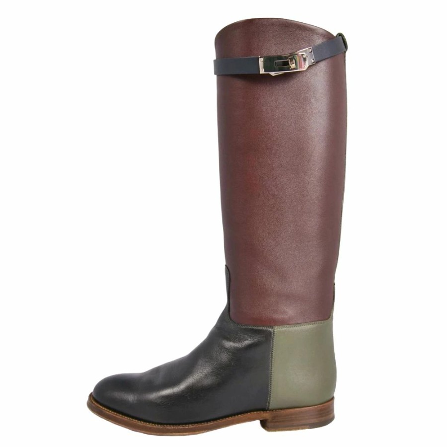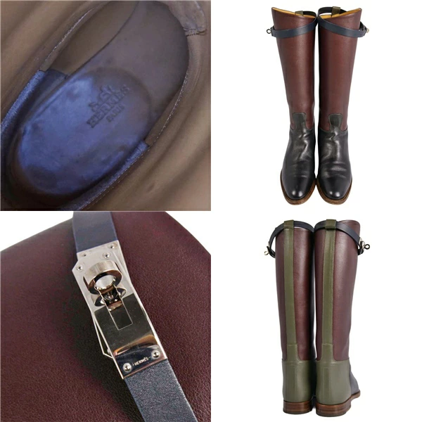 エルメス HERMES ブーツ ロングブーツ ジャンピング ショート ケリー金具 レザー シューズ レディース イタリア製 ボルドー/カーキ/ブラック サイズ37(24cm相当)