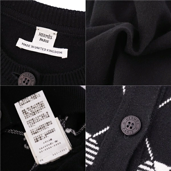 エルメス HERMES カーディガン 20AW ニット 総柄 カシミヤ トップス レディース イギリス製 ブラック サイズ36(S相当)