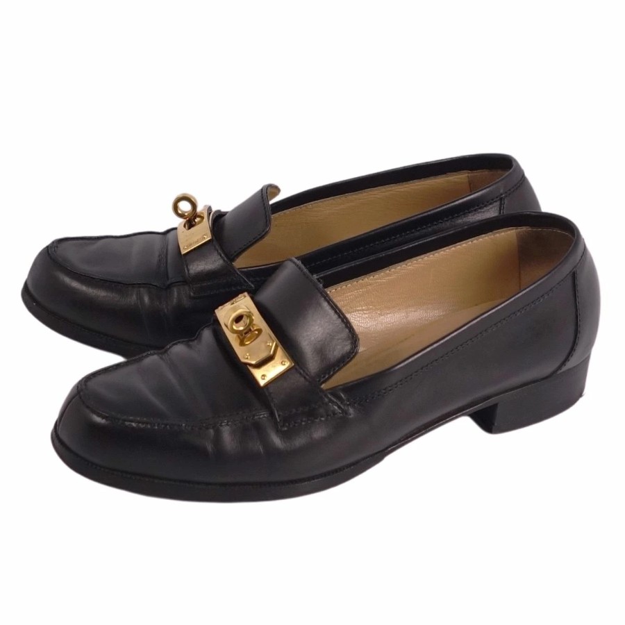 エルメス HERMES ローファー デスタン モカシン ケリー金具 パンプス レザー シューズ 靴 レディース イタリア製 ブラック サイズ36.5(23.5cm相当)