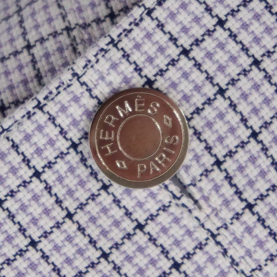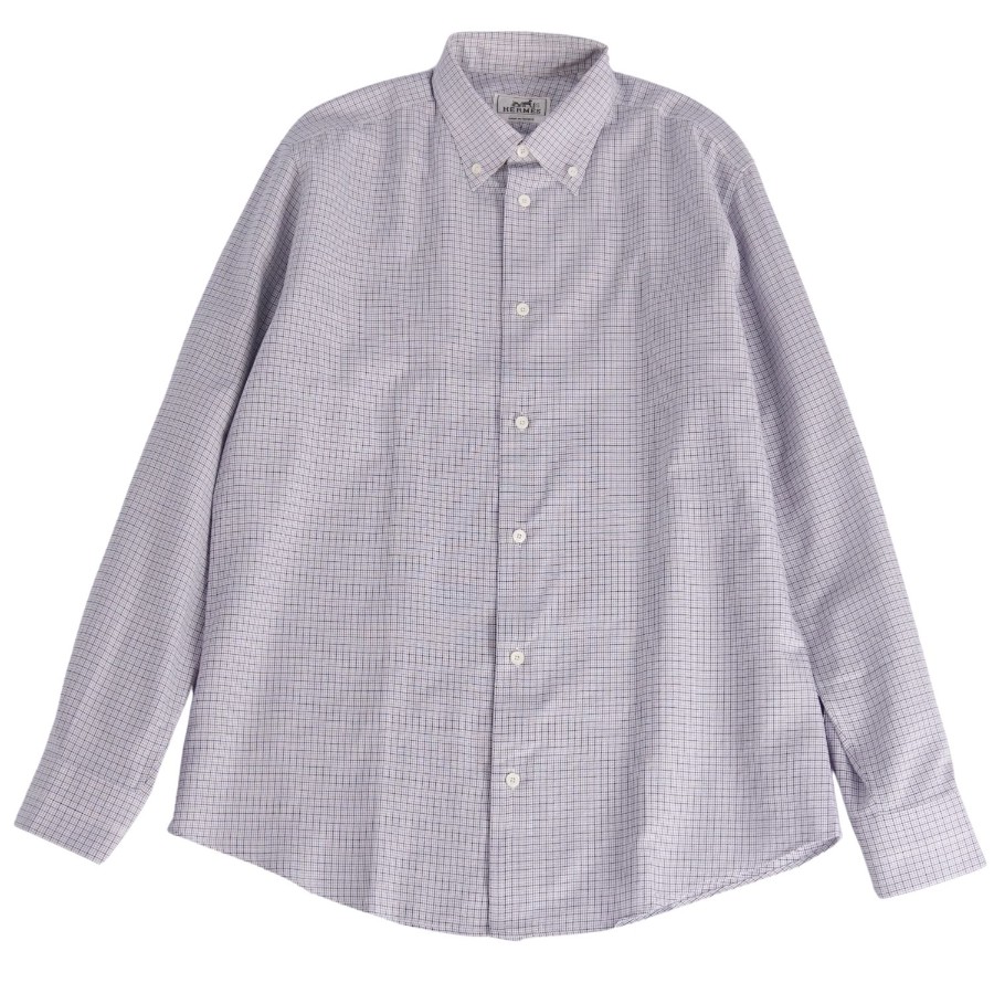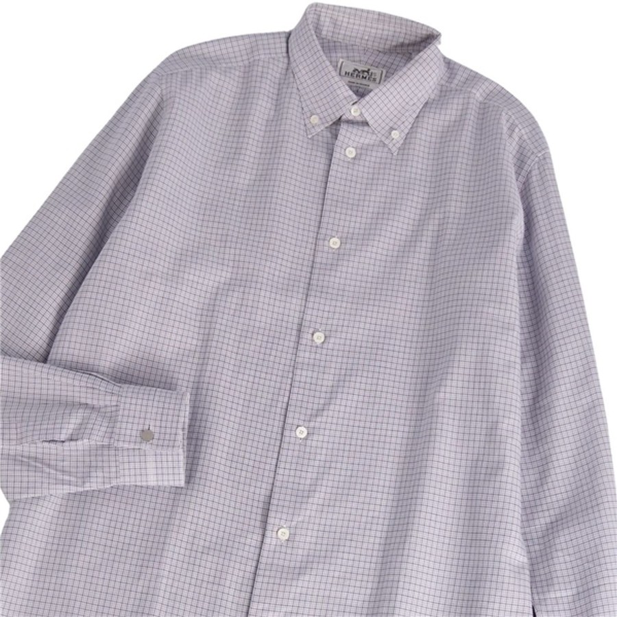 [Excellent Condition] Hermes HERMES Long-Sleeve Button-Down Check Cotton Shirt for Men, Made in France, Size 41/16, Gray [Pre-owned]
