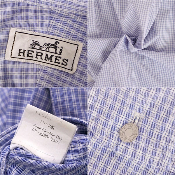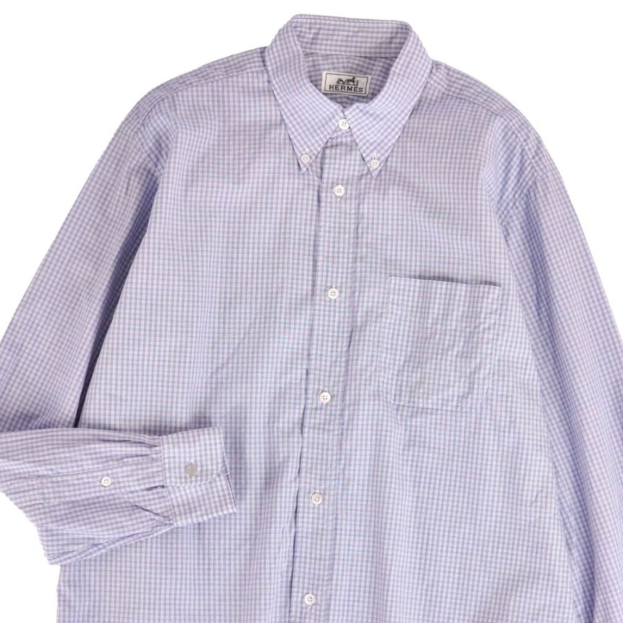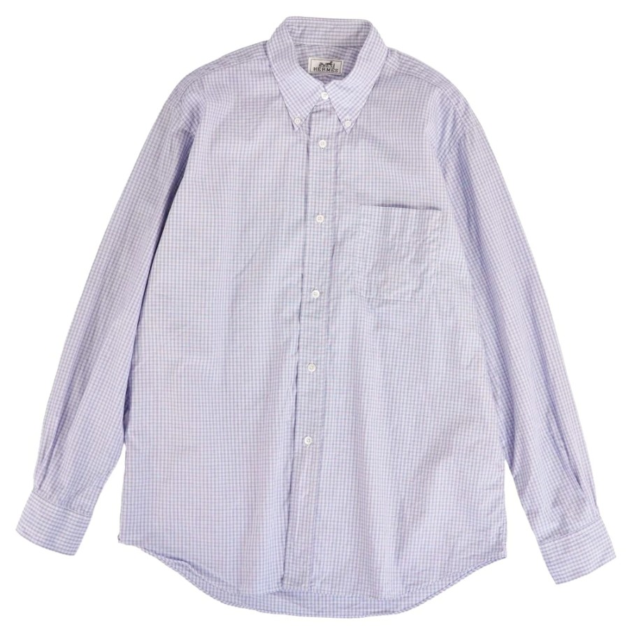 エルメス HERMES シャツ ロングスリーブ 長袖 チェック コットン トップス メンズ フランス製 ブルー サイズ41(16) (L相当)