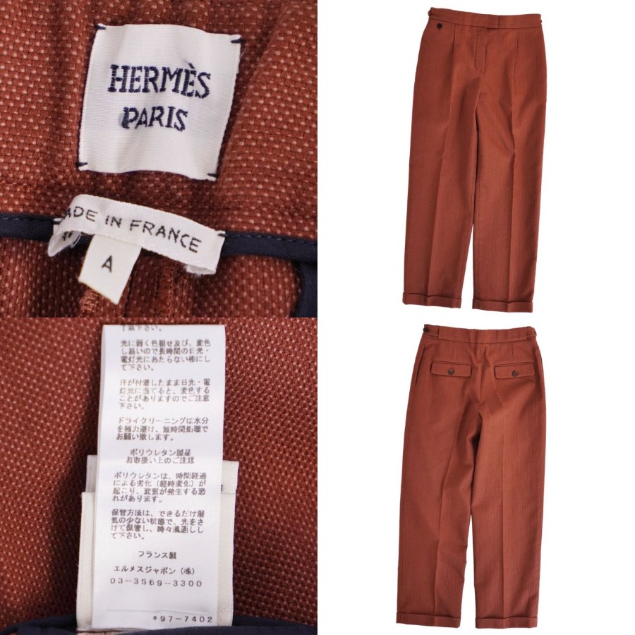 エルメス HERMES パンツ 19AW ロングパンツ ワイドパンツ コットン ボトムス レディース フランス製 ブラウン サイズ34(XS相当)