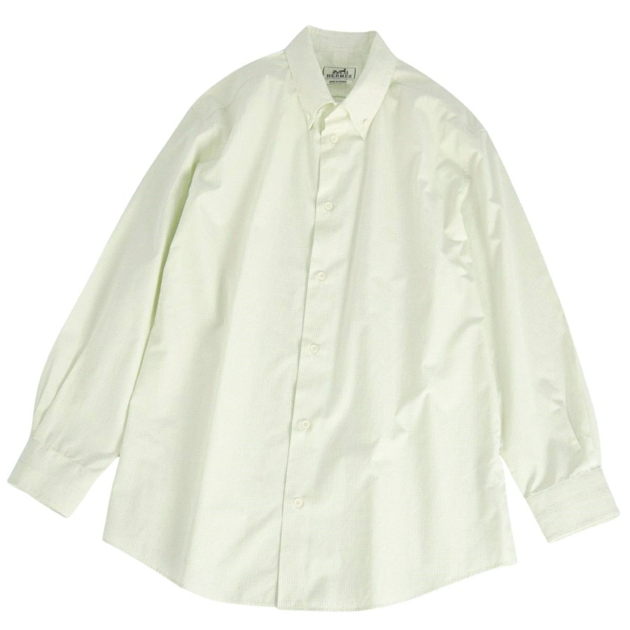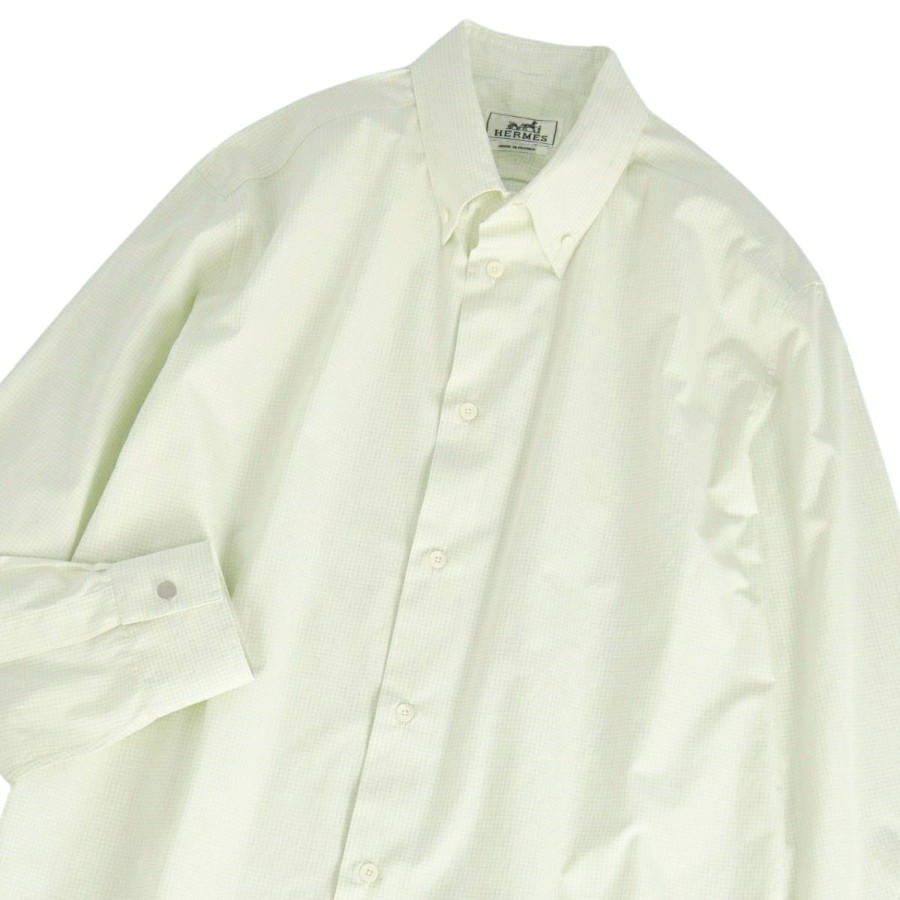 エルメス HERMES シャツ ロングスリーブ 長袖 チェック セリエボタン コットン トップス メンズ フランス製 ライトグリーン サイズ42(16.5)