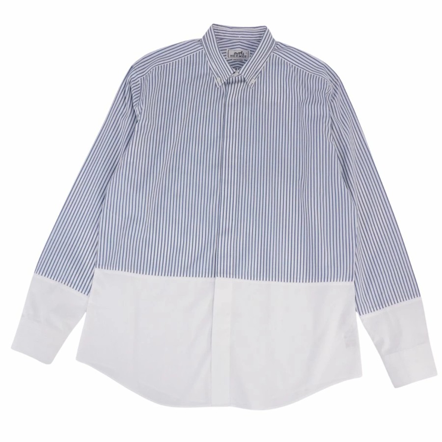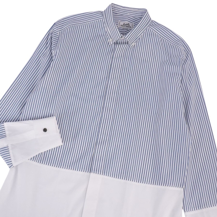 エルメス HERMES シャツ ロングスリーブ 長袖 ストライプ セリエボタン コットン トップス メンズ フランス製 ブルー/ホワイト サイズ42(16.5)