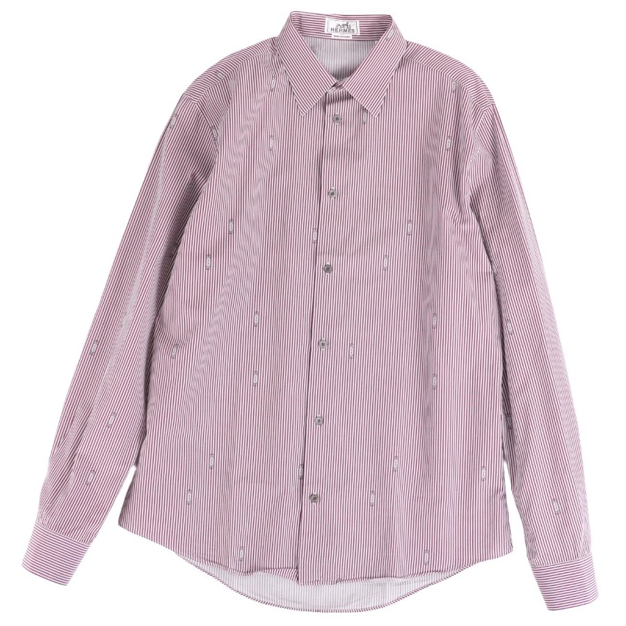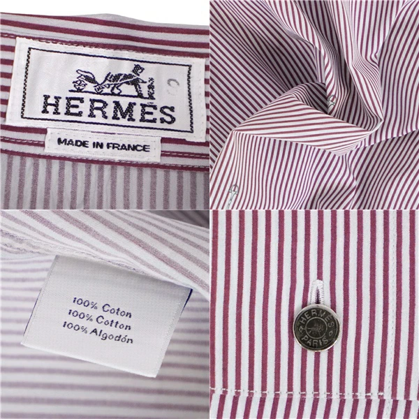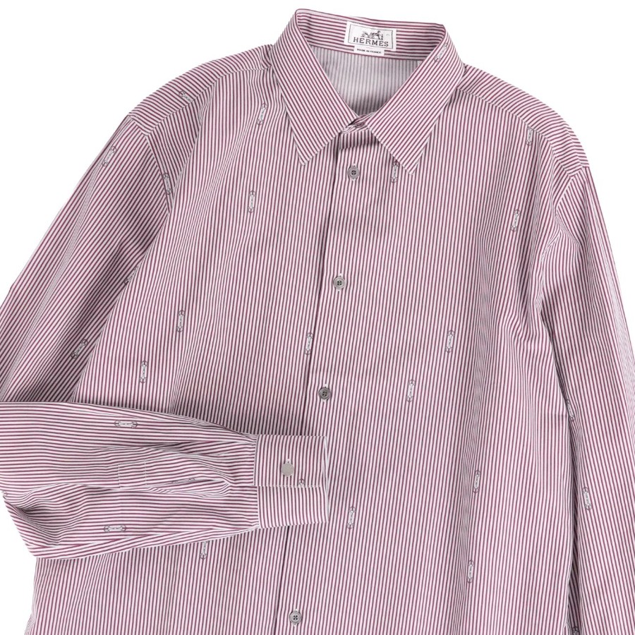 エルメス HERMES シャツ ロングスリーブ 長袖 ストライプ セリエボタン コットン トップス メンズ フランス製 ボルドー サイズ41/15