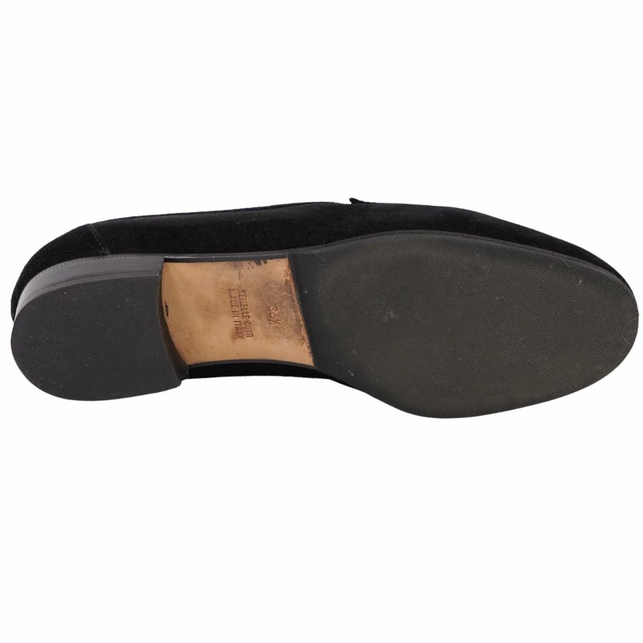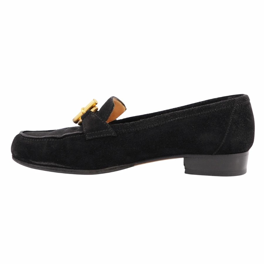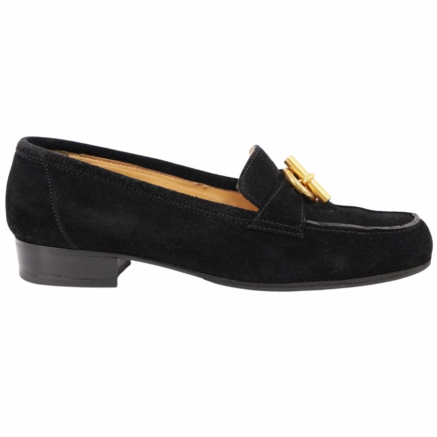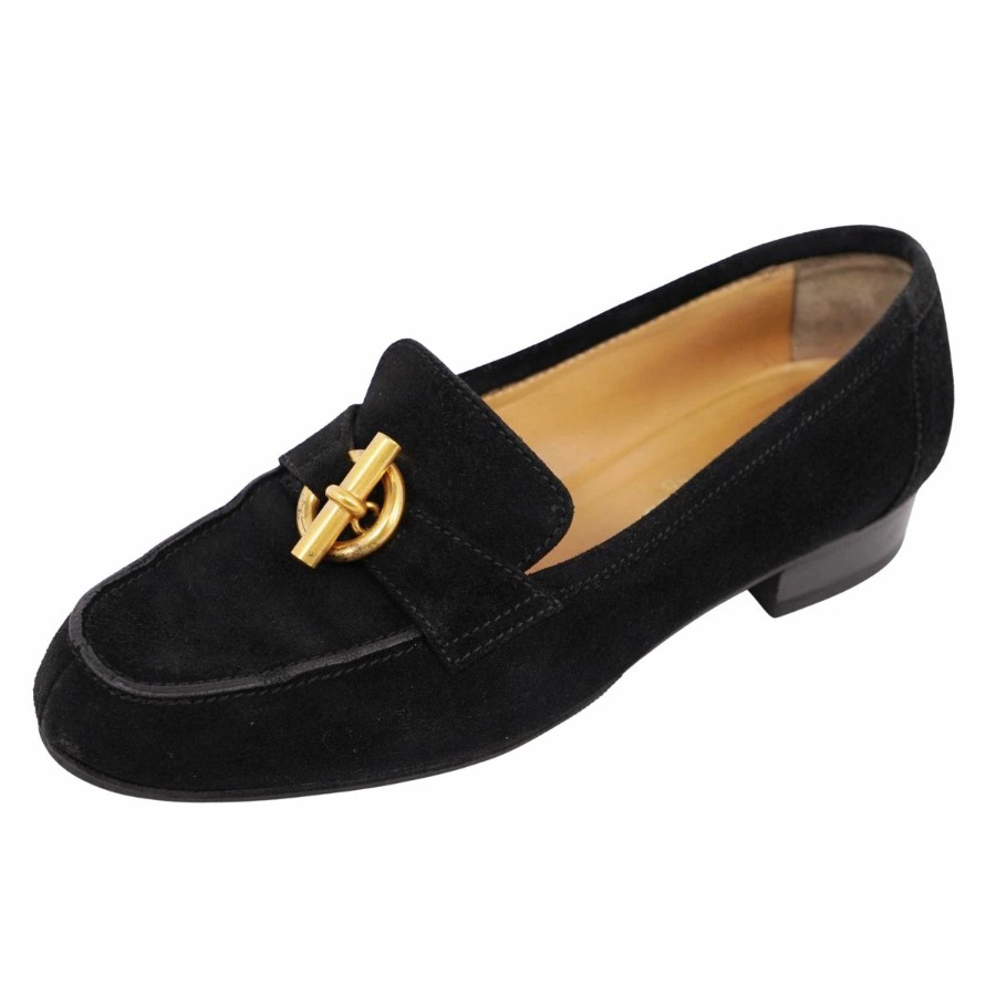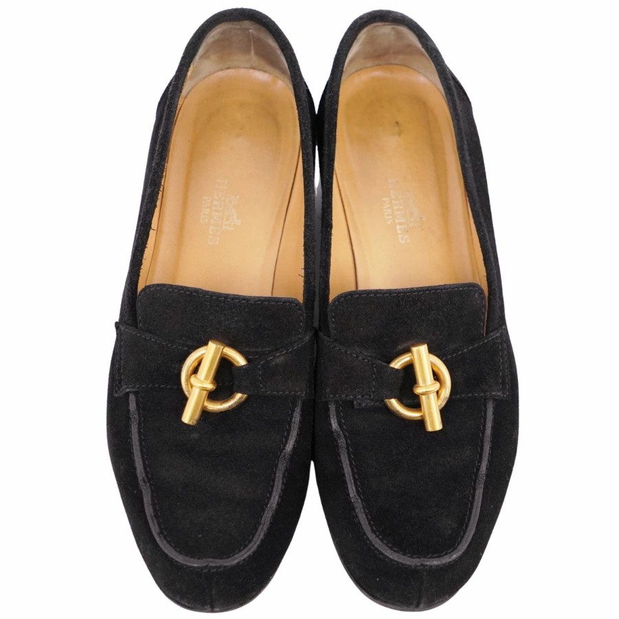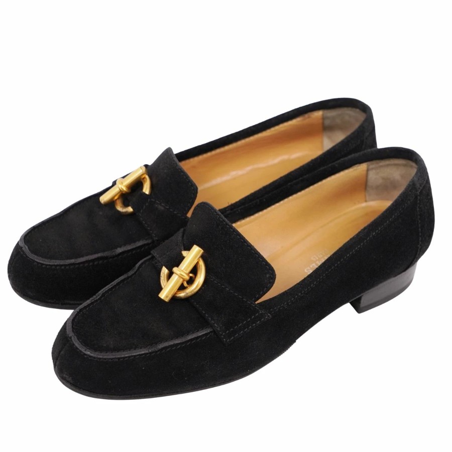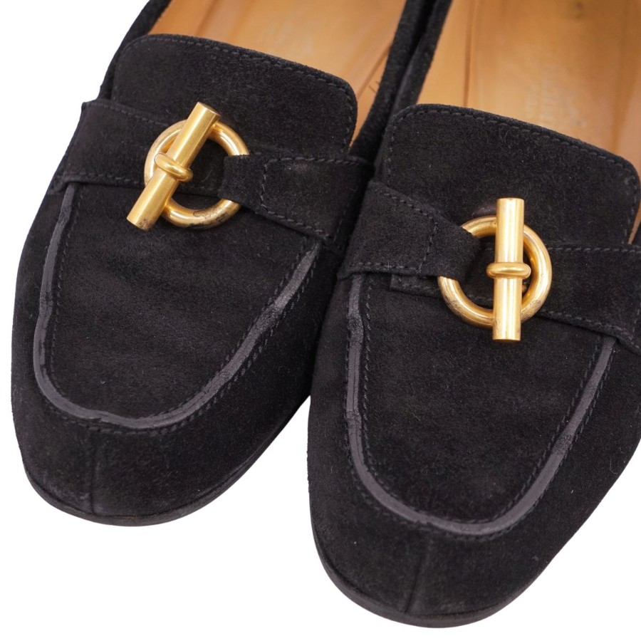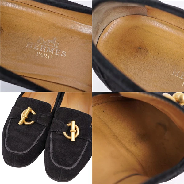 エルメス HERMES ローファー モカシン シェーヌダンクル金具 グレナン金具 スウェードレザー ヒール シューズ 靴 レディース イタリア製 ブラック サイズ36.5(23.5cm相当)