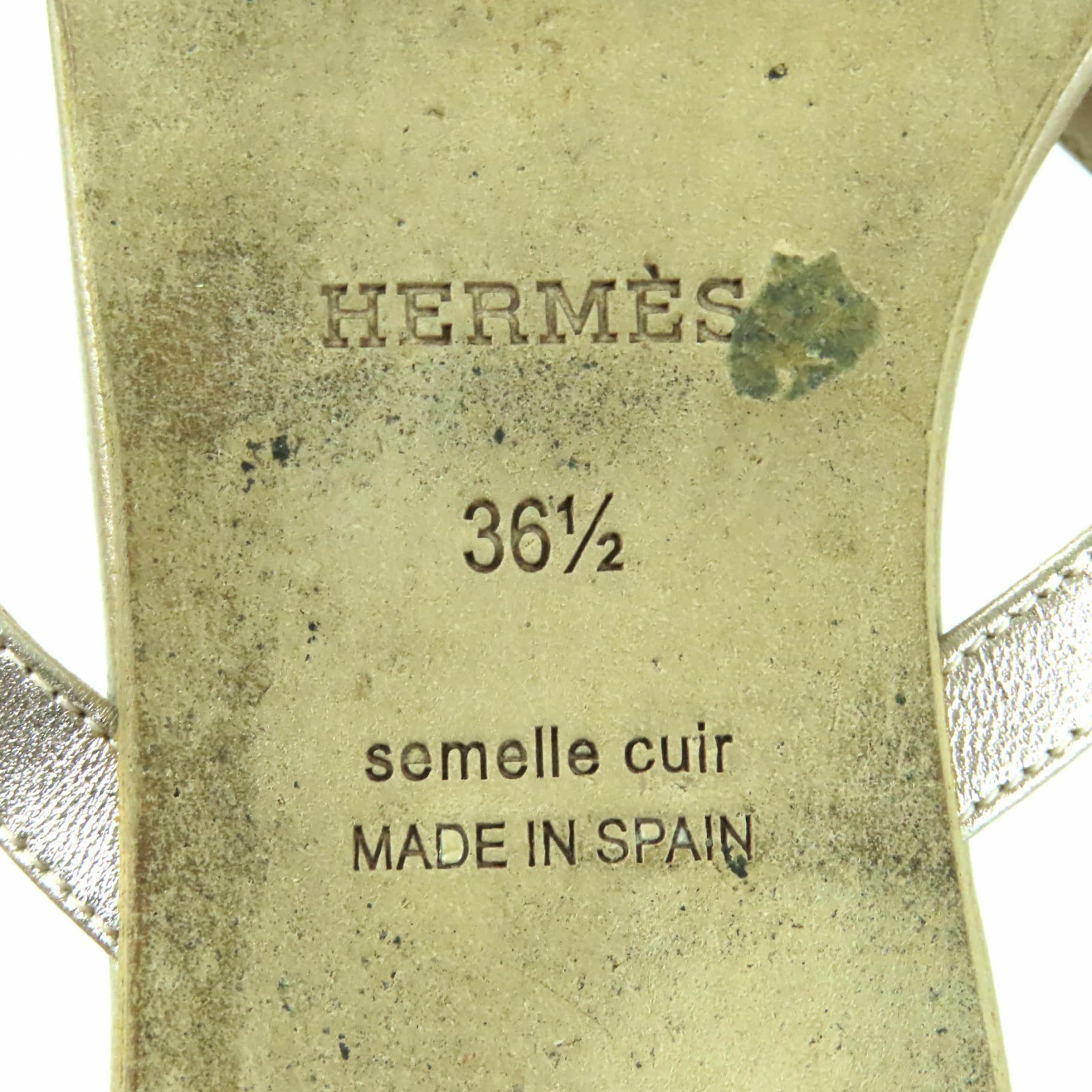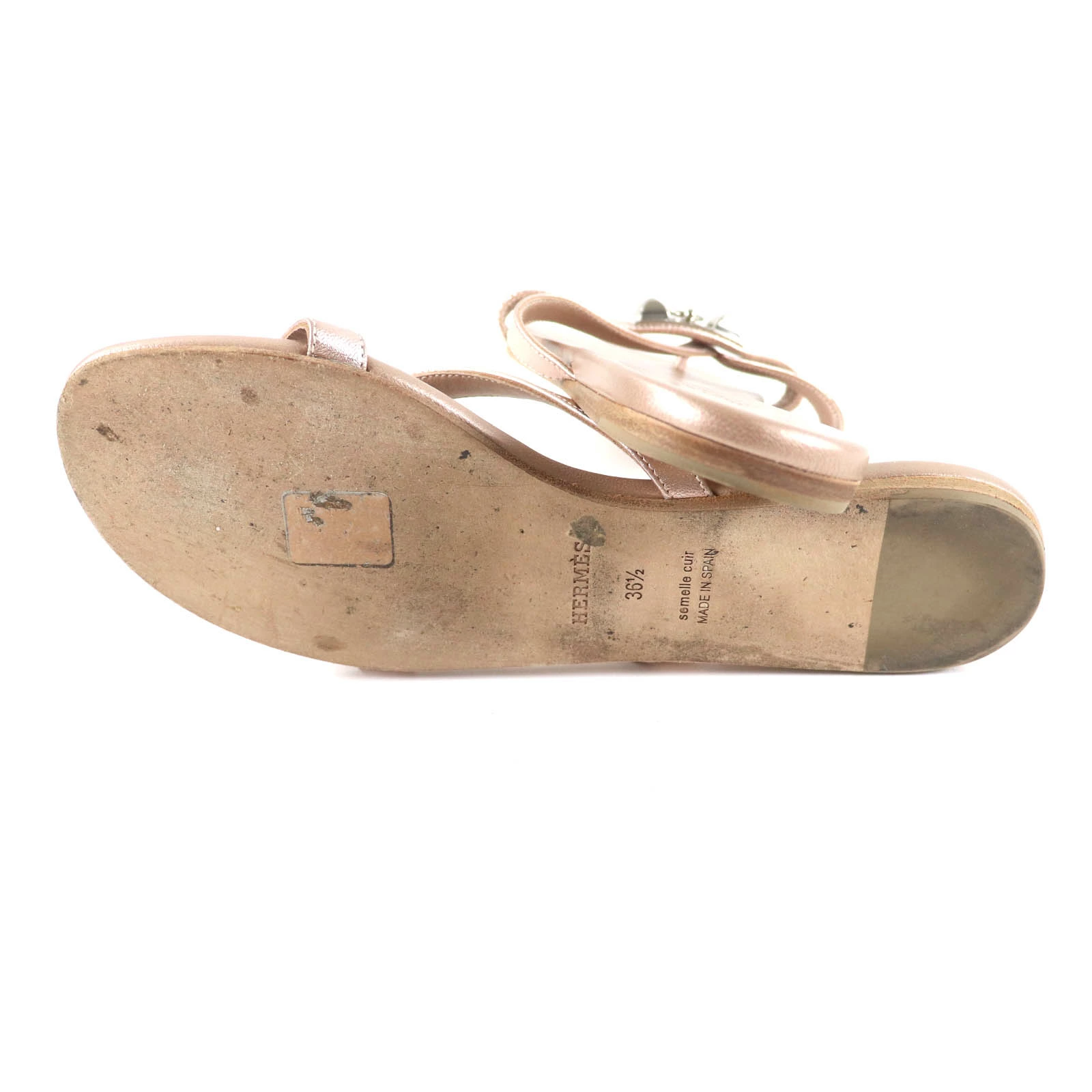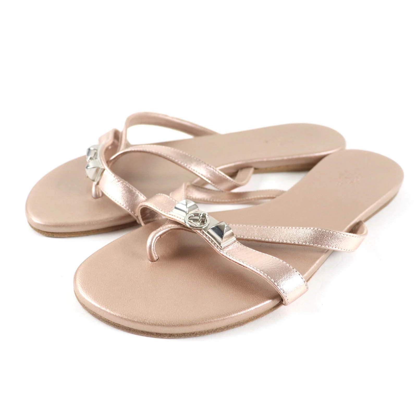 Excellent condition HERMES Medor leather thong sandals, flat sandals, metal pink, size 36.5, made in Spain, women's [pre-owned]