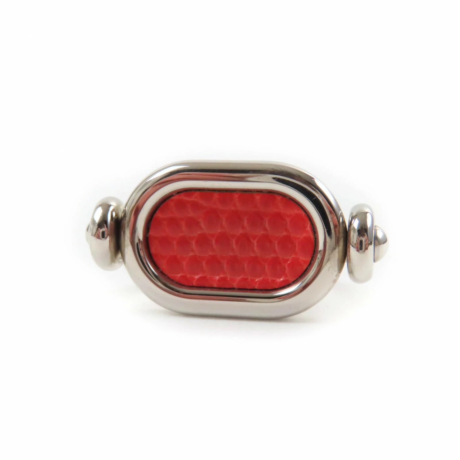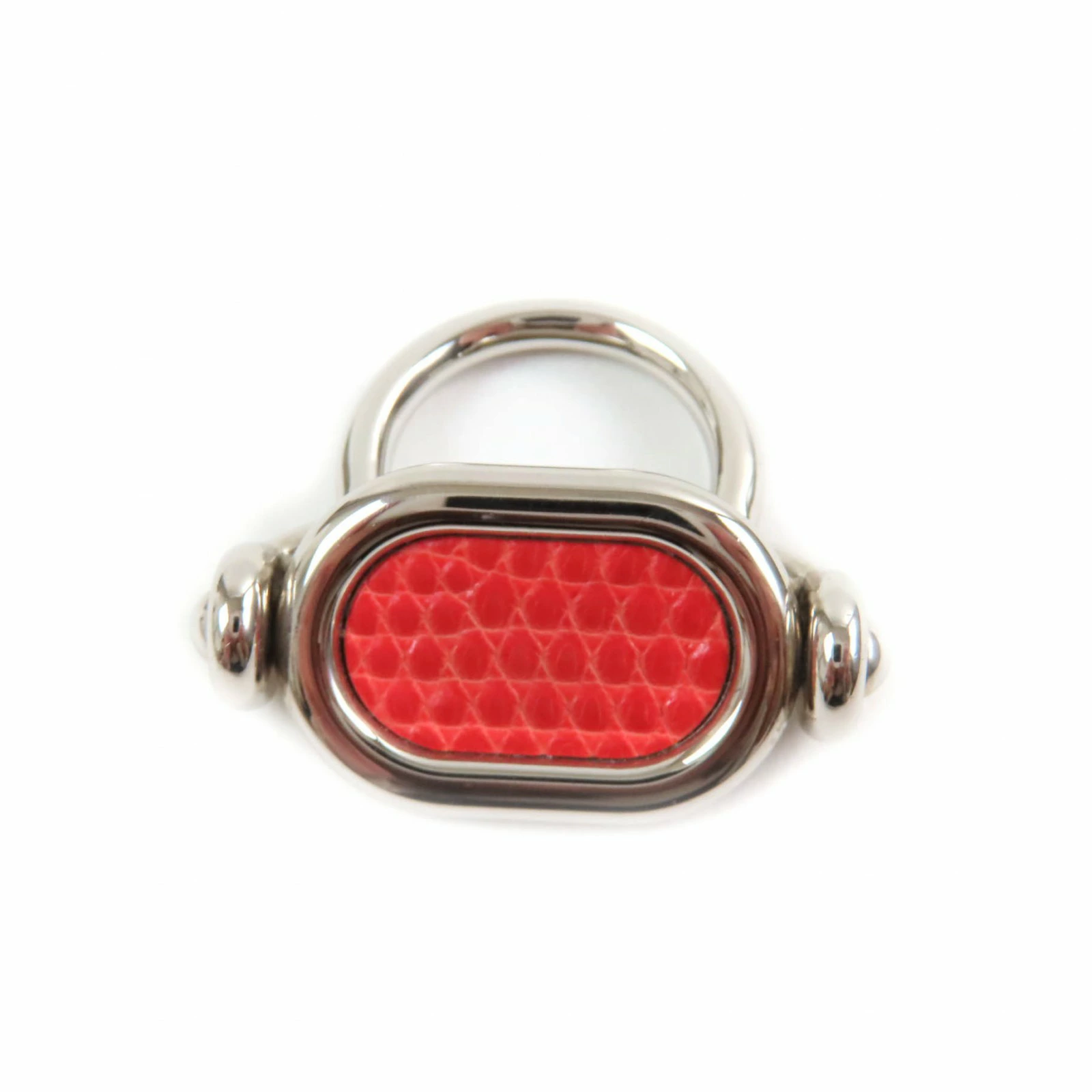 Excellent condition HERMES Odyssey ring, red lizard pattern, silver, size 52, size 10, made in France, women's [pre-owned]