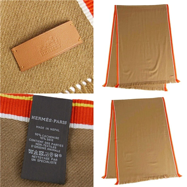 エルメス HERMES マフラー ストール ショール カシミヤ シルク レディース ブラウン サイズ-