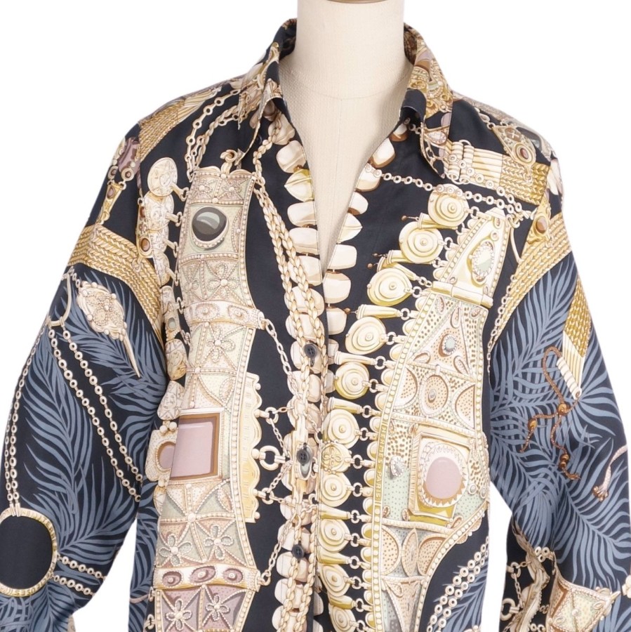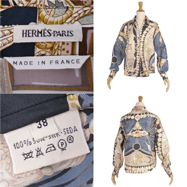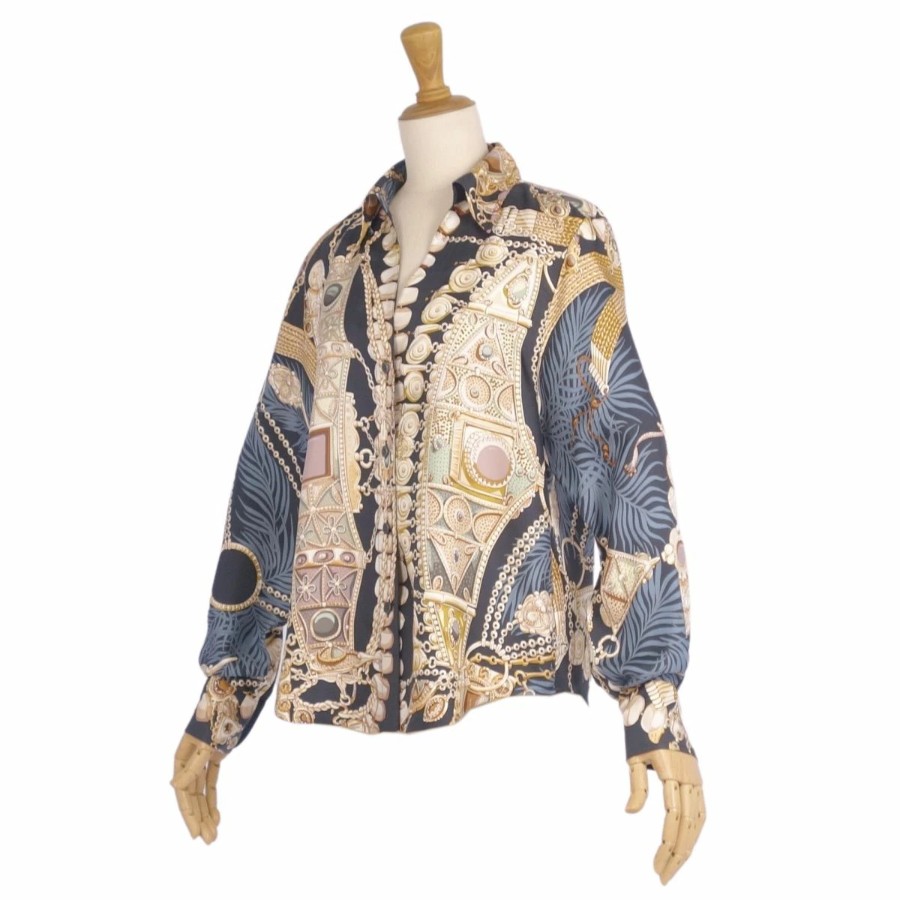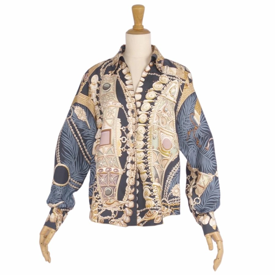 エルメス HERMES シャツ オープンカラー マルジェラ期 ブラウス ロングスリーブ 長袖 シルク トップス レディース フランス製 マルチカラー サイズ38(M相当)