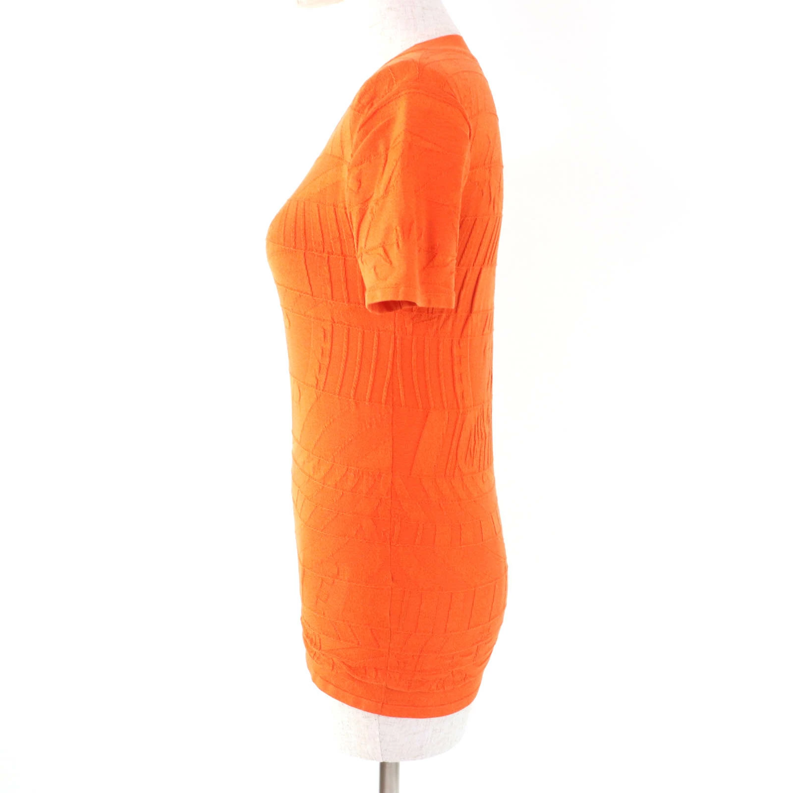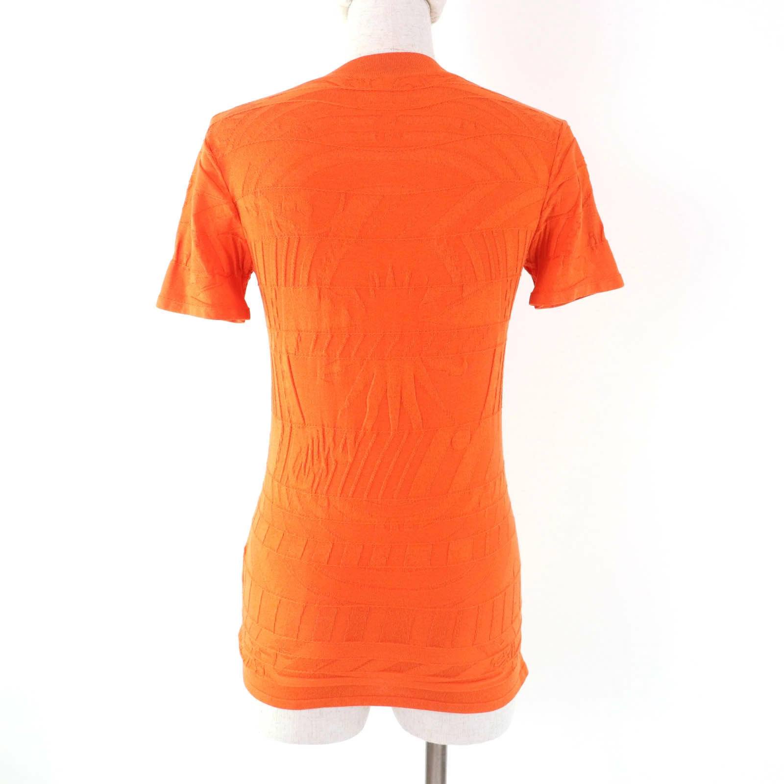Excellent condition HERMES silk-blend embossed crew neck short-sleeve knit top, orange, size 36, made in Italy, authentic, women's [pre-owned]