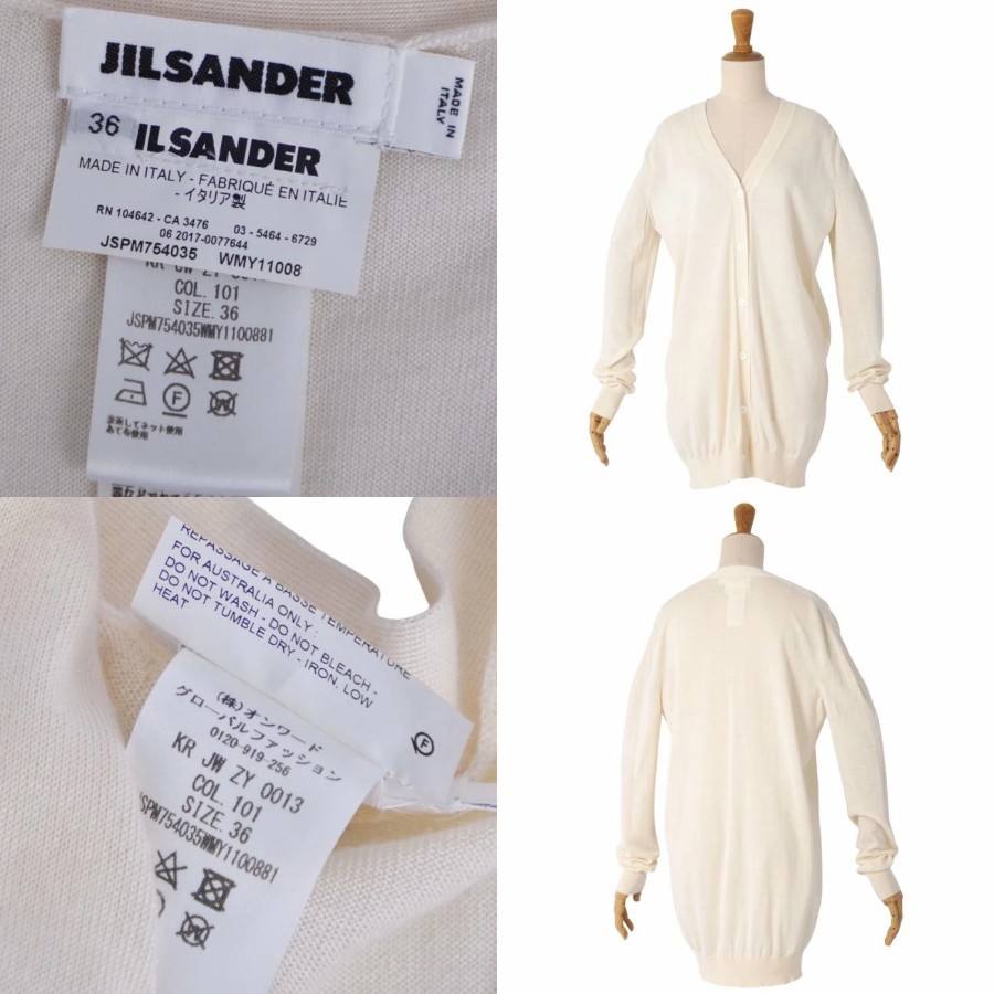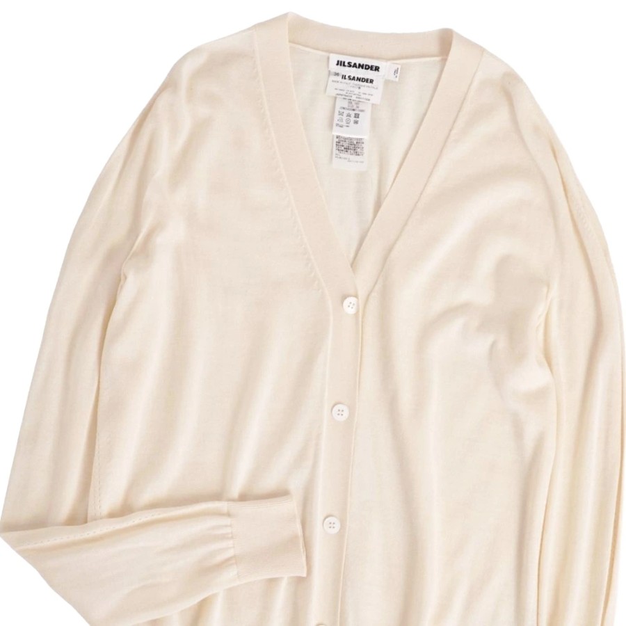 ジルサンダー JIL SANDER カーディガン ニット ロングスリーブ 長袖 カシミヤ シルク トップス レディース イタリア製 ベージュ サイズ36(M相当)