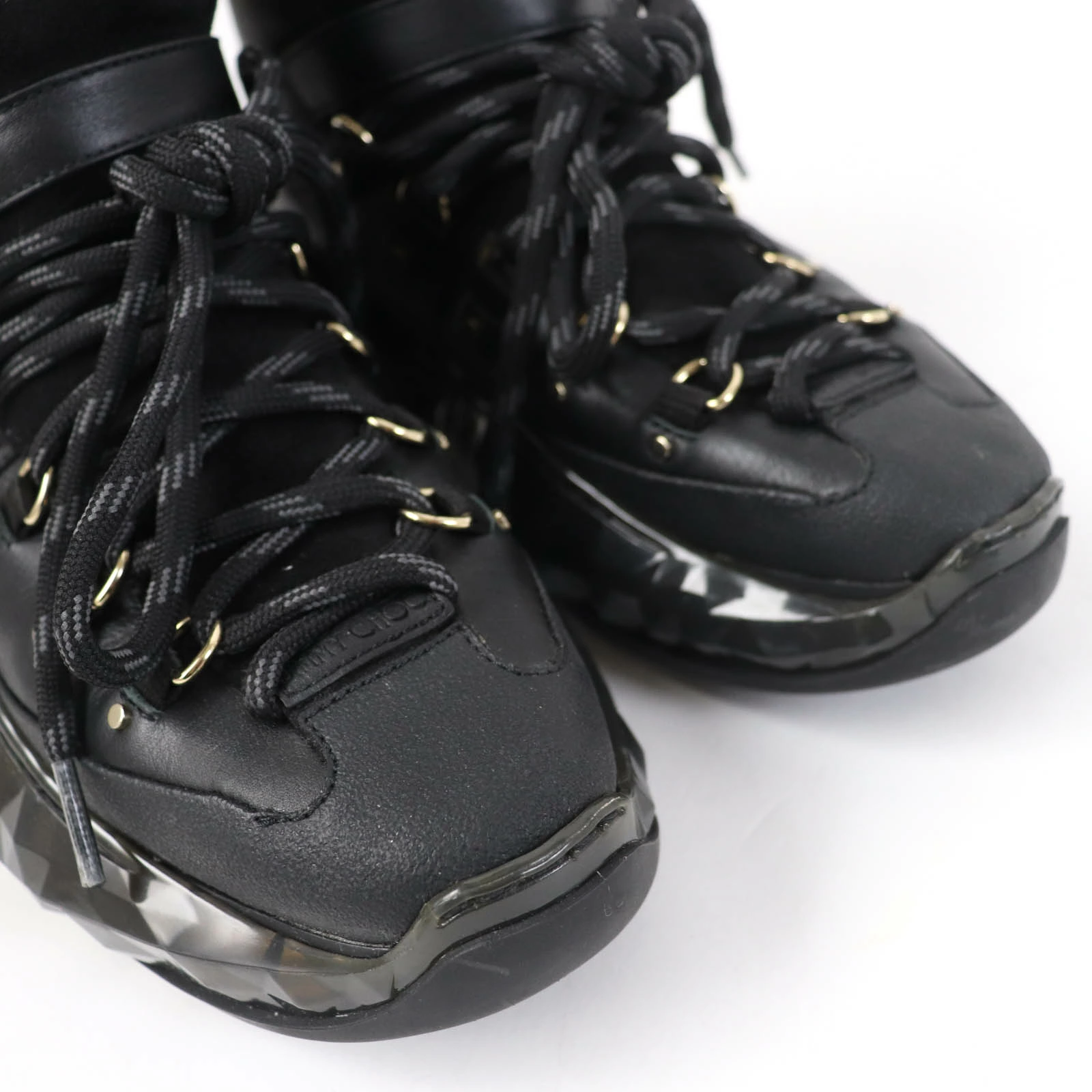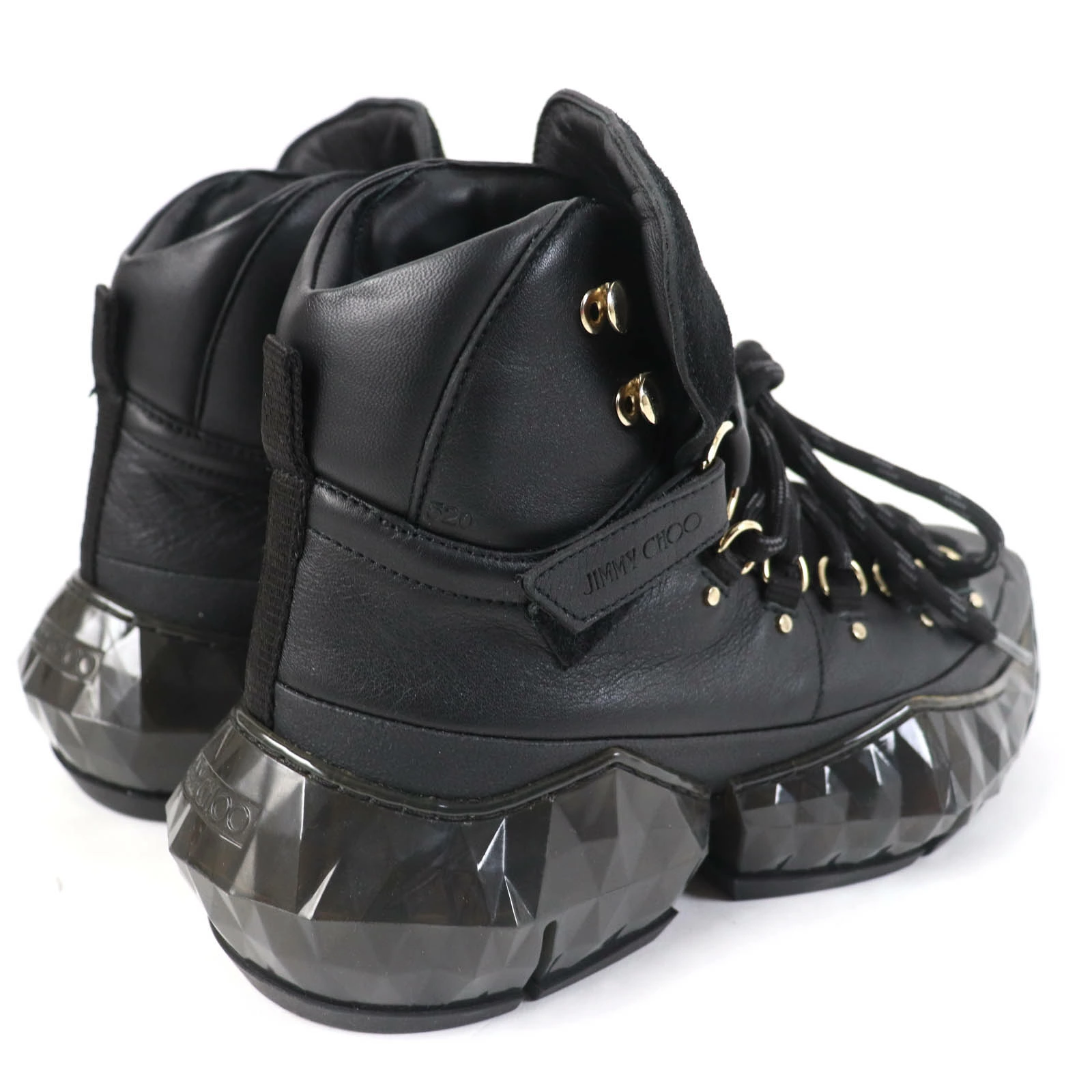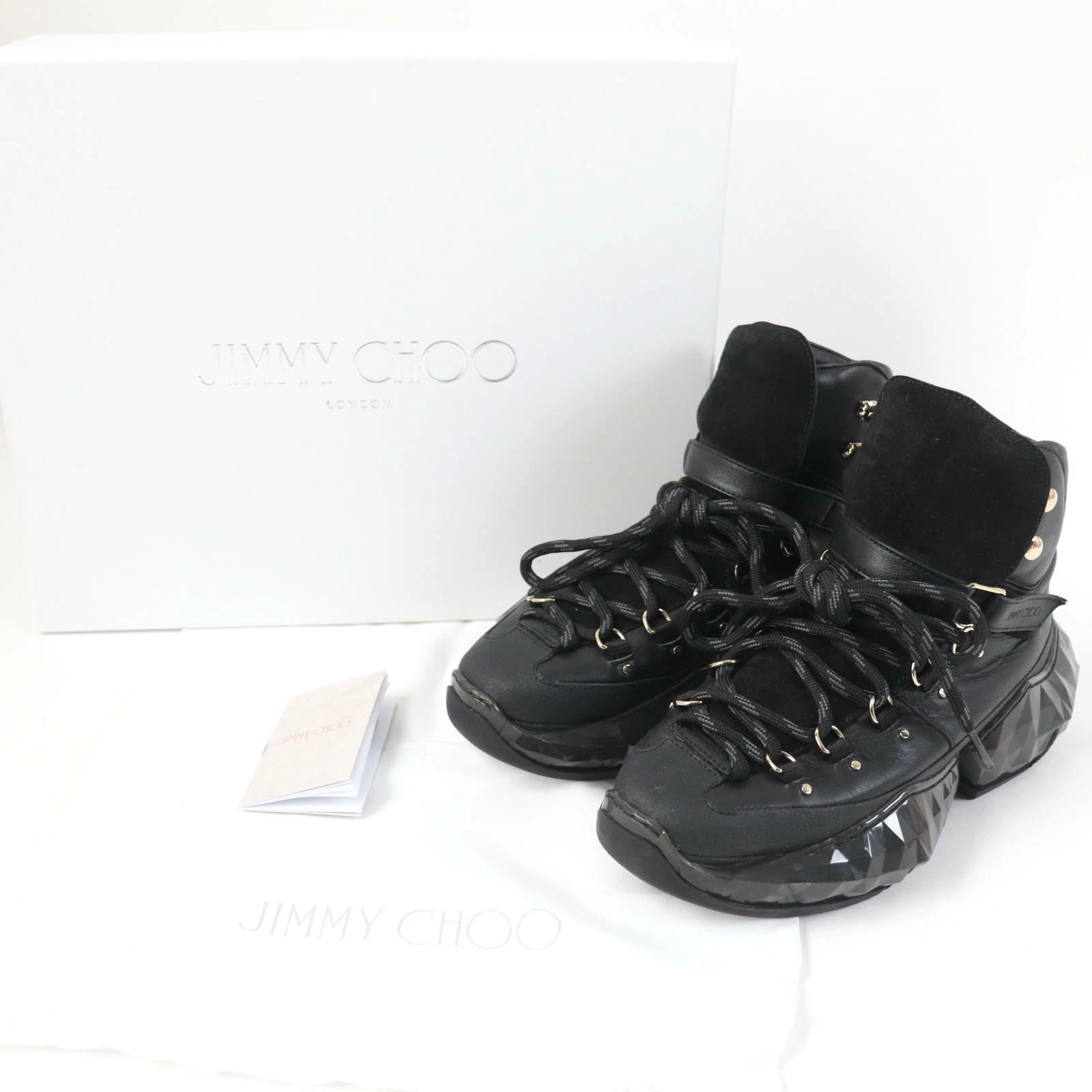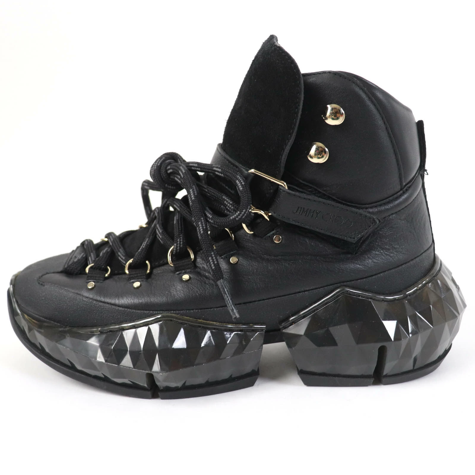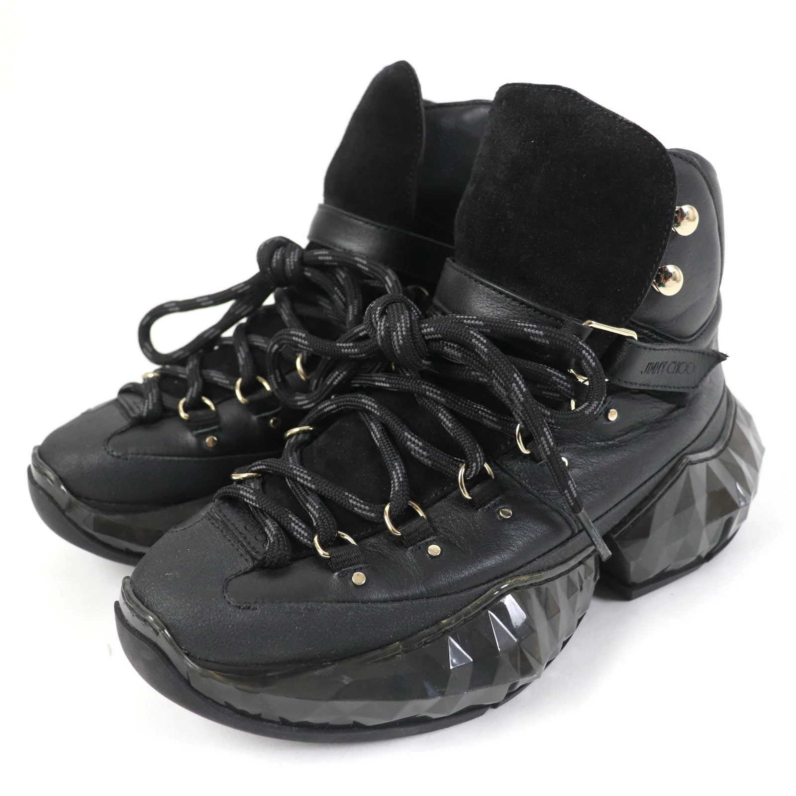 Excellent condition JIMMY CHOO DIAMOND HIKE lace-up leather high-top sneakers, black, size 36, with dust bag, made in Italy, women's [pre-owned]