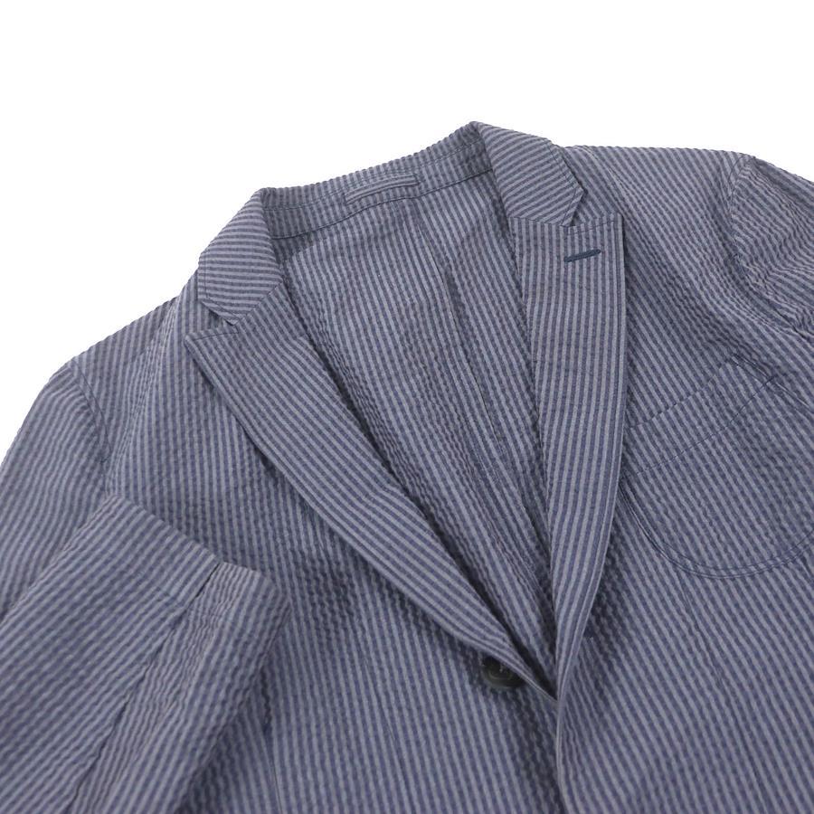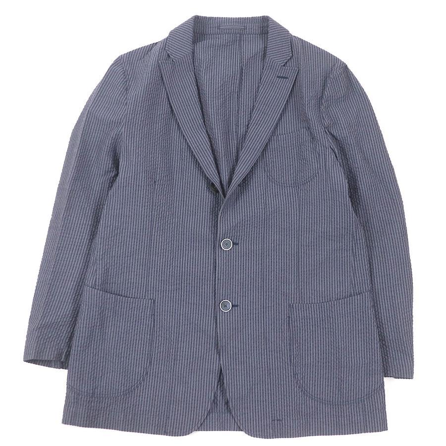 Excellent condition LARDINI JKCM21 100% cotton striped single-breasted seersucker tailored jacket/blazer, blue, size 50, made in Italy, authentic, men's [pre-owned]