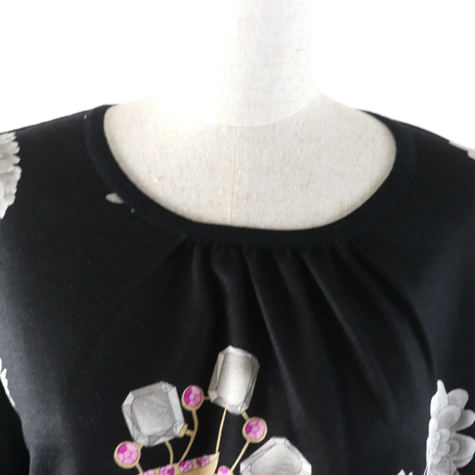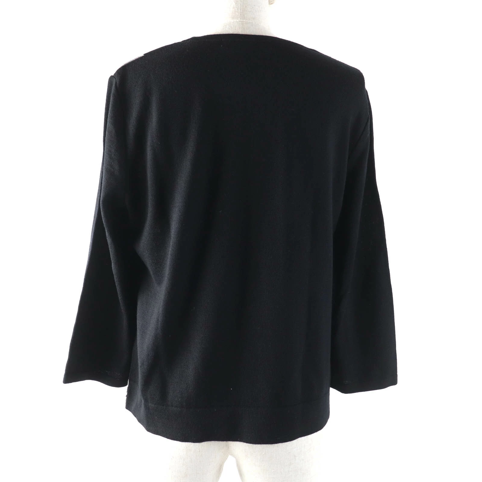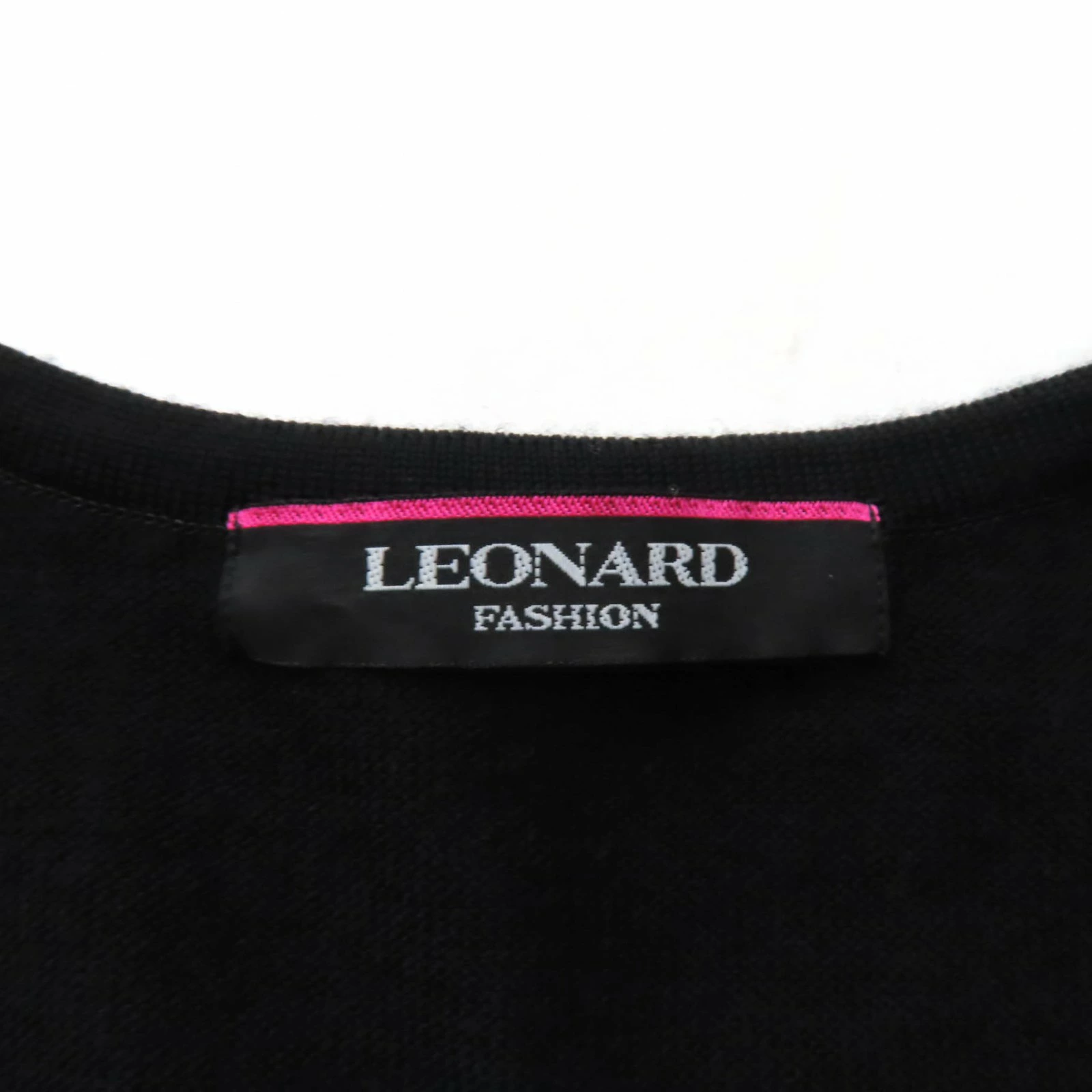 Excellent condition LEONARD FASHION 0387717 wool and silk blend floral print crew neck, 3/4 sleeve knit, black, size 42, made in Japan, authentic, women's [pre-owned]