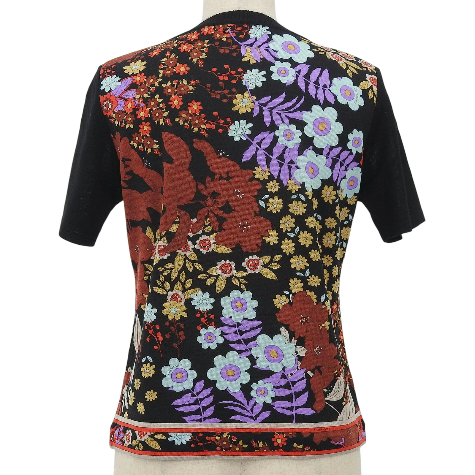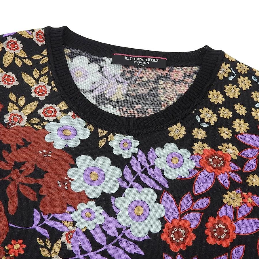 Excellent condition LEONARD FASHION silk-blend floral print crew neck short-sleeve knit sweater, black, multicolor, size M, made in Japan, authentic, women's [pre-owned]