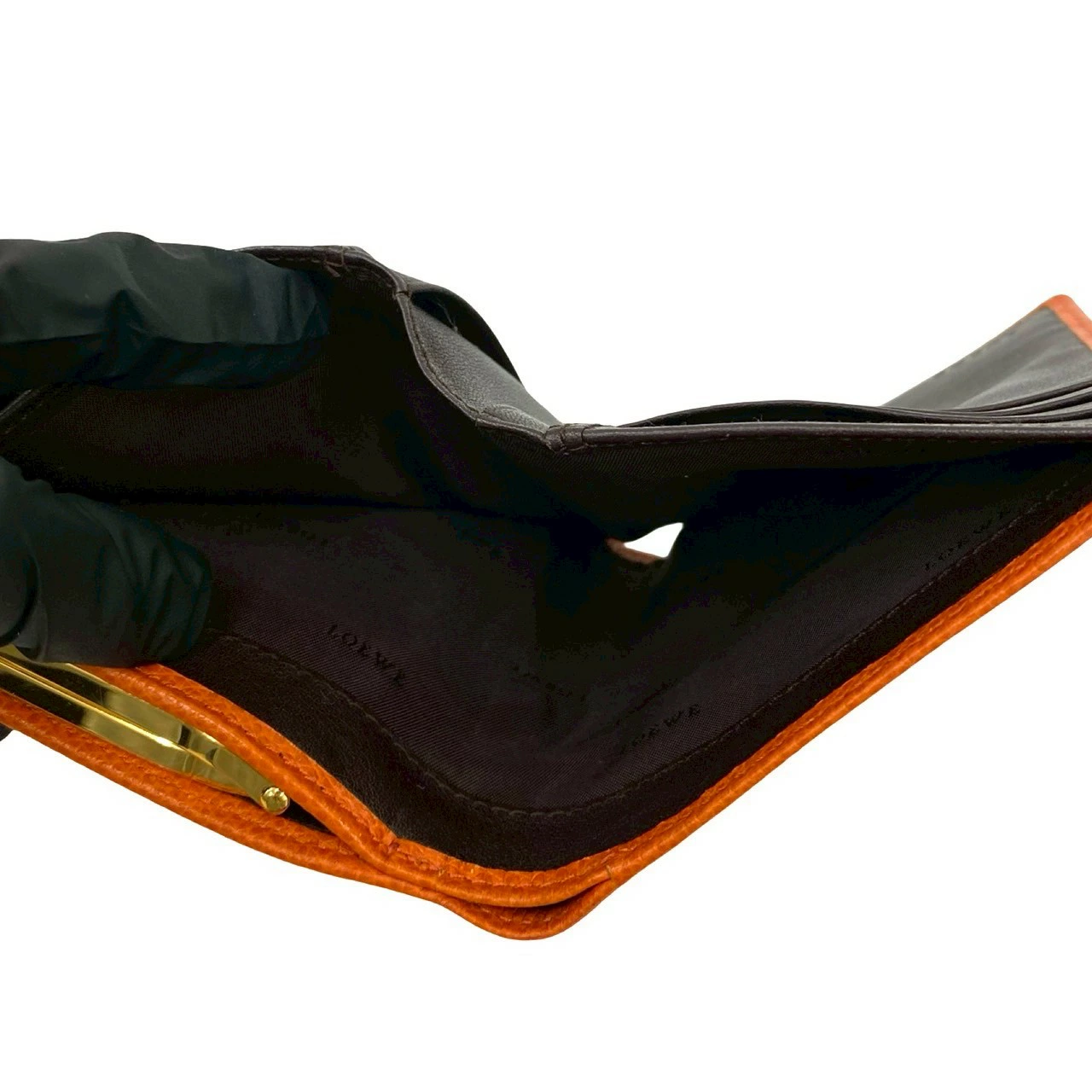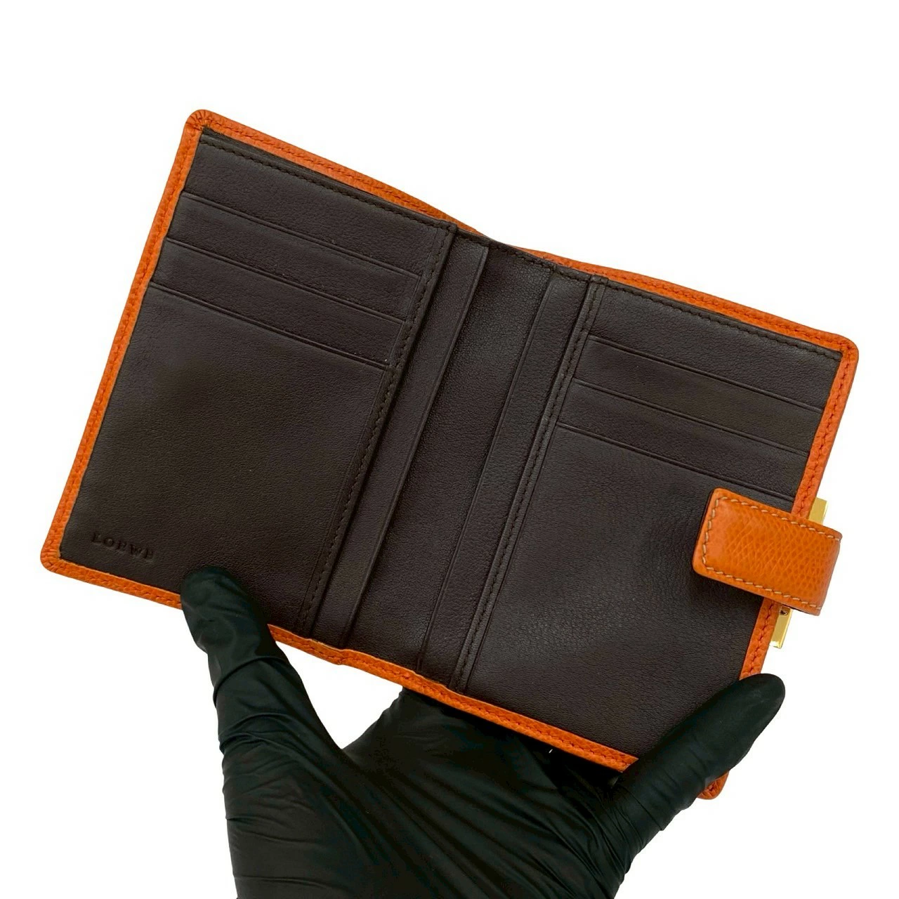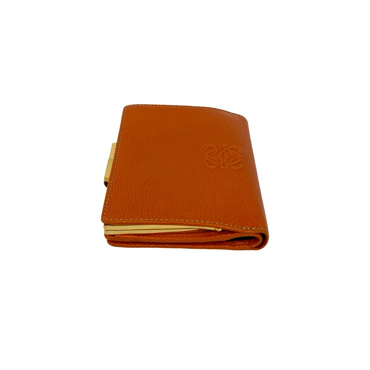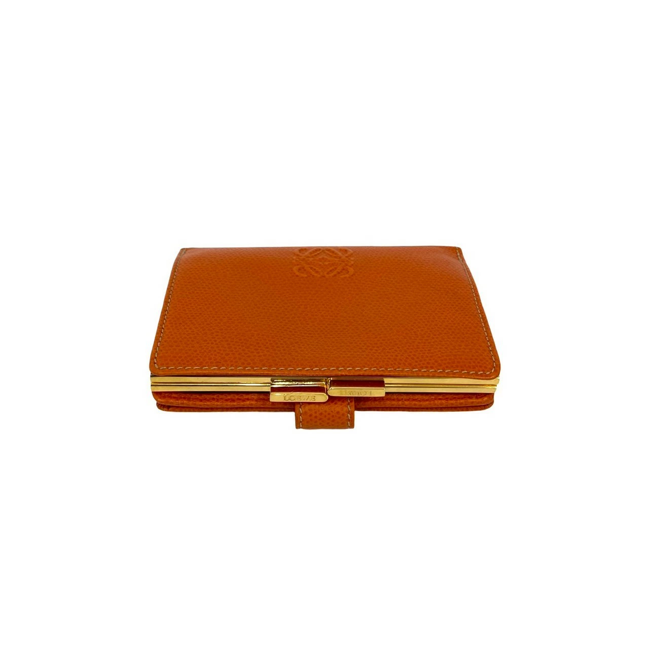 Excellent condition LOEWE Anagram embossed logo leather bifold wallet with genuine leather clasp closure, mini wallet, coin purse, and bill compartment, orange, 95328 [pre-owned]