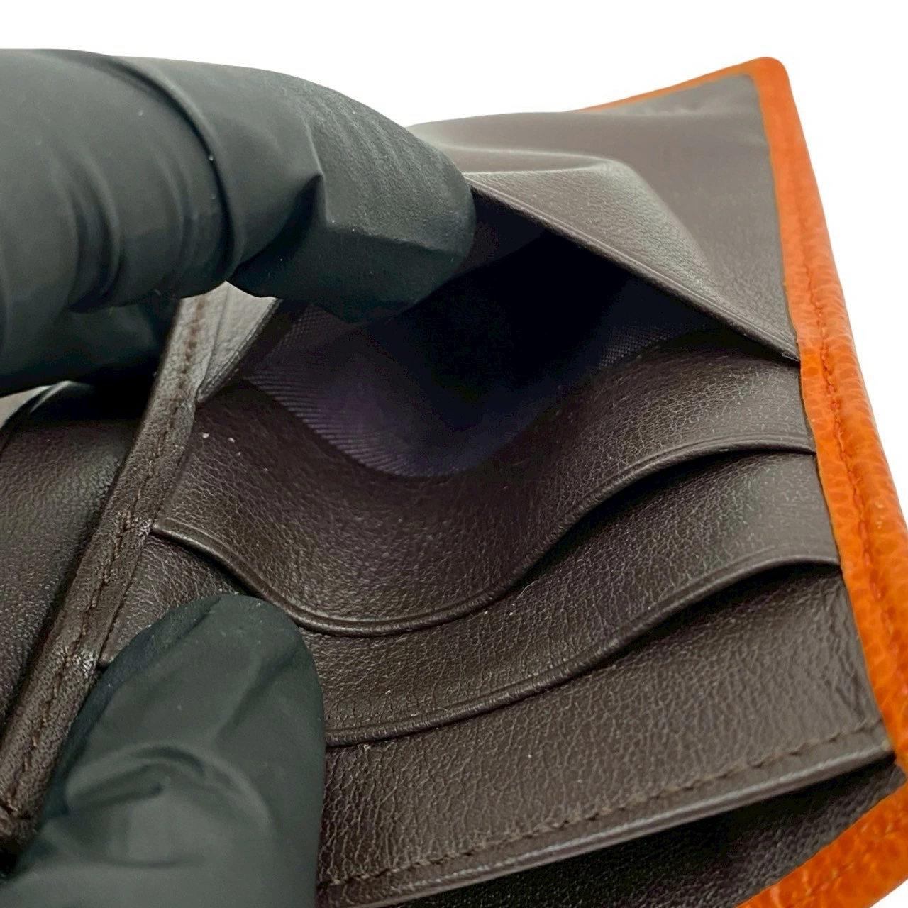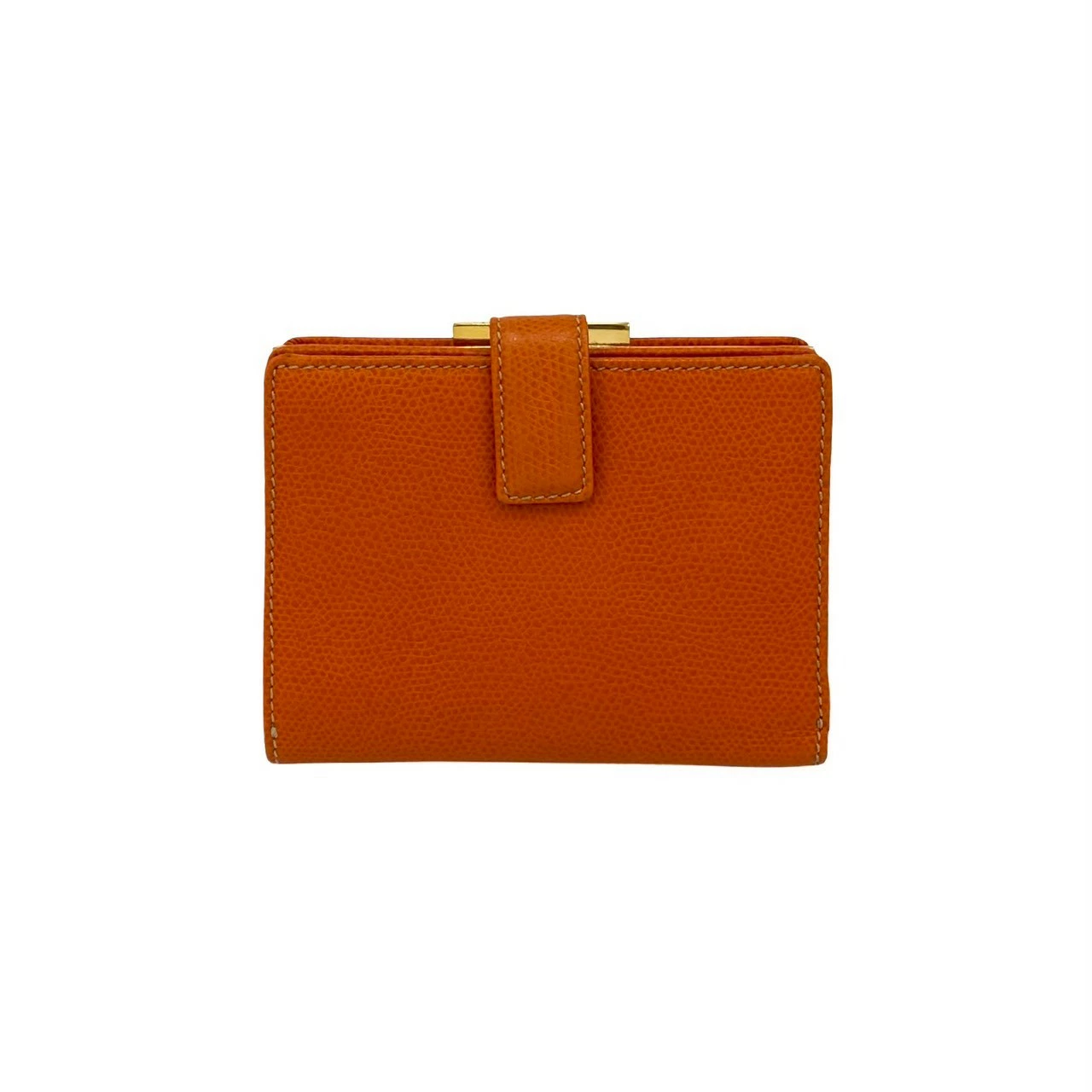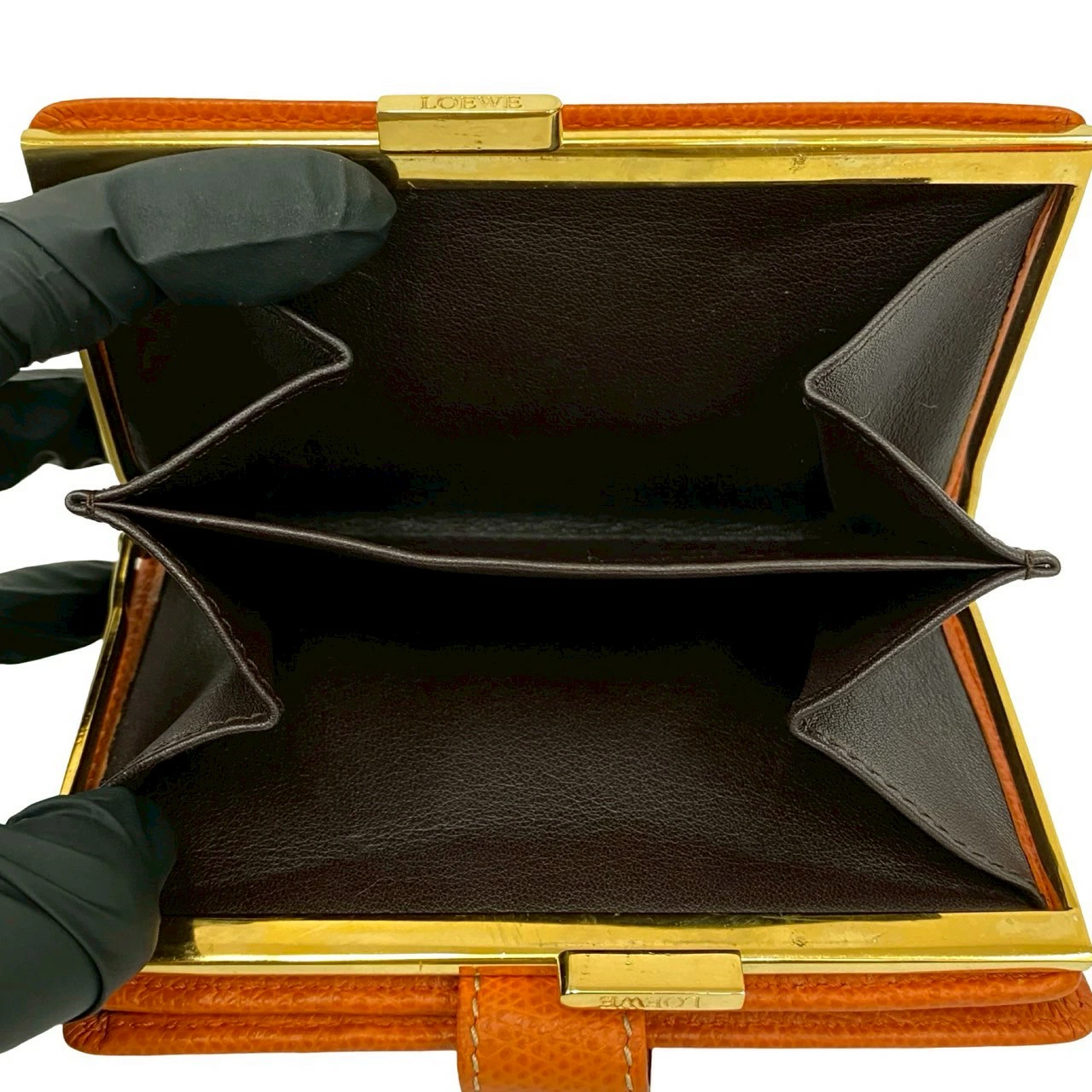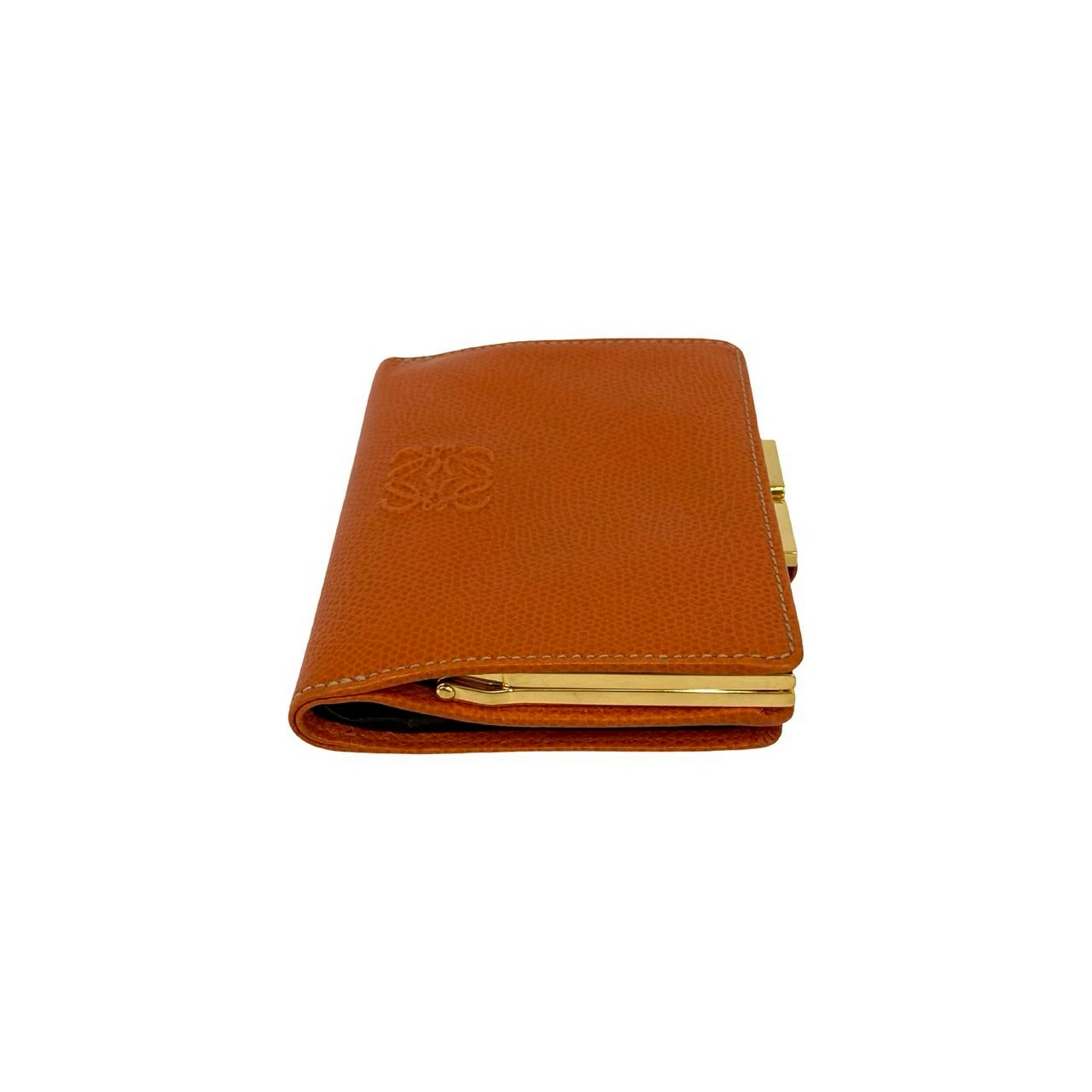 Excellent condition LOEWE Anagram embossed logo leather bifold wallet with genuine leather clasp closure, mini wallet, coin purse, and bill compartment, orange, 95328 [pre-owned]