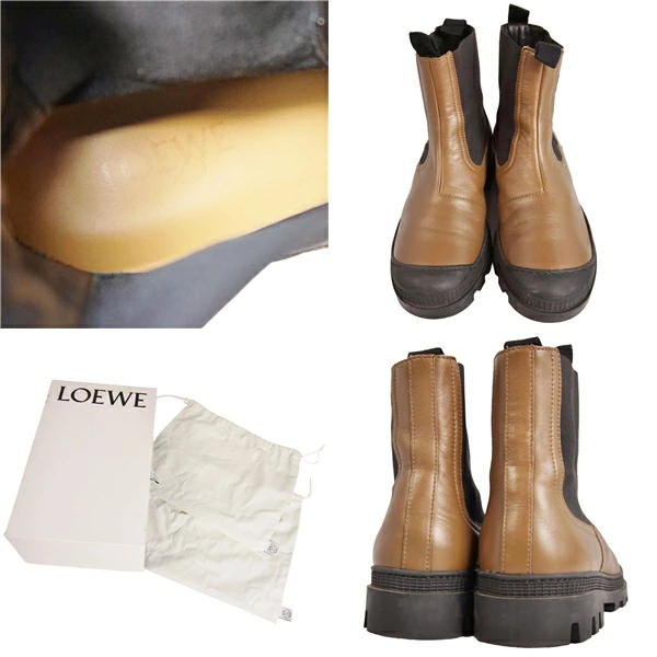 ロエベ LOEWE ブーツ ショートブーツ サイドゴア レザー シューズ 靴 レディース イタリア製 ブラウン サイズ37(24cm相当)