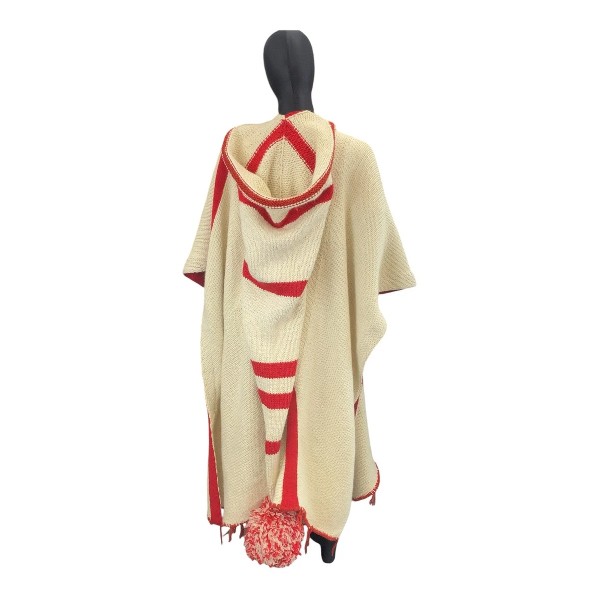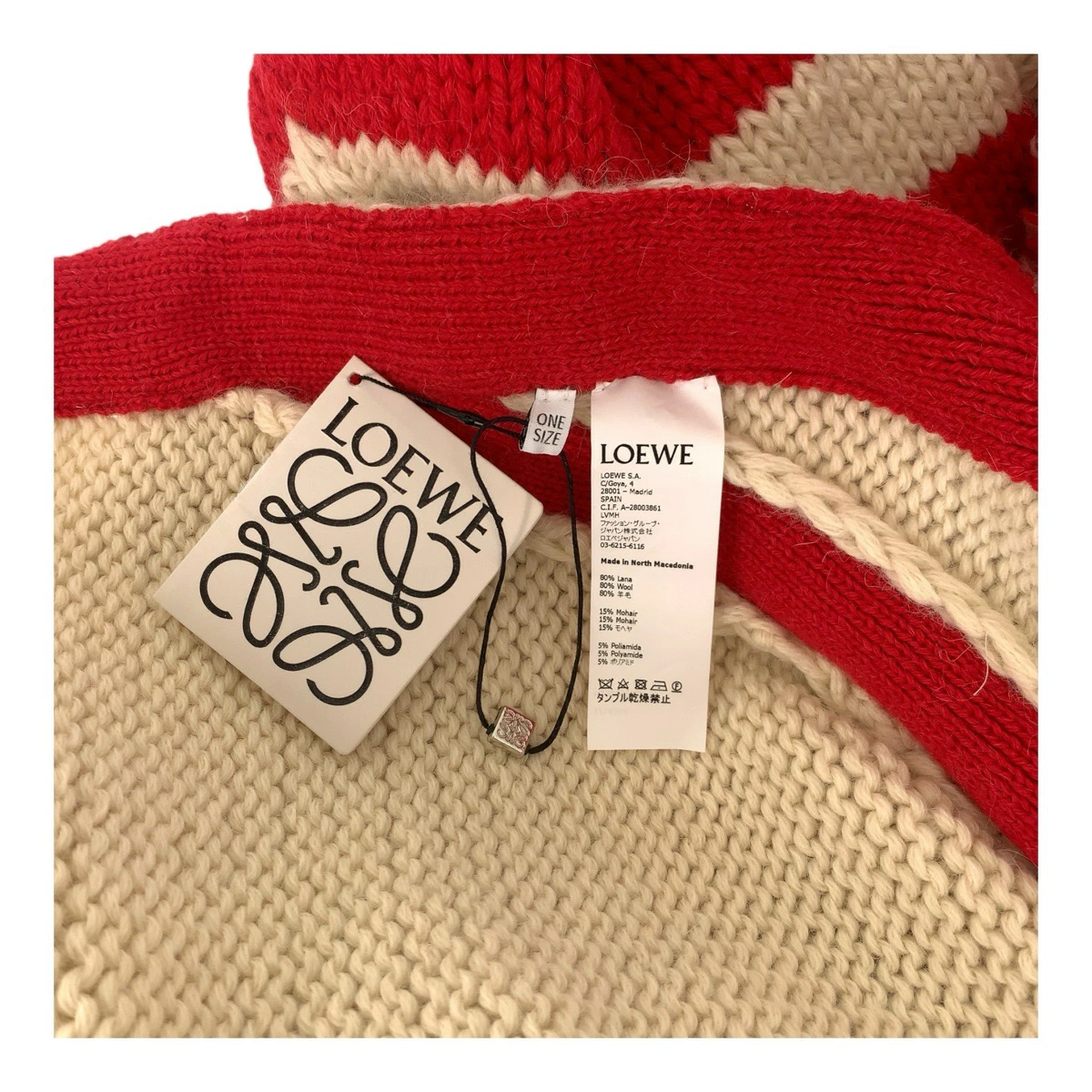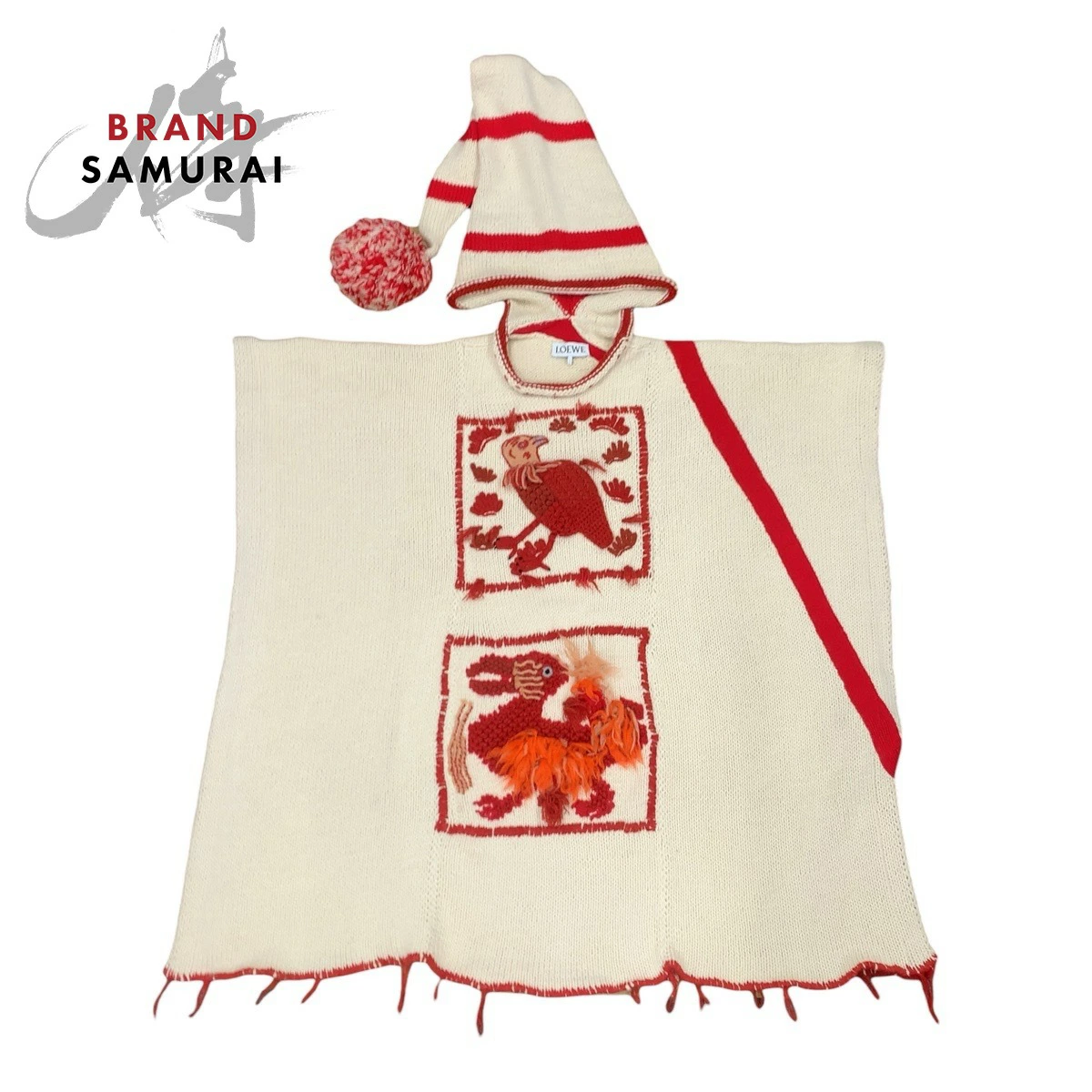 Excellent condition LOEWE Collection Line One Size Ivory Red Wool Embroidered Poncho Men's 410993 [Pre-owned]