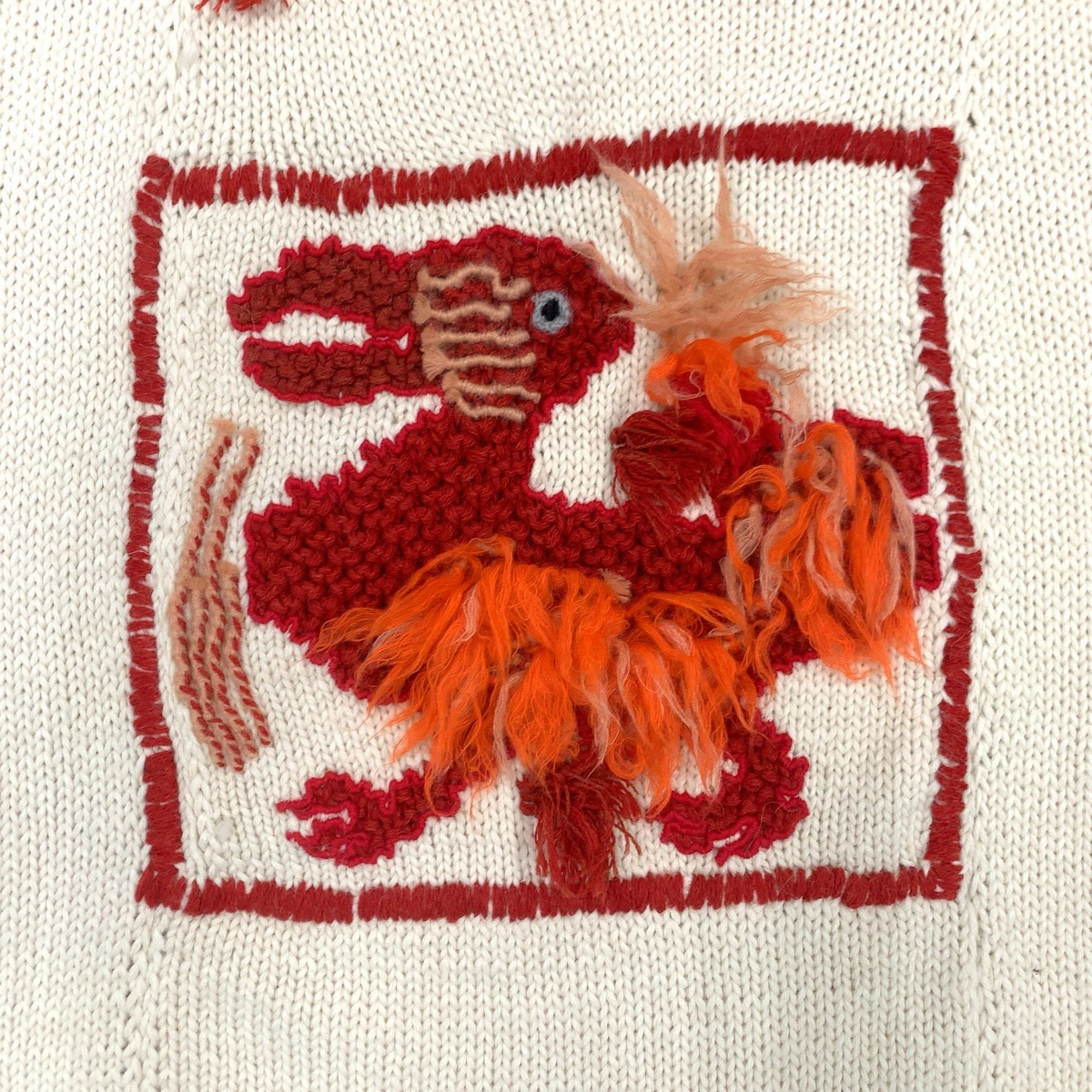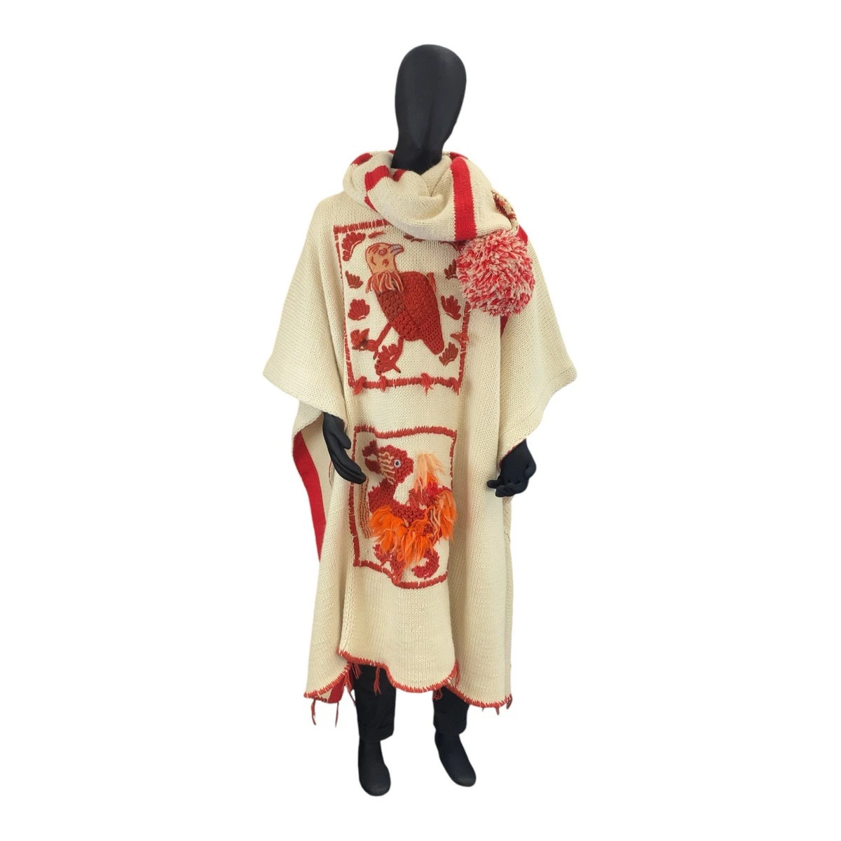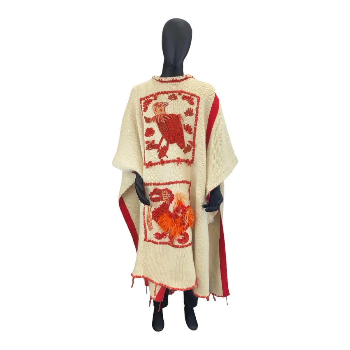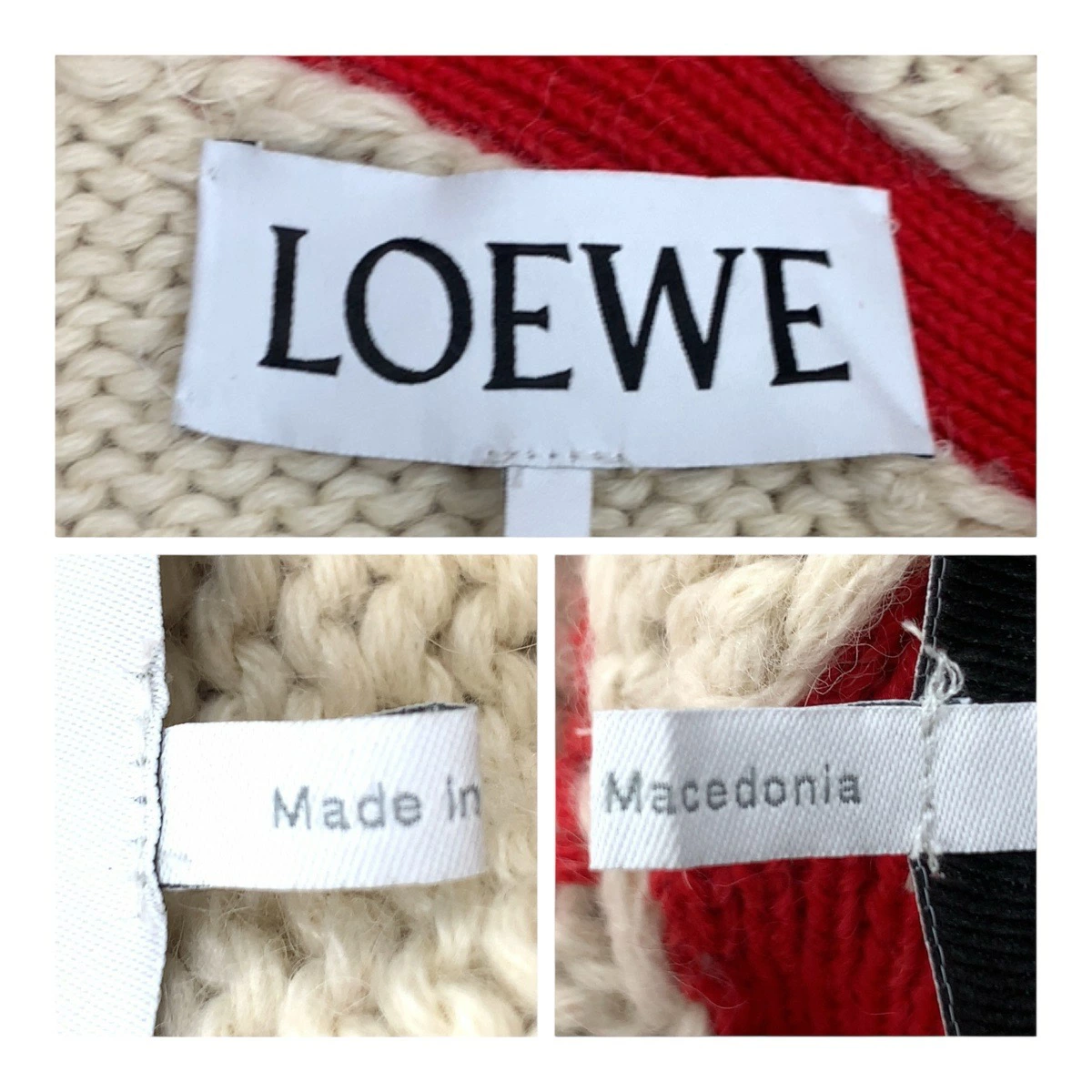Excellent condition LOEWE Collection Line One Size Ivory Red Wool Embroidered Poncho Men's 410993 [Pre-owned]