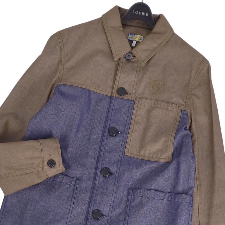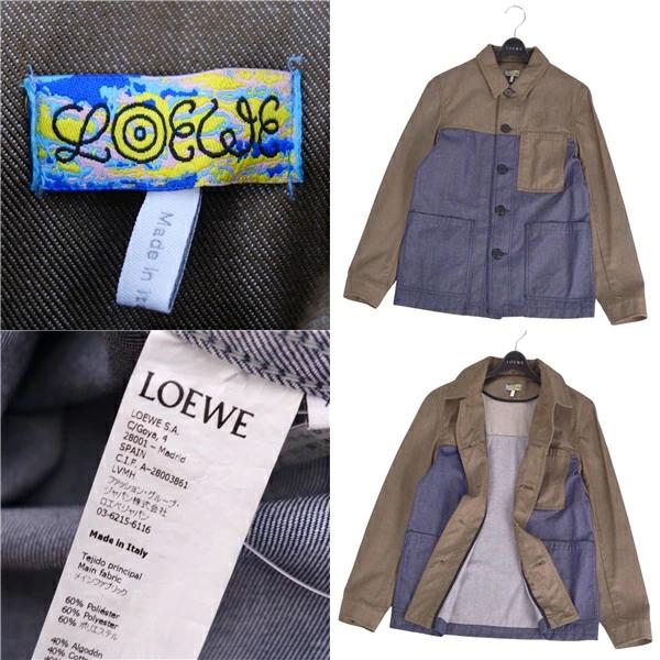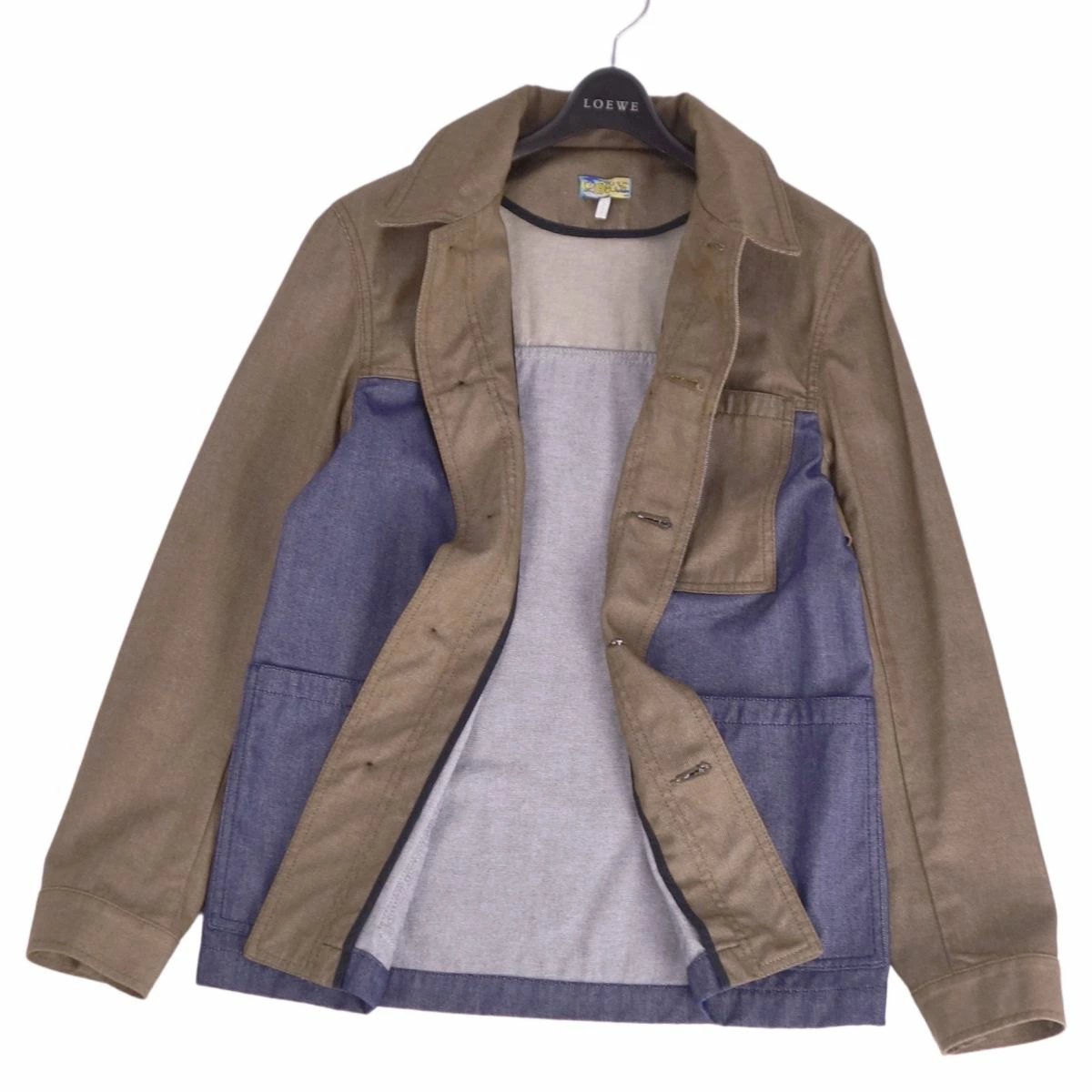 Excellent condition LOEWE denim jacket/coverall, cotton outerwear, men's, made in Italy, size XS, khaki/indigo blue. Pre-owned.