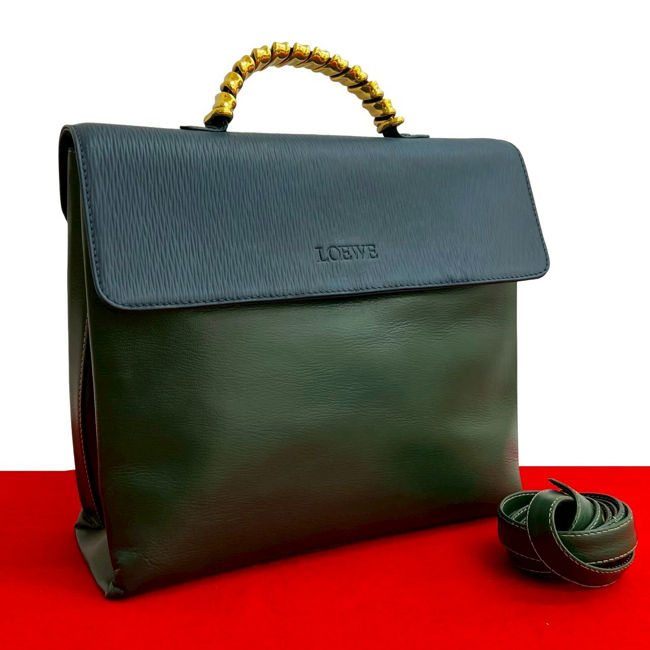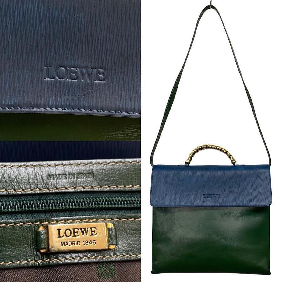 Excellent condition LOEWE Vintage Velázquez Twist Handle Leather 2-Way Shoulder/Handbag Green 26934 Pre-owned