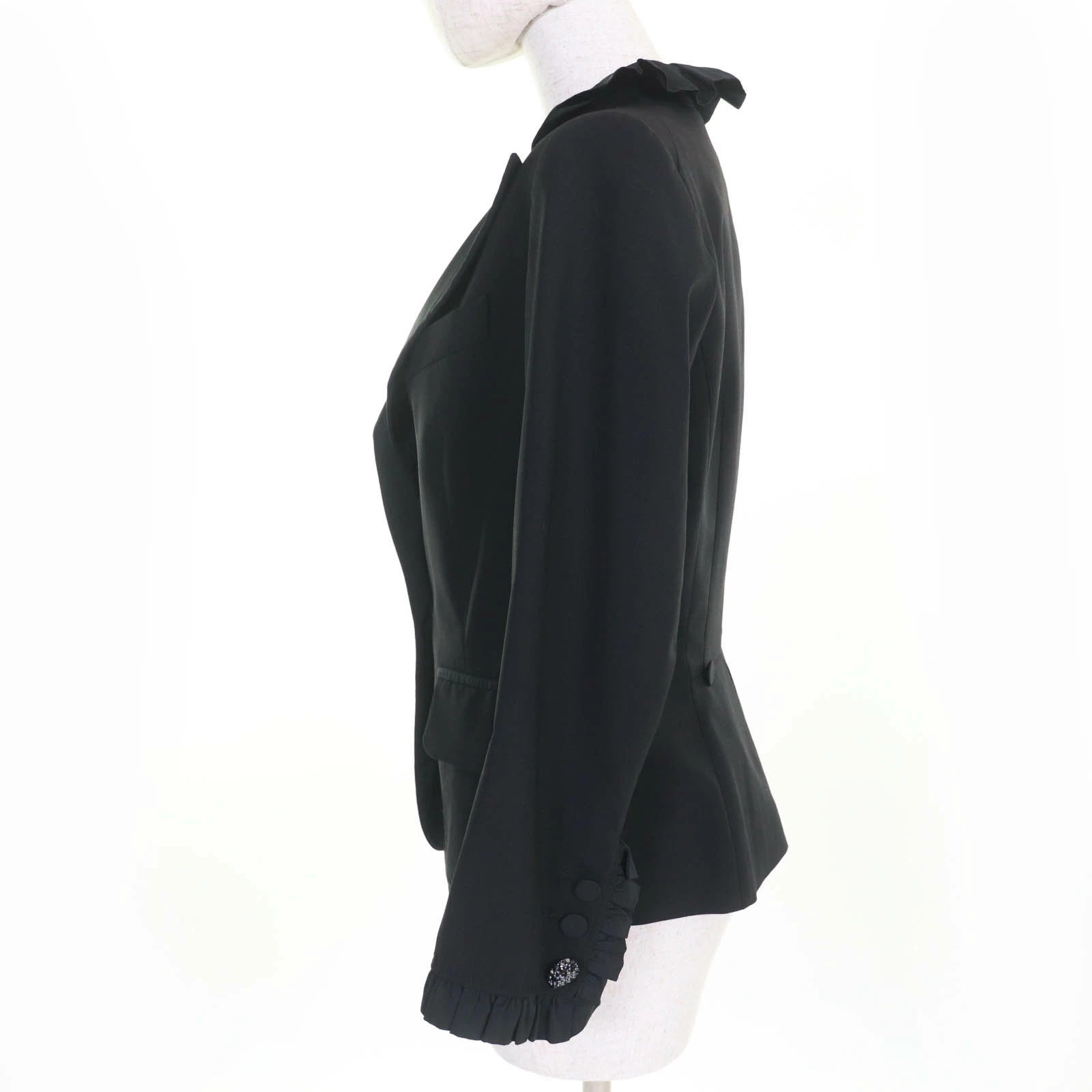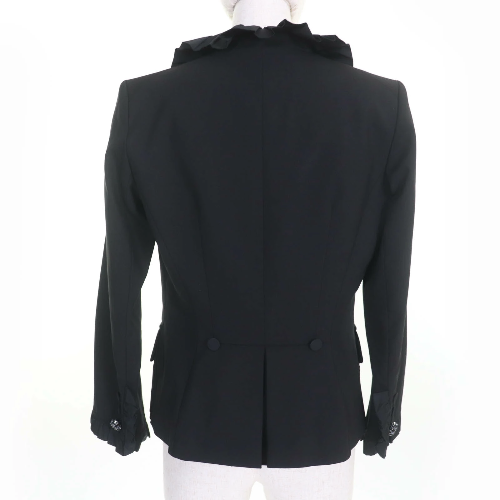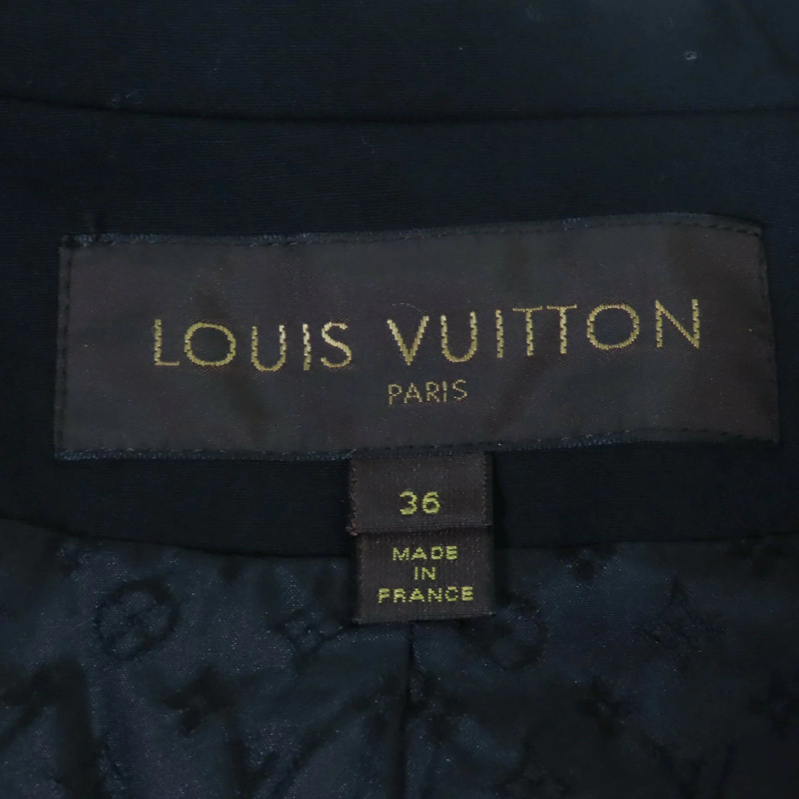 Excellent condition LOUIS VUITTON 09SS wool and silk blend jacket with Monogram Mini lining and ruffle design, black, size 36, includes garment hanger and garment carrier, made in France, authentic, women's [pre-owned]