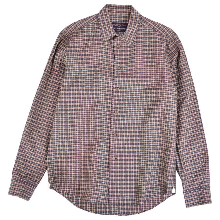 [Excellent Condition] Louis Vuitton 2018 Long-Sleeve Checkered Silk Shirt, Men's, Made in Italy, Size M, Multicolor [Pre-owned]