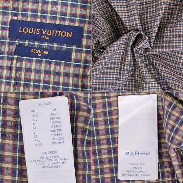 ルイヴィトン LOUIS VUITTON シャツ 2018 ロングスリーブ 長袖 チェック シルク トップス メンズ イタリア製 マルチカラー サイズM