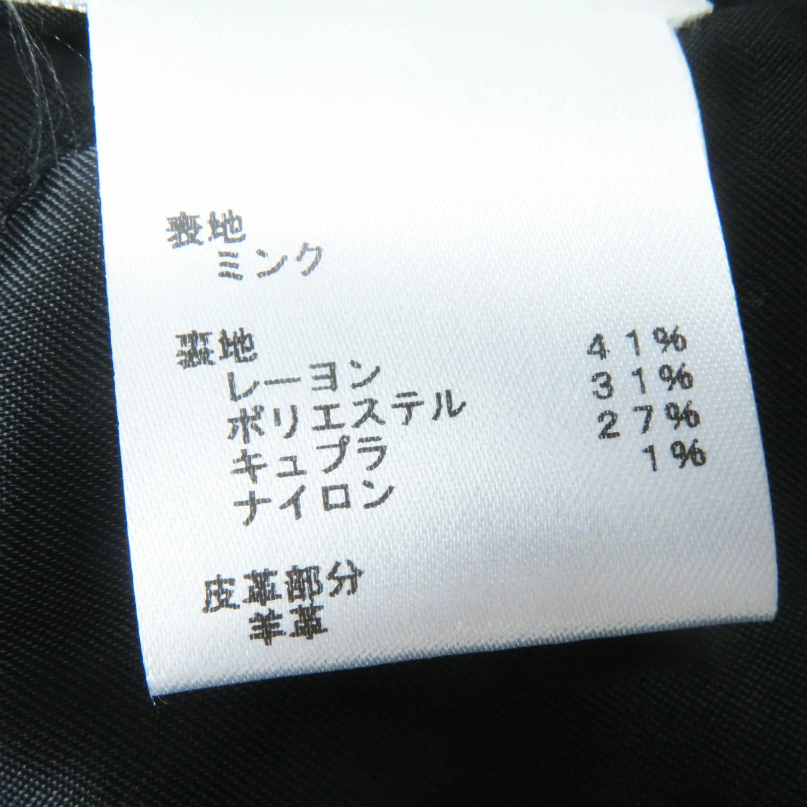 | 素材 (material) | 本体:ミンク100% 裏地:ビスコース(レーヨン)41% :ポリエステル31% :キュプラ27% :ポリアミド(ナイロン)1% 皮革部分:羊革 本体:ミンク100% 裏地:ビスコース(レーヨン)41% :ポリエステル31% :キュプラ27% :ポリアミド(ナイロン)1% 皮革部分:羊革 | ||||||||||||||||