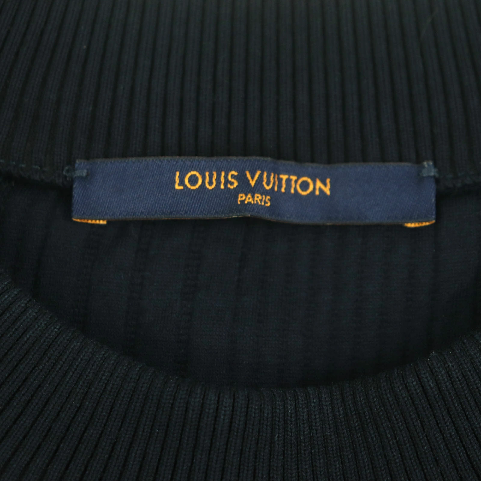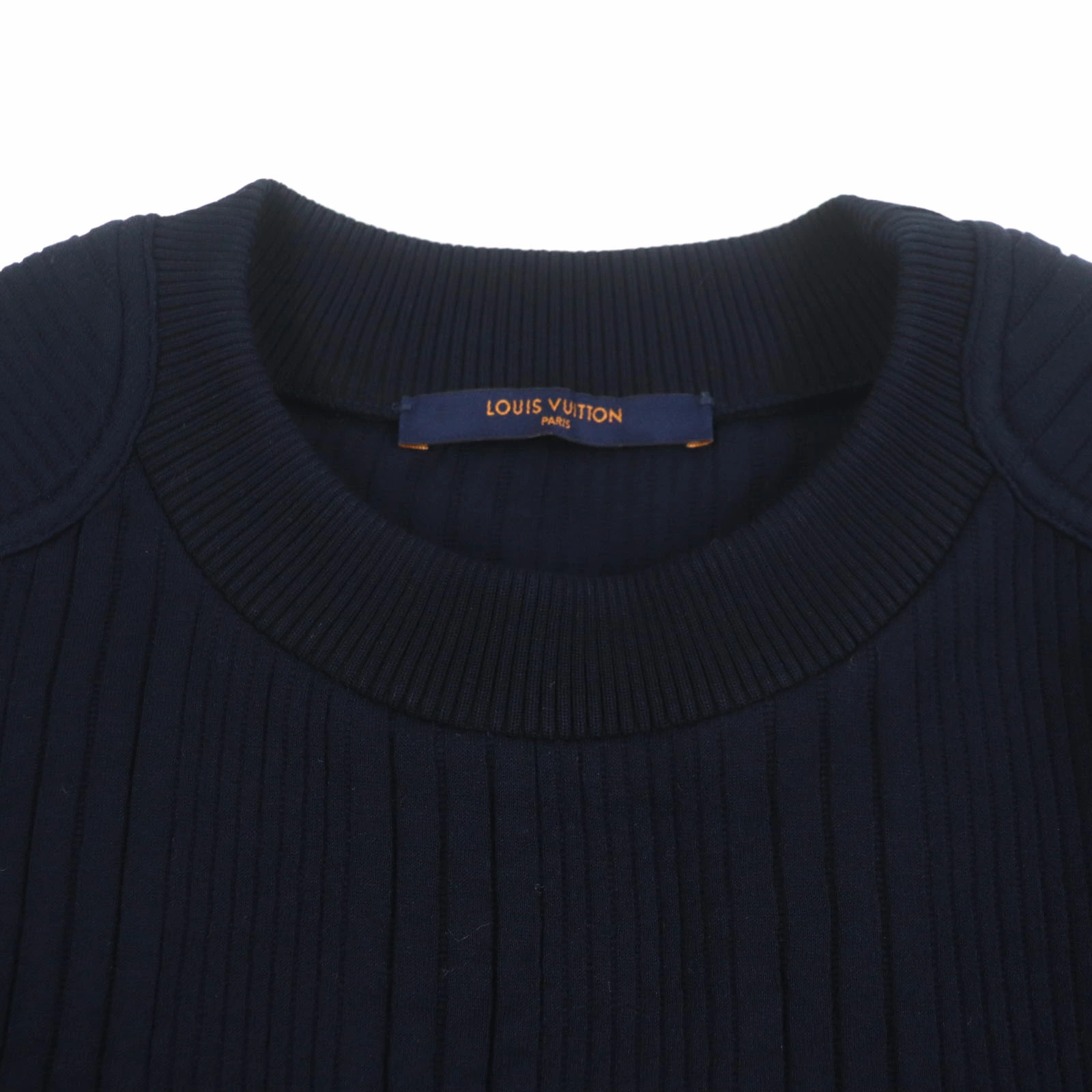 Excellent condition: LOUIS VUITTON 21AW cotton and nylon crew neck pullover sweatshirt with embroidered LV logo and striped pattern, navy, size XS, authentic, made in Italy, men's [pre-owned]