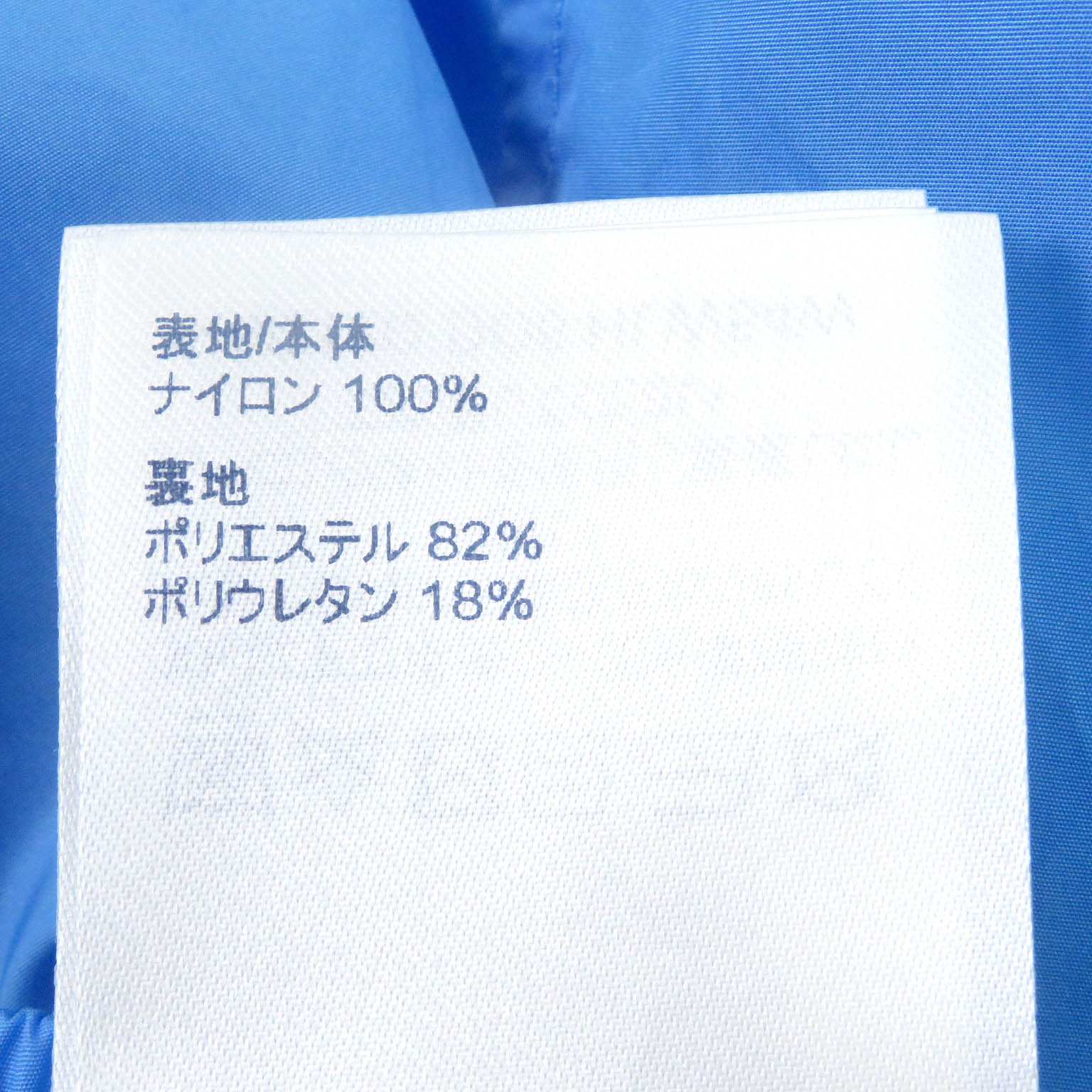 | 素材 (material) | 表地:ナイロン100% 裏地:ポリエステル82% :ポリウレタン18% | ||||||||||||||||