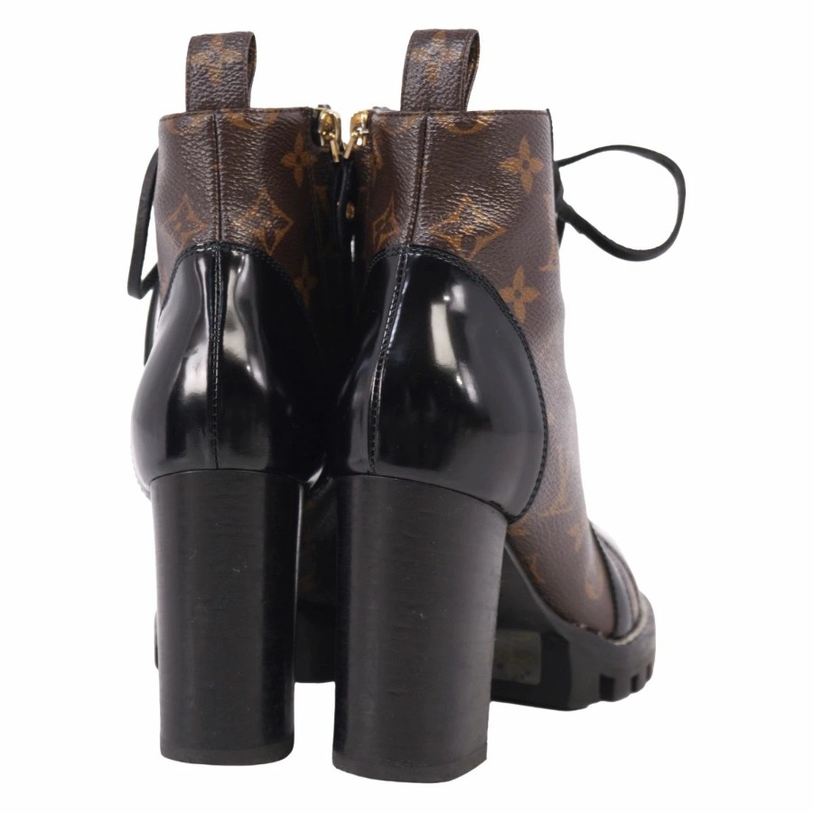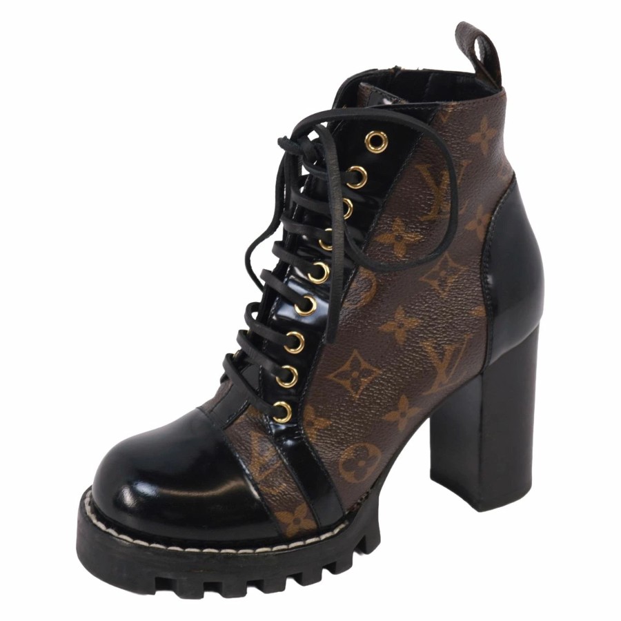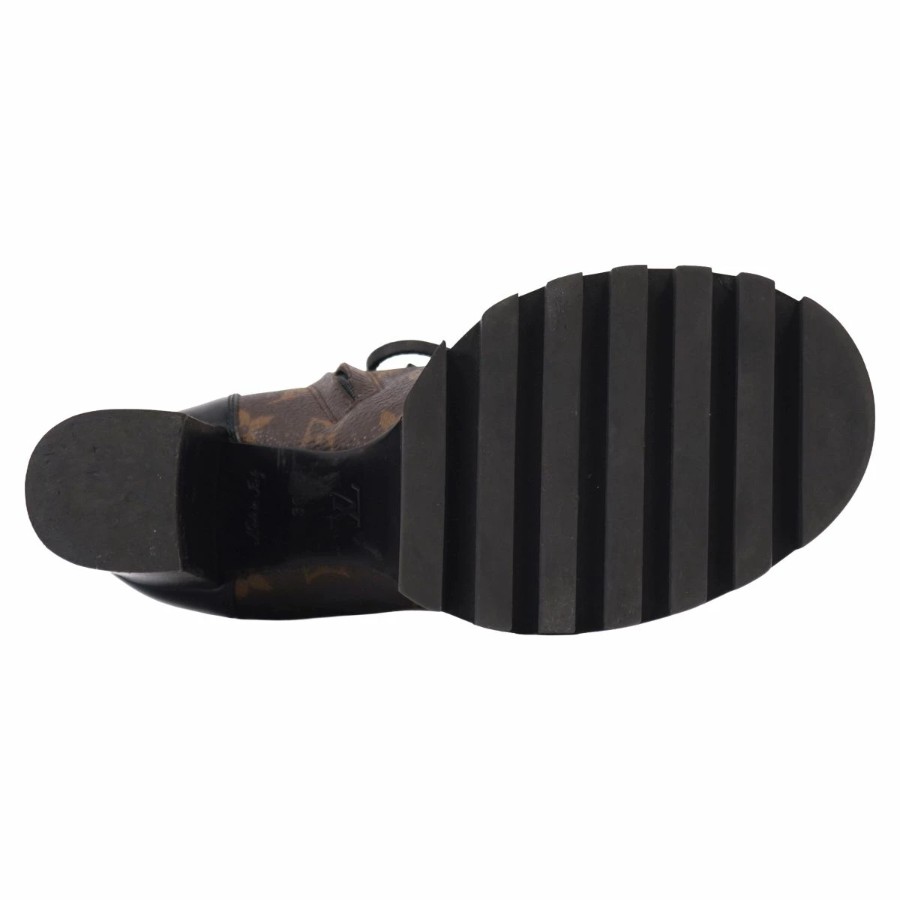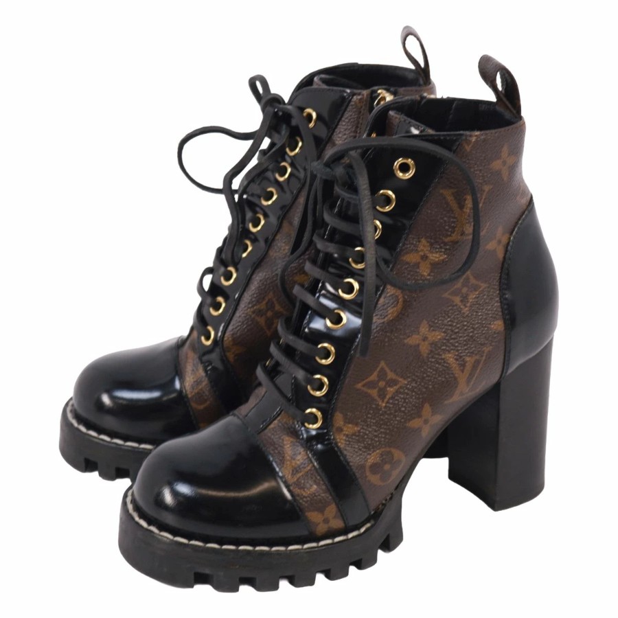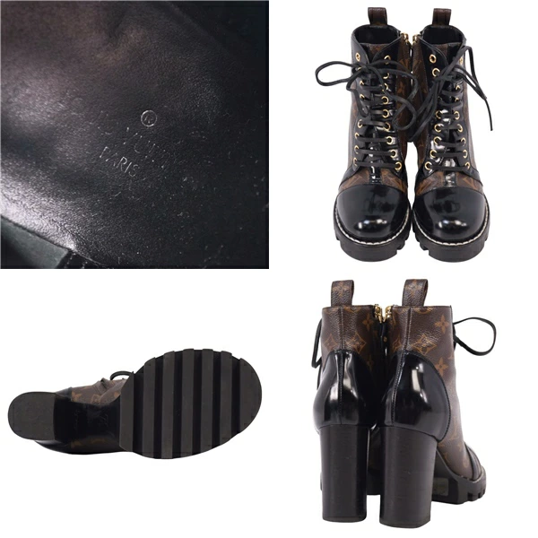 ルイヴィトン LOUIS VUITTON ブーツ アンクルブーツ レースアップ スタートレイル ライン モノグラム チャンキーヒール イタリア製 ブラウン サイズ36(23cm相当)