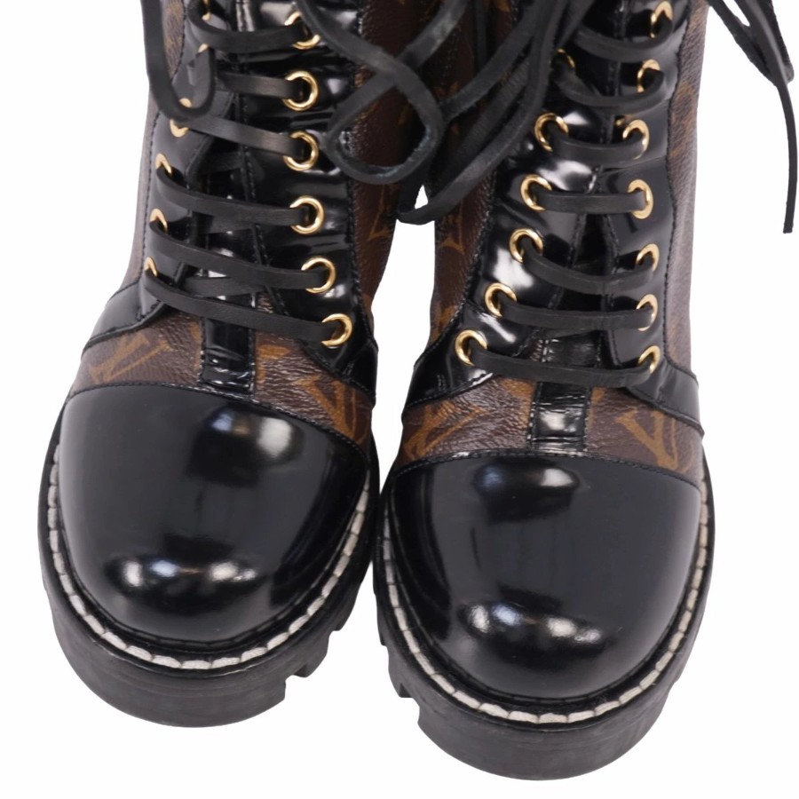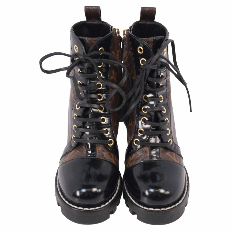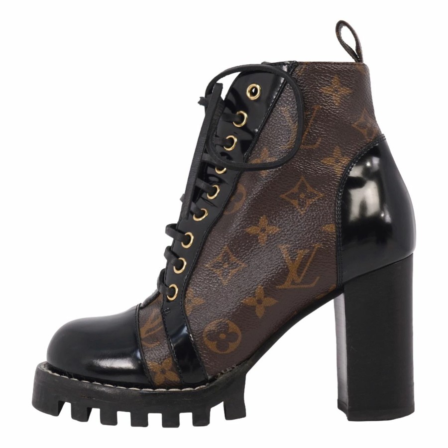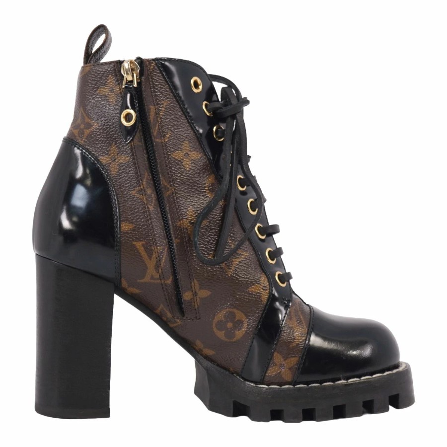 ルイヴィトン LOUIS VUITTON ブーツ アンクルブーツ レースアップ スタートレイル ライン モノグラム チャンキーヒール イタリア製 ブラウン サイズ36(23cm相当)